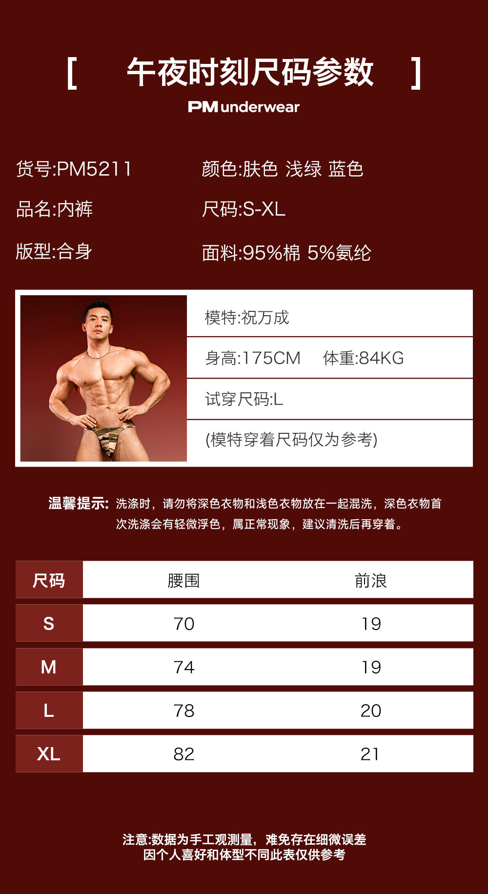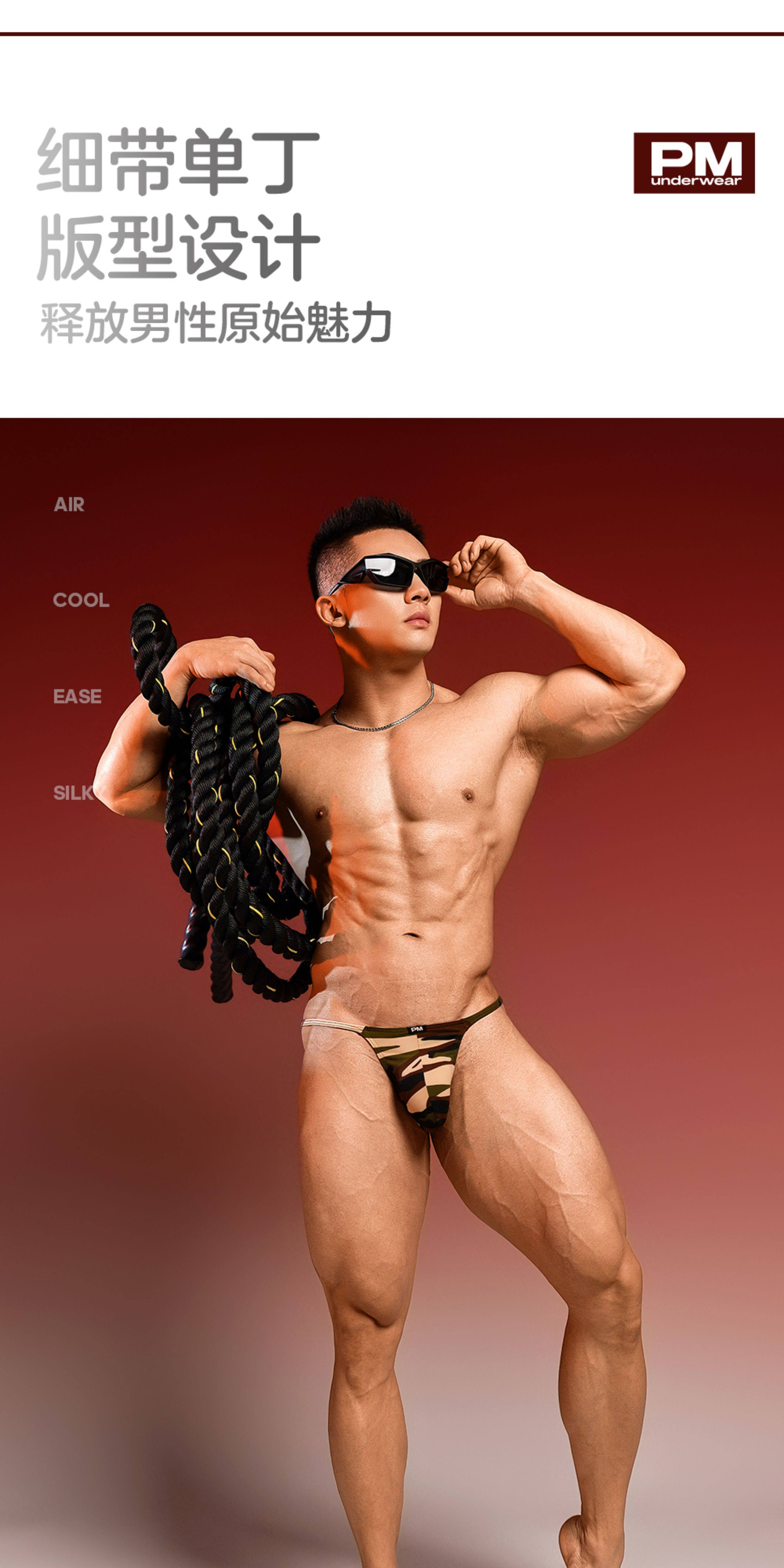 Pm Midnight Tactical Camouflage Low-Rise Briefs Men's Sexy High-Cut Breathable T-String Thong