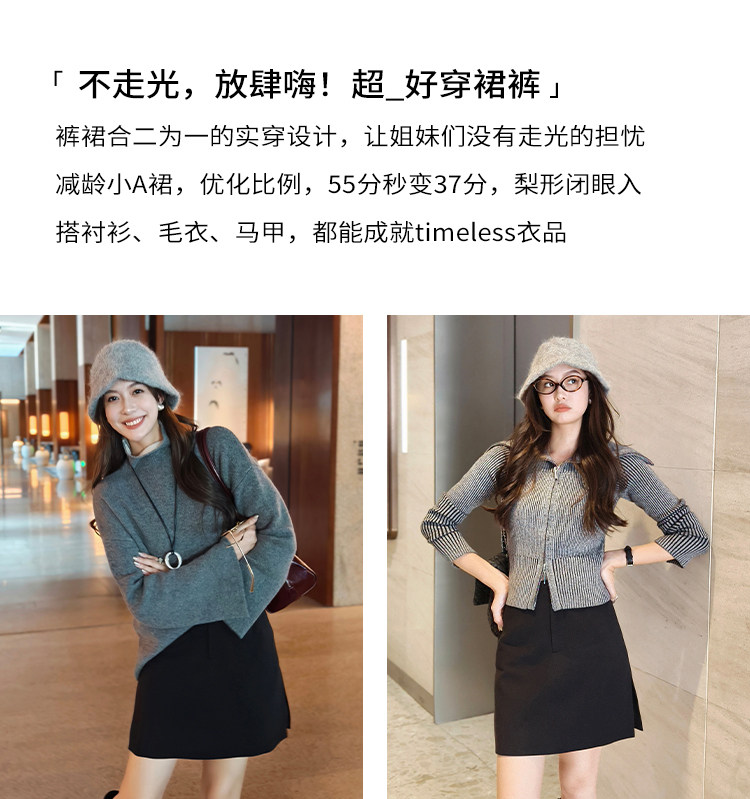 Meiyang Super Comfortable Culottes, Core-Spun Yarn, Simple and Versatile A-Line Slit Skirt Pants【Medium】