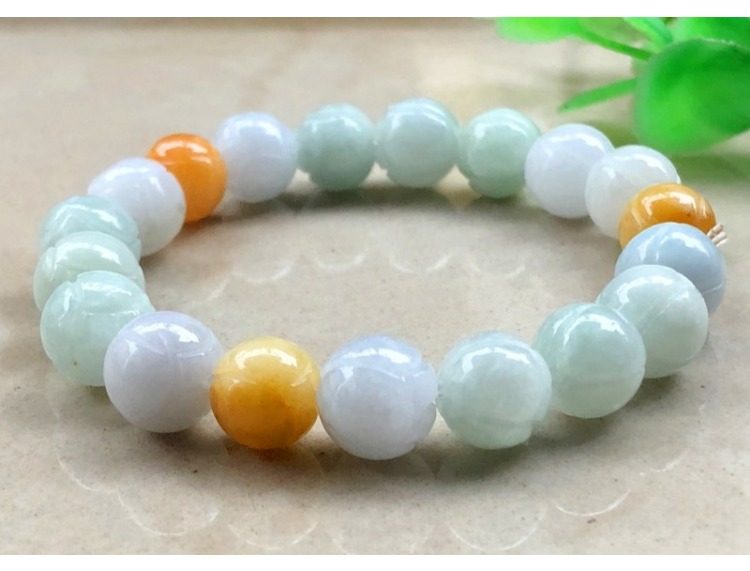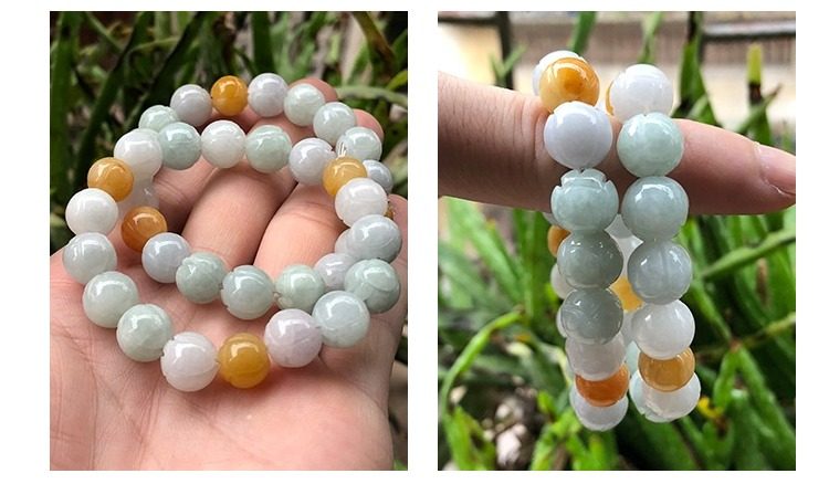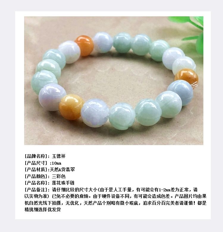 Natural A-Grade Jade Bracelet, Waxy Three-Color Lotus Bead Jade Bracelet, Jade Bracelet for Men and Women, Couple's Jewelry Inlay