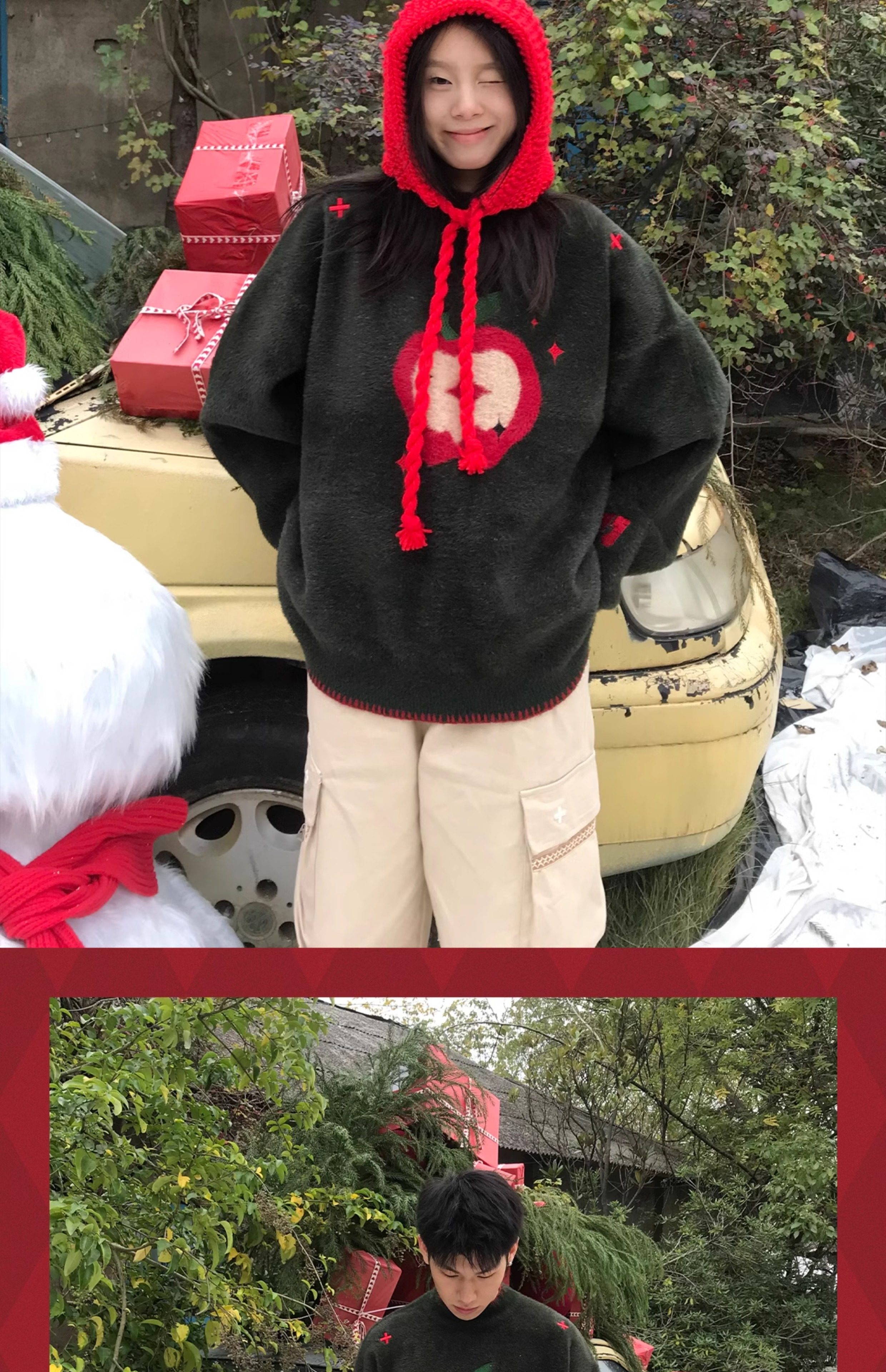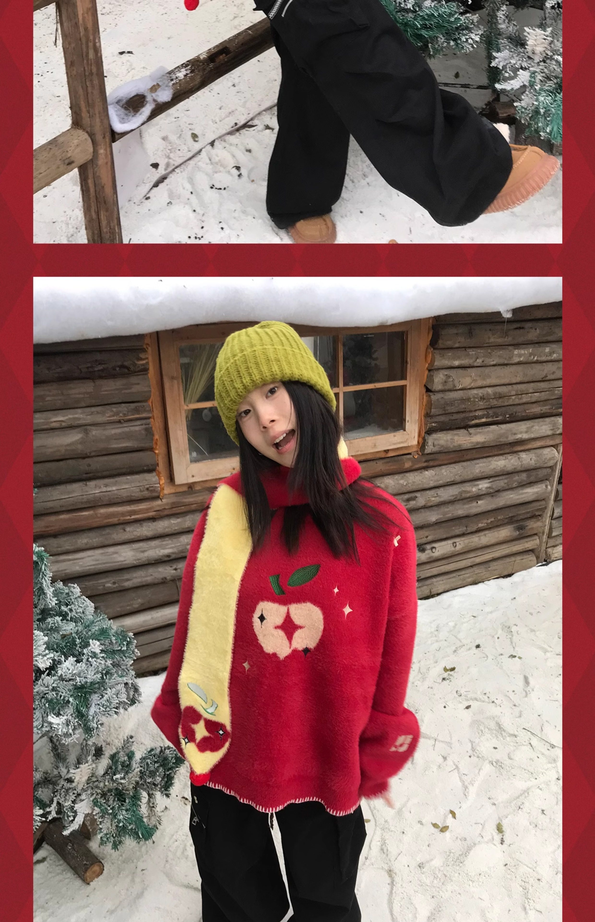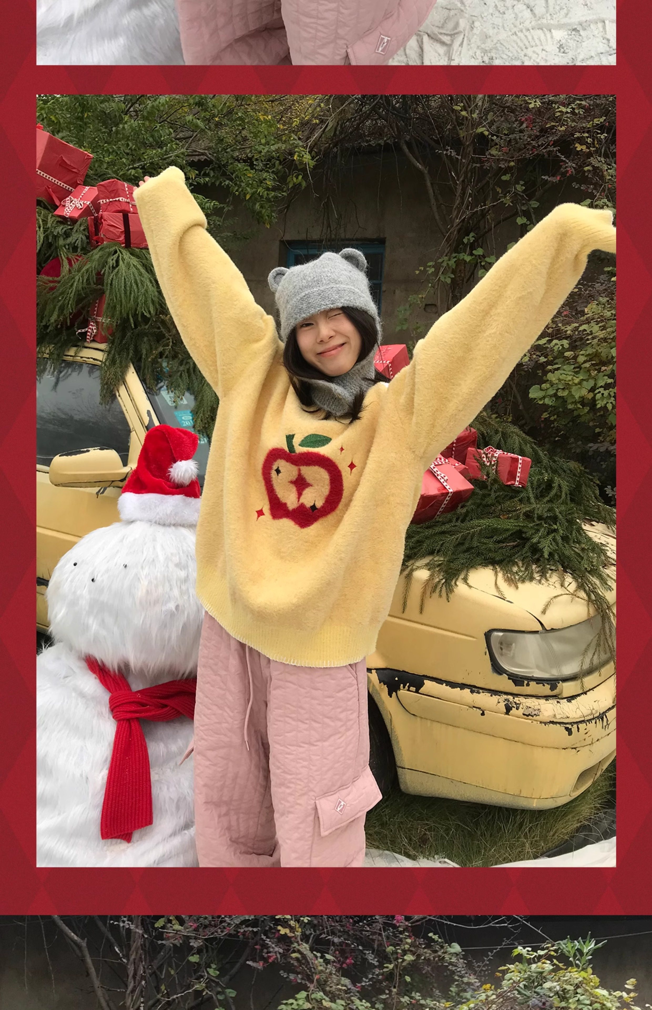 Nstnew Start Germination Project 2025 New Year Limited Edition Apple Loose Soft Lazy Round Neck Pullover Sweater