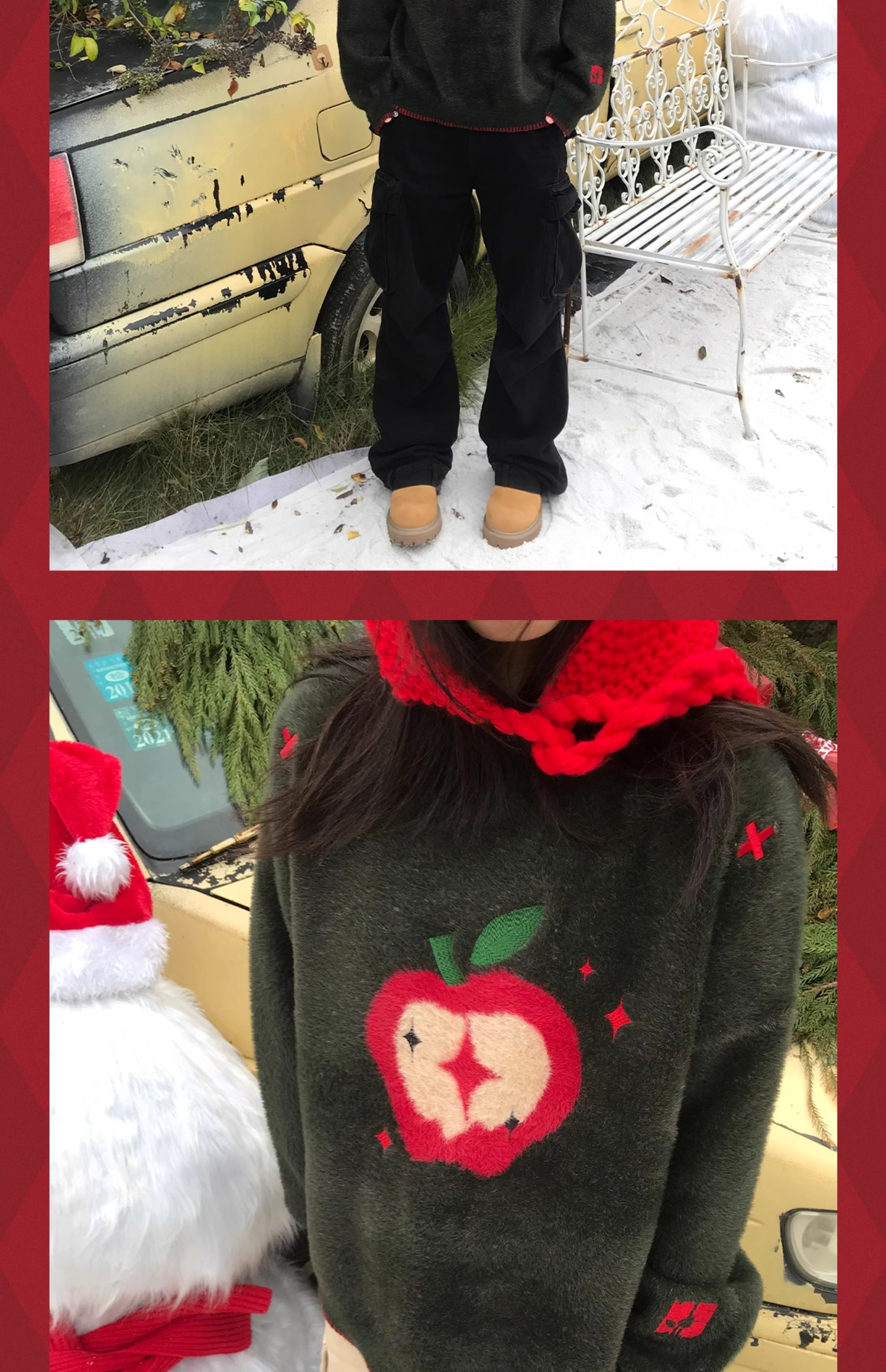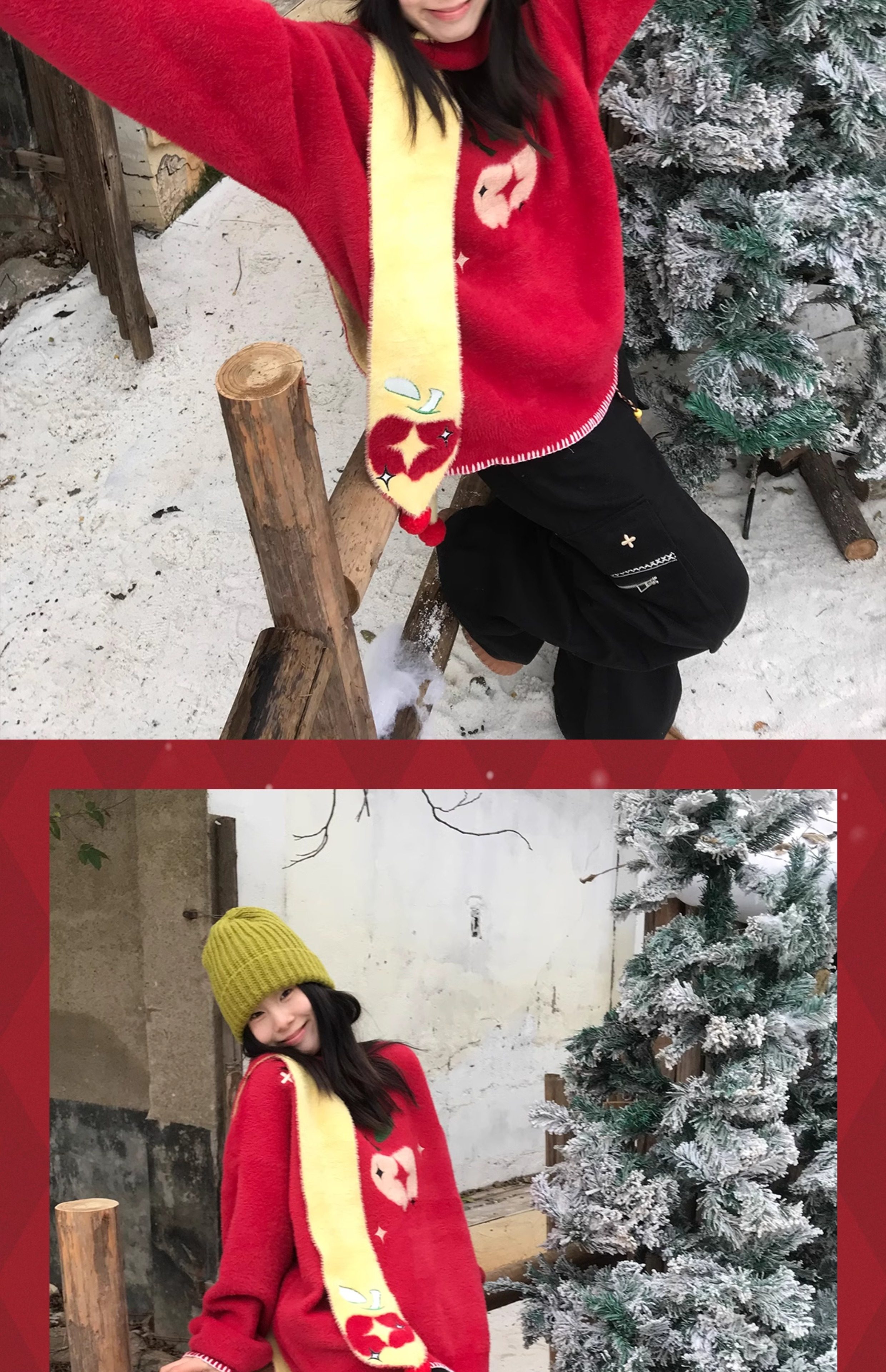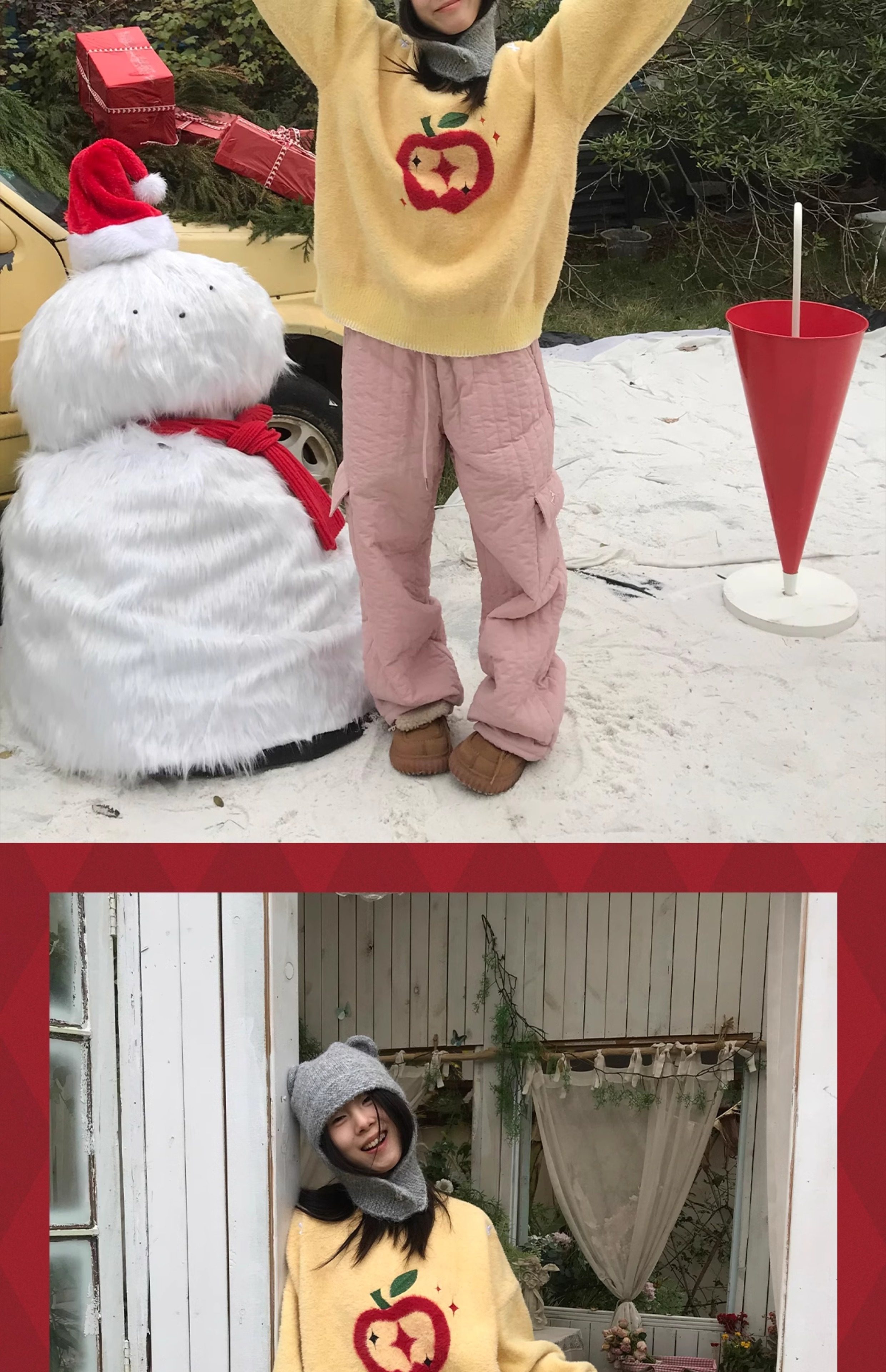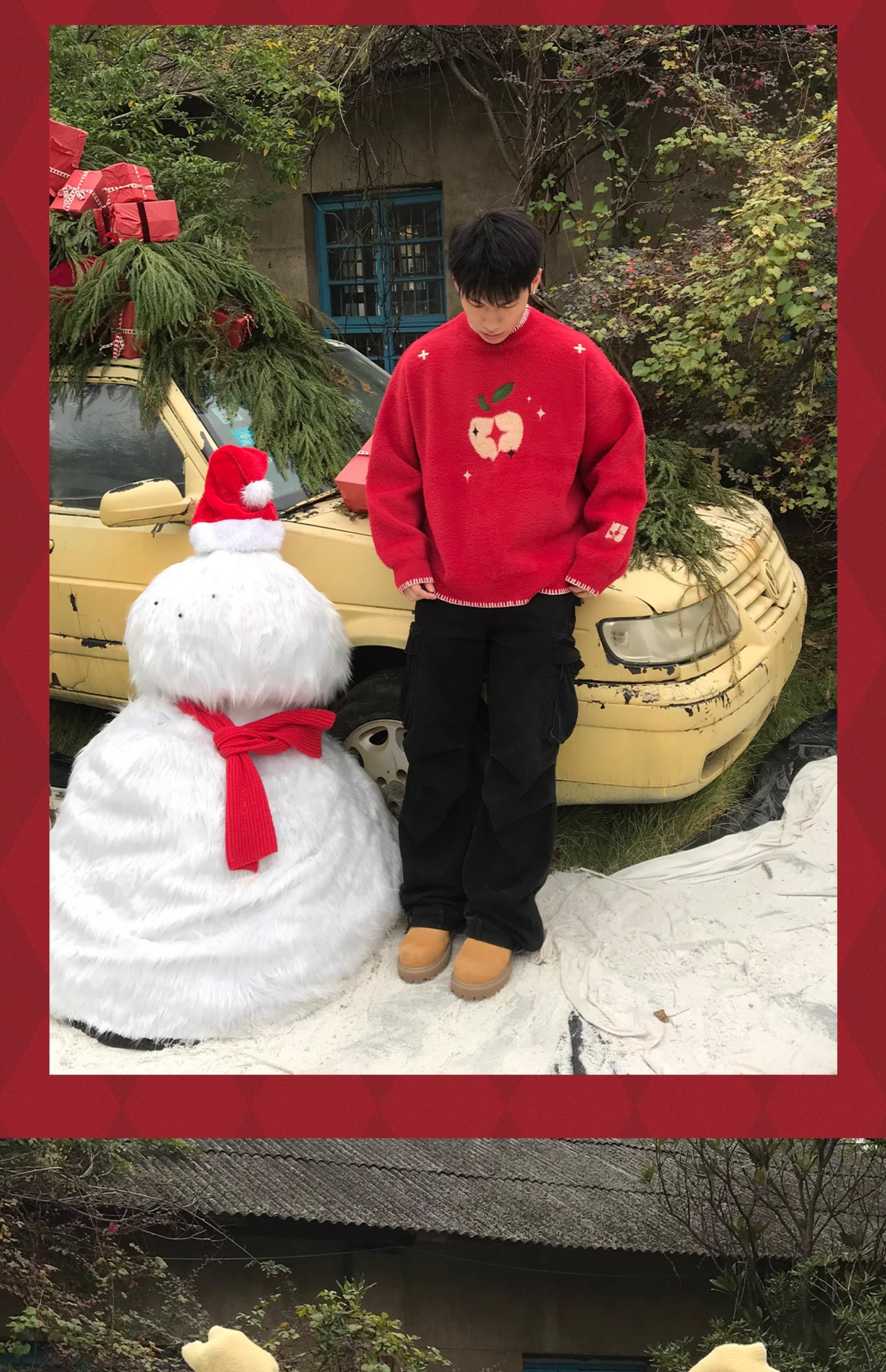 Nstnew Start Germination Project 2025 New Year Limited Edition Apple Loose Soft Lazy Round Neck Pullover Sweater