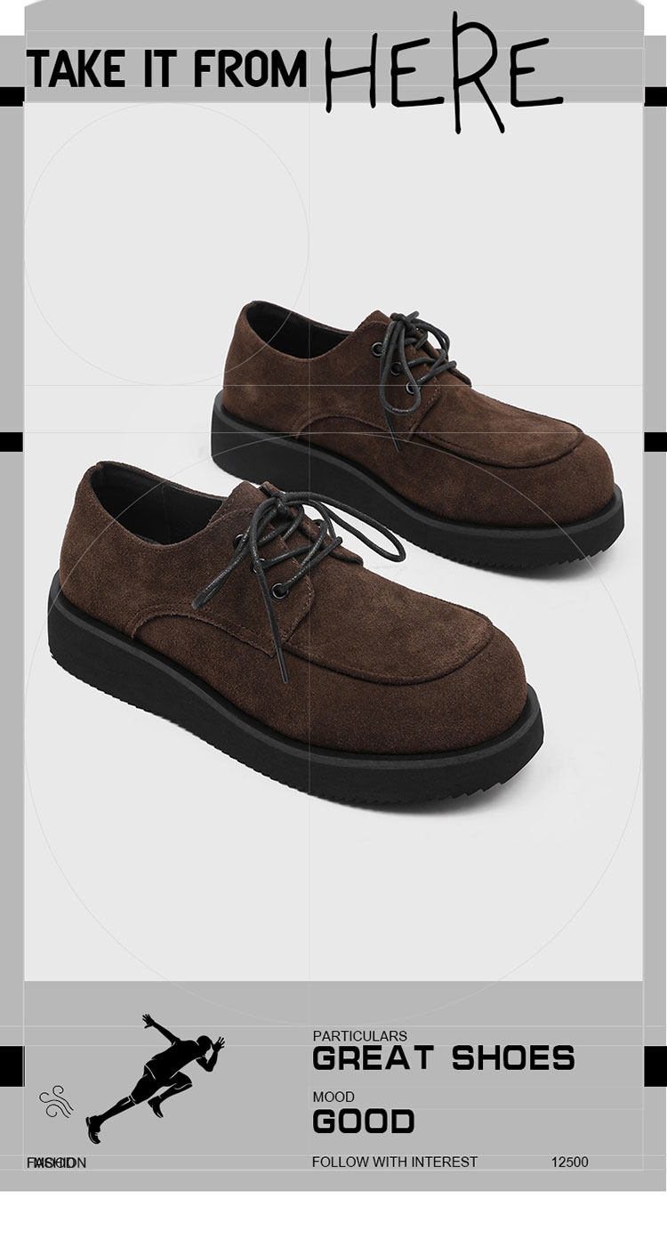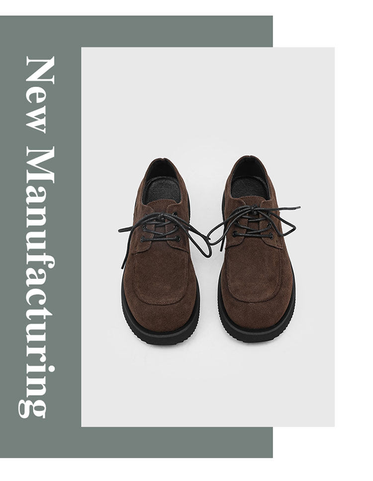 Cleanfit Derby Shoes for Men and Women, Genuine Leather, British Style Casual Leather Shoes, Thick-Soled, High-End, Retro Low-Top Work Shoes