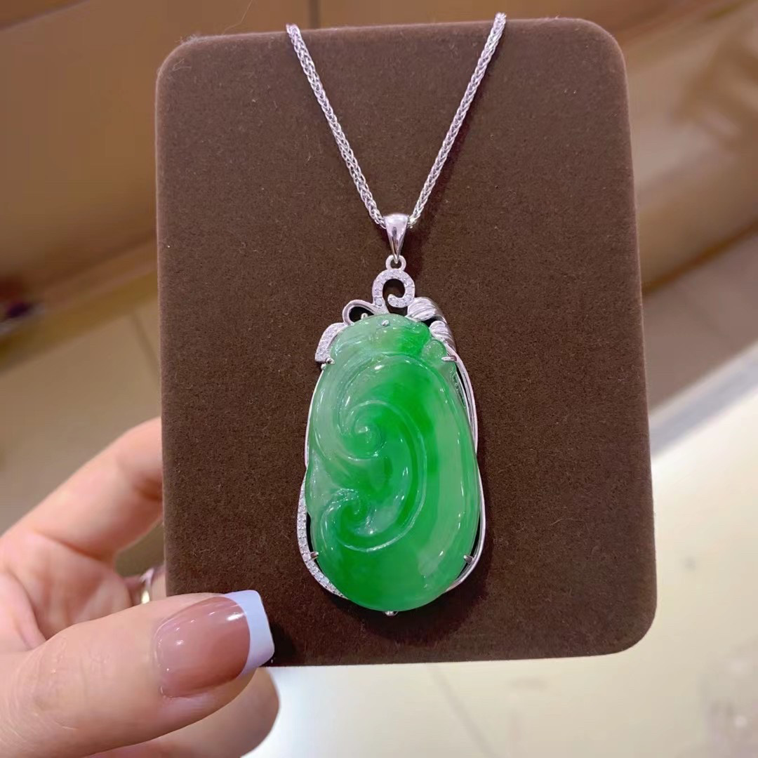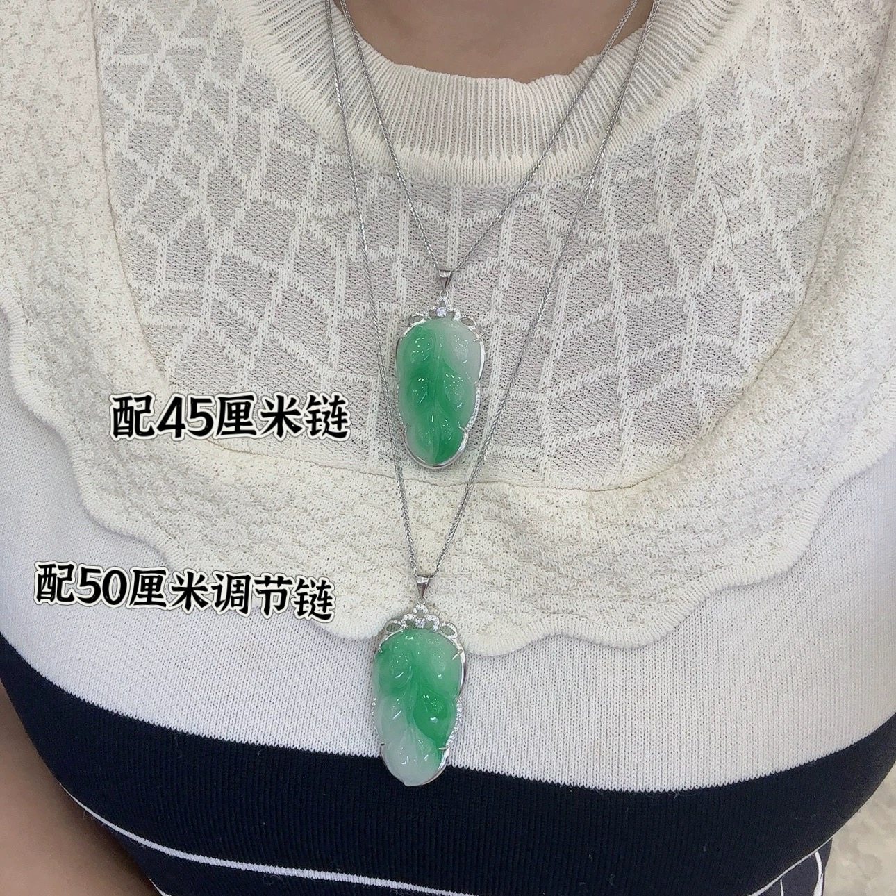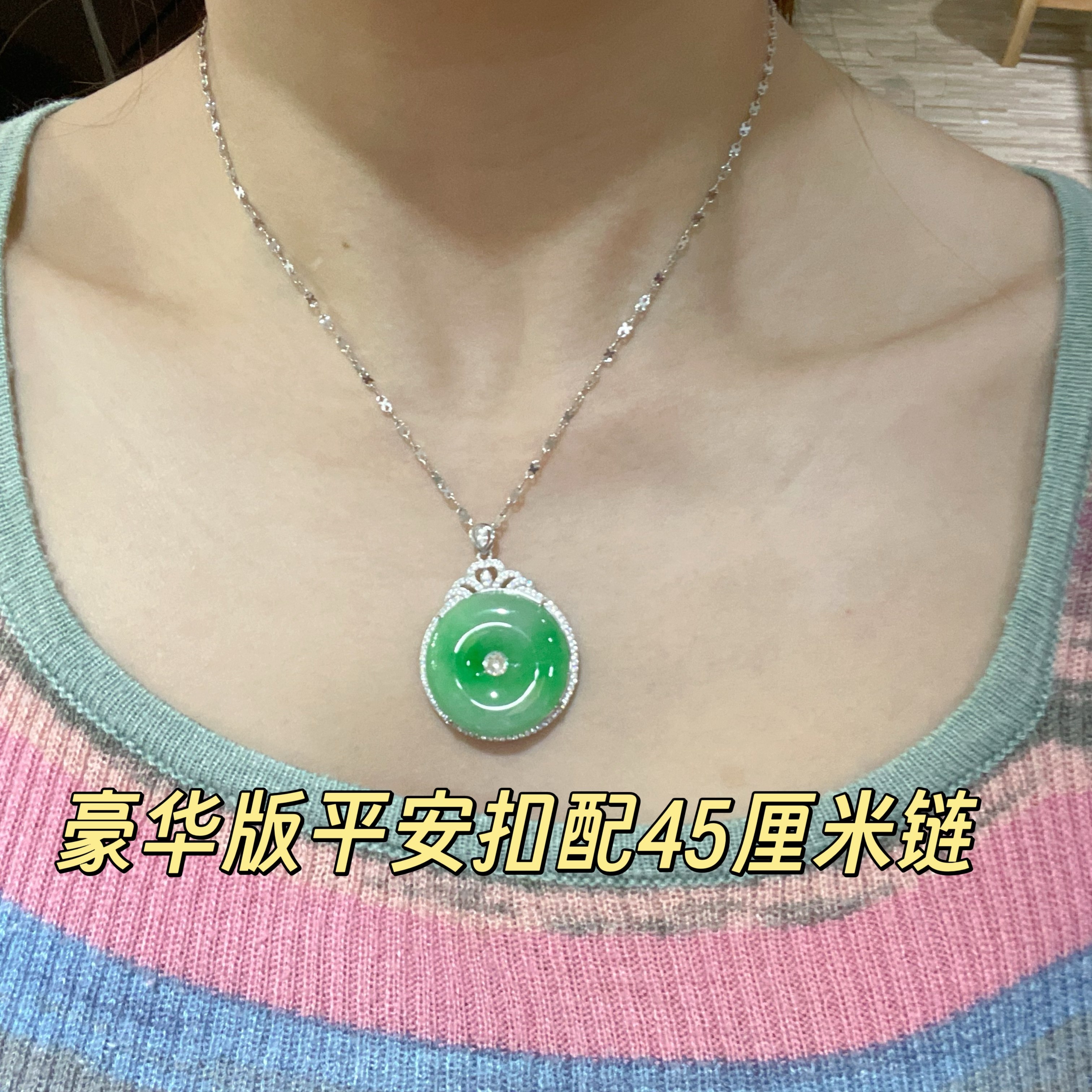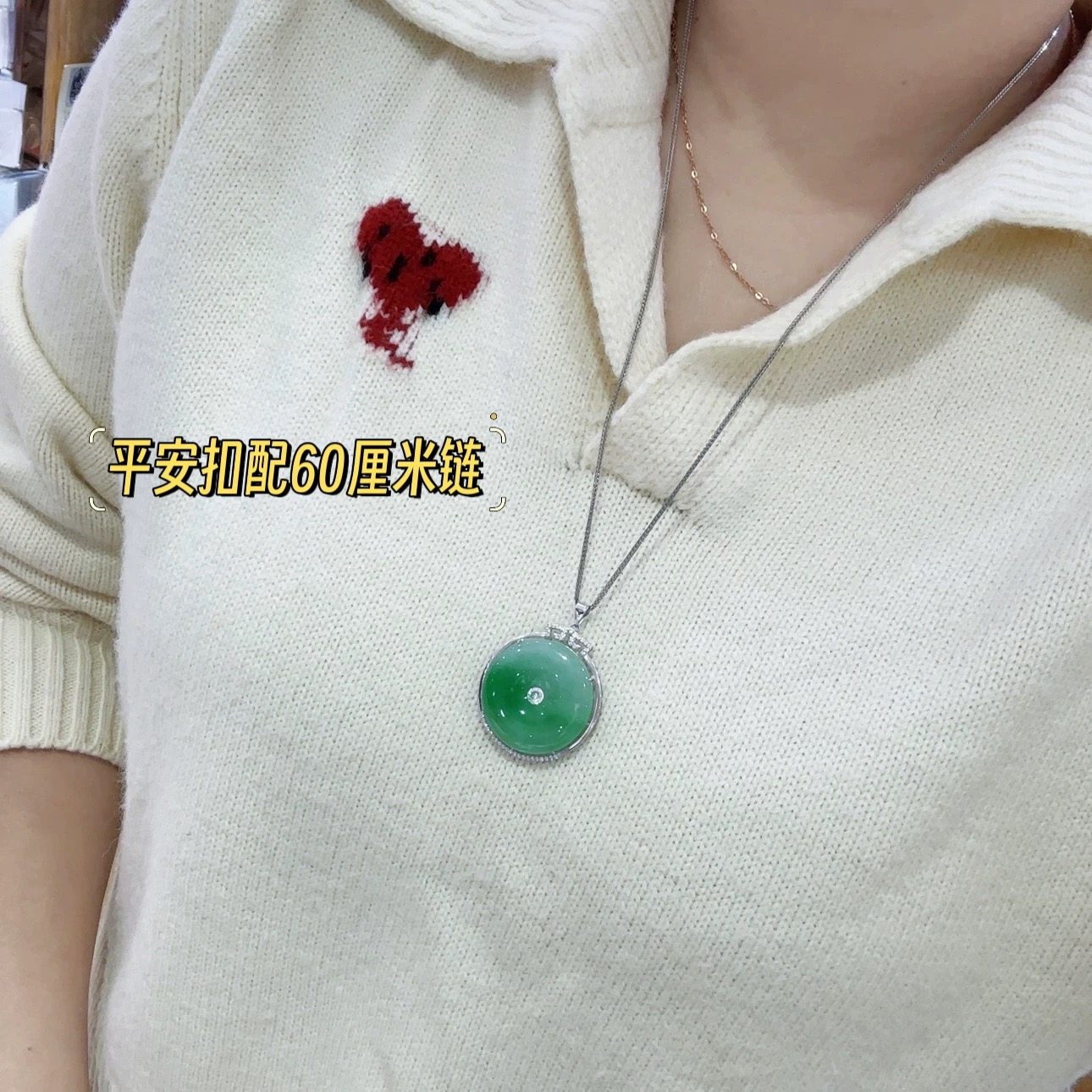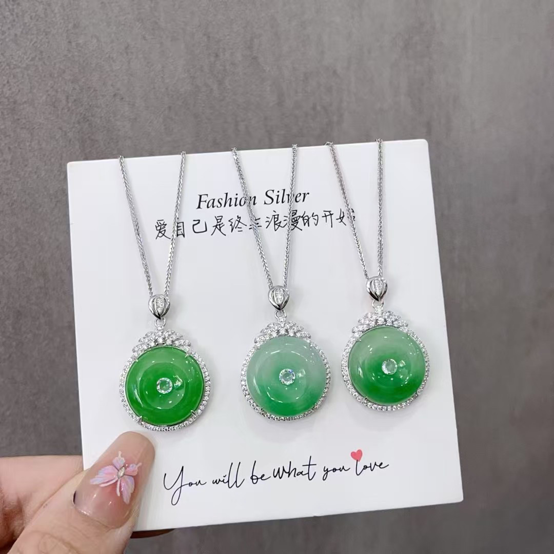 Sterling Silver S925 Silver Inlaid with Jade Green Ruyi Peace Pendant Necklace for Women, Fashionable Clavicle Chain, Gift for Girlfriend
