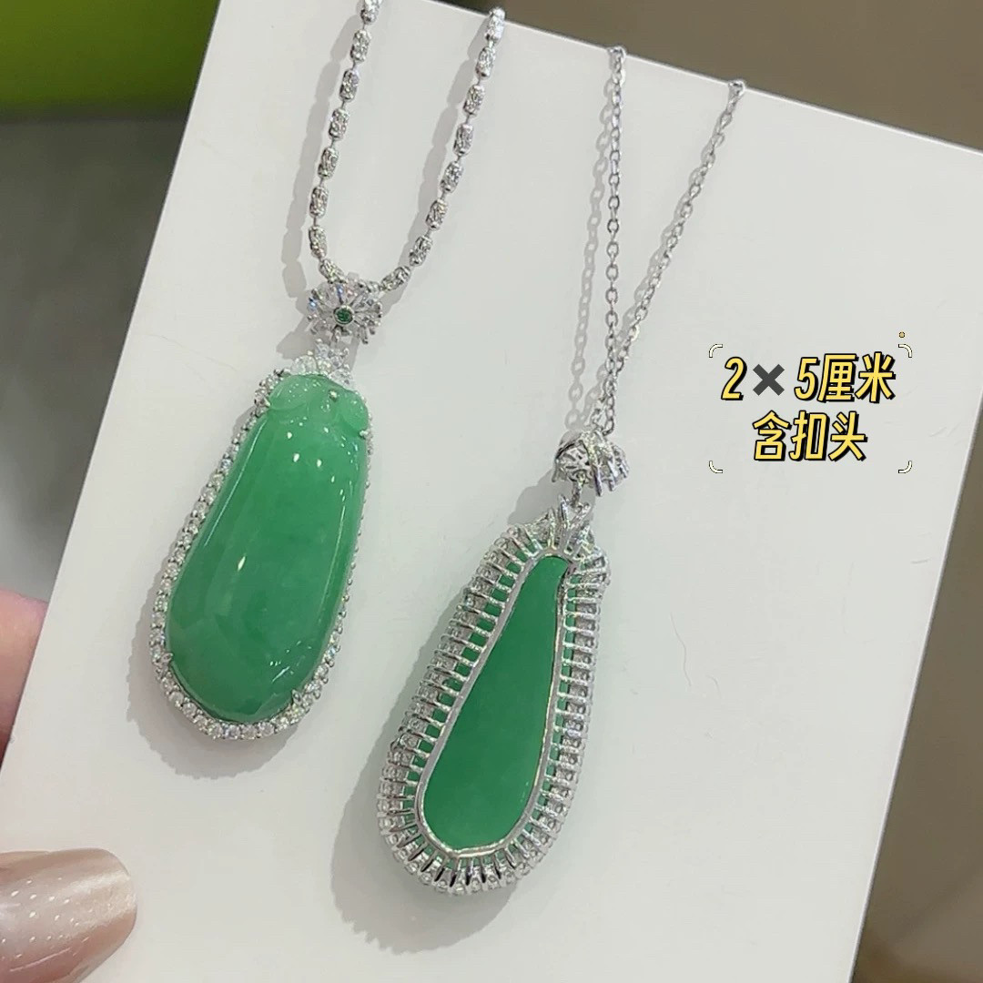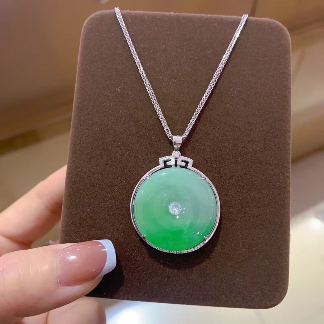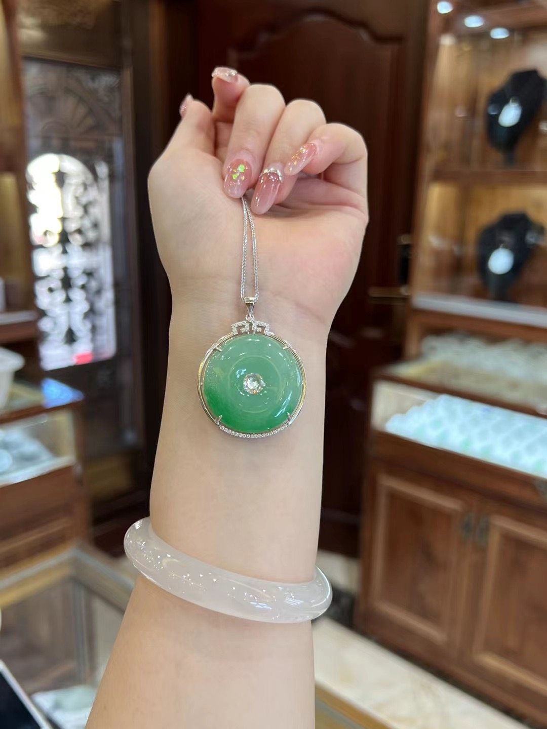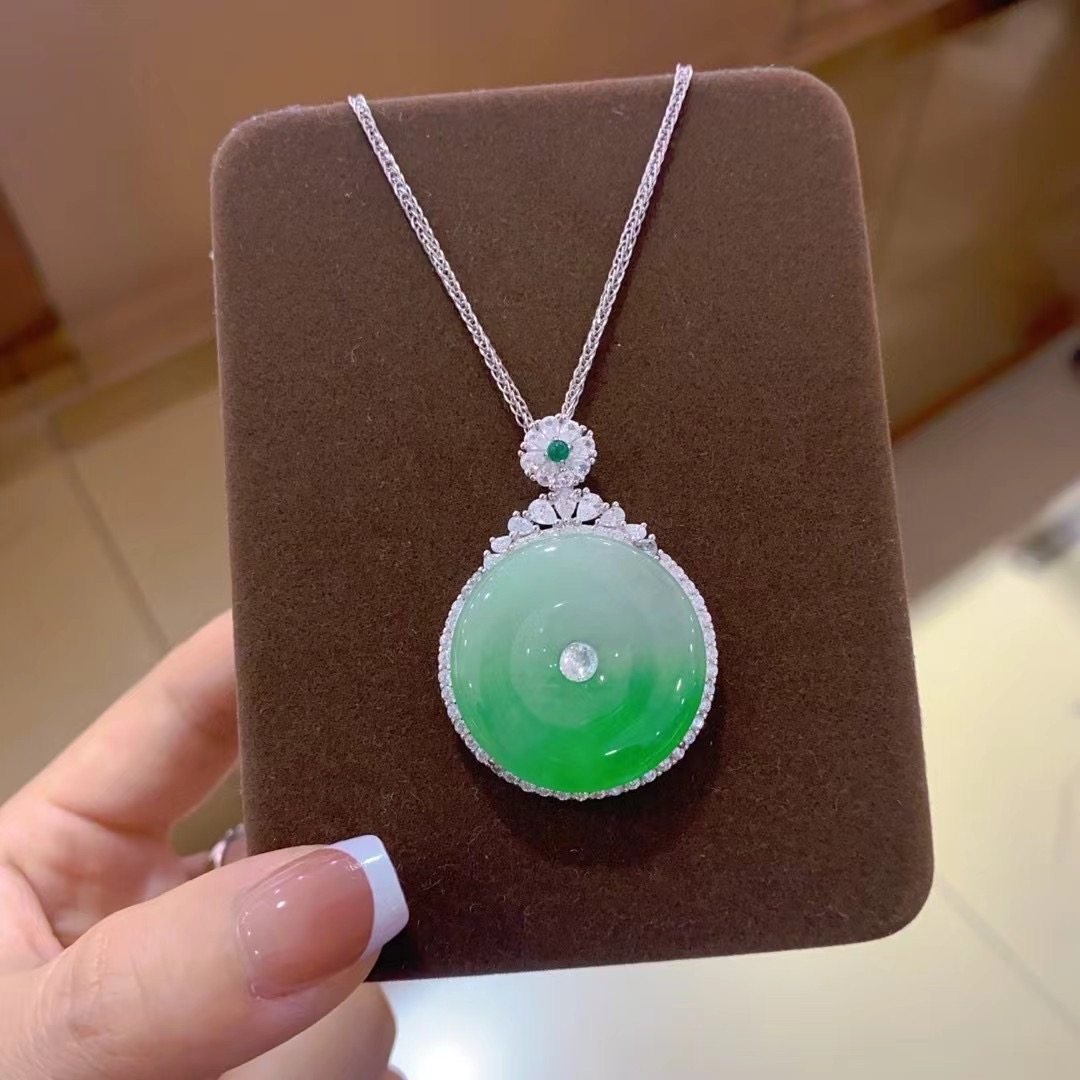 Sterling Silver S925 Silver Inlaid with Jade Green Ruyi Peace Pendant Necklace for Women, Fashionable Clavicle Chain, Gift for Girlfriend