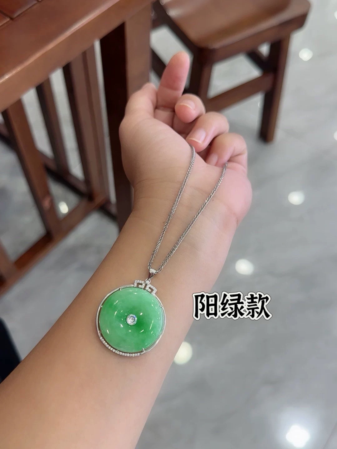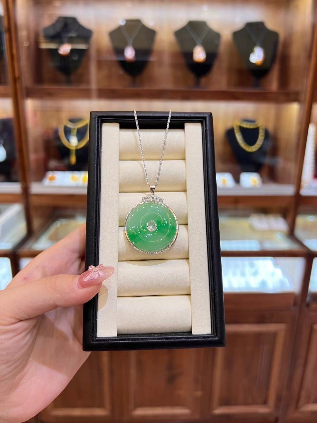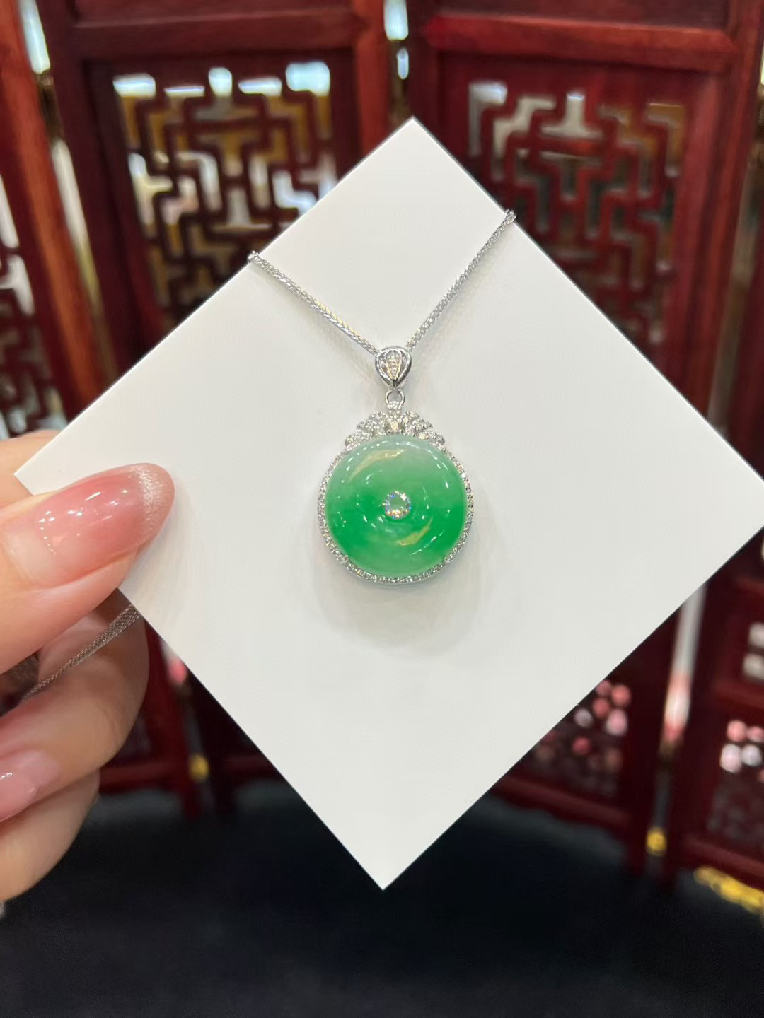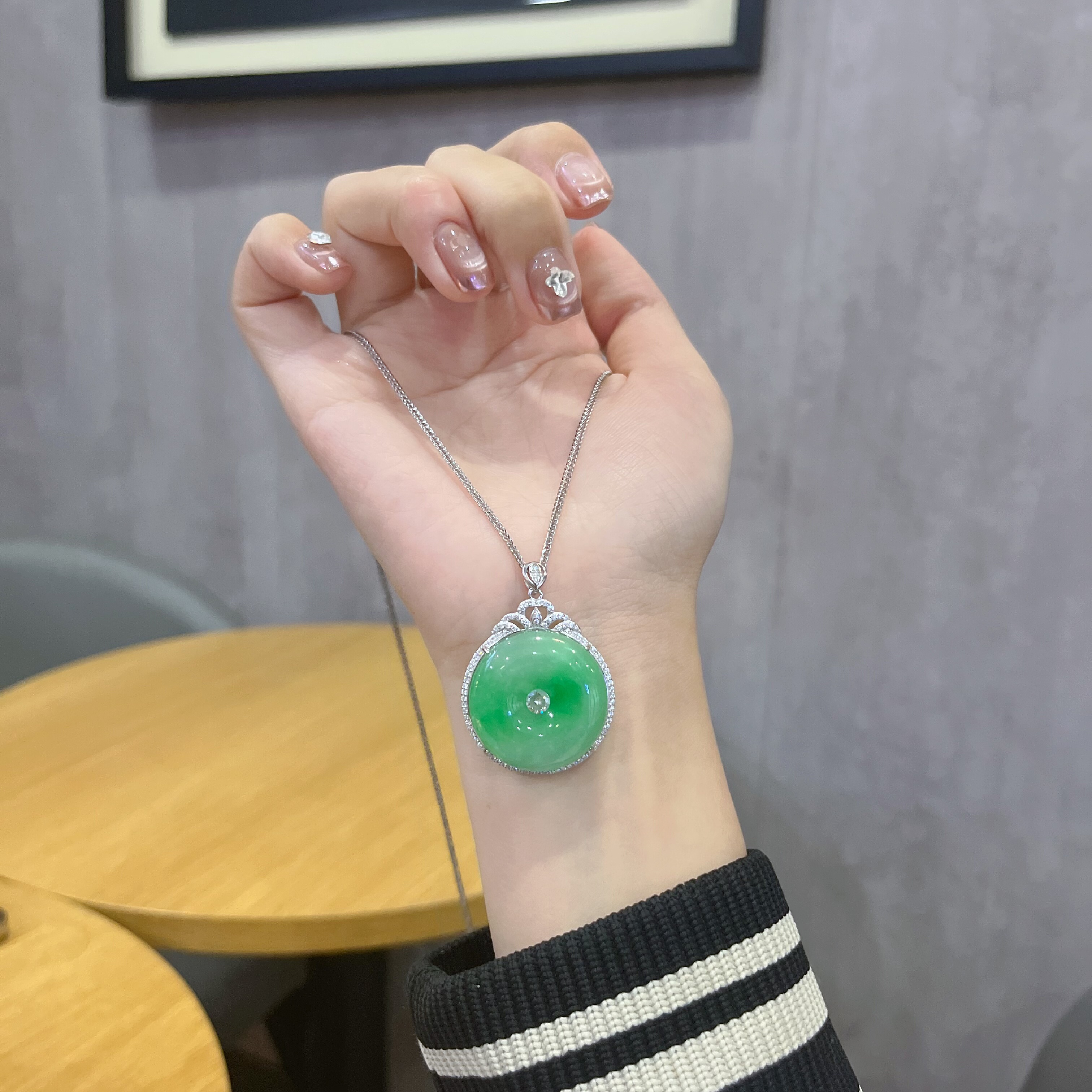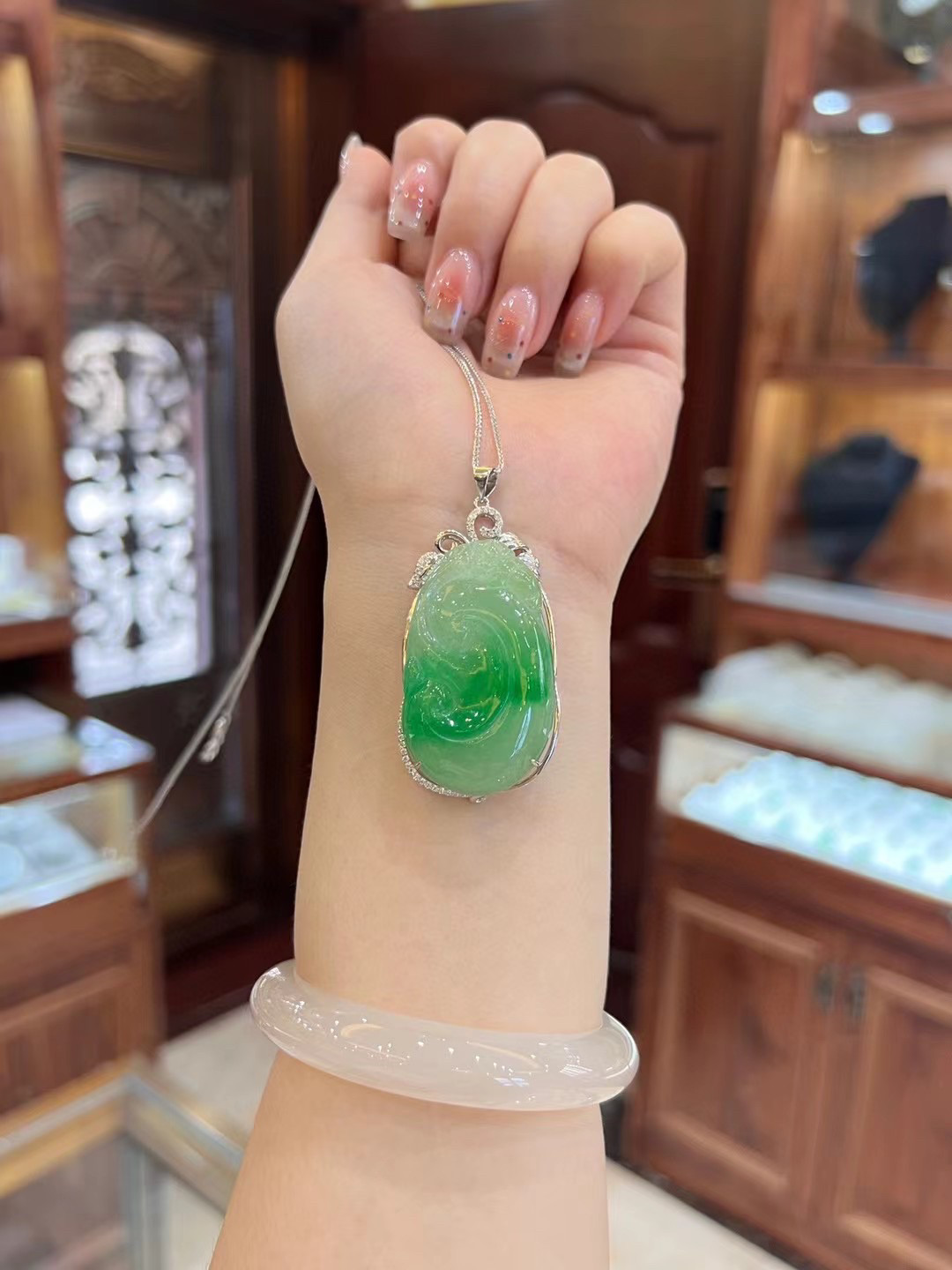 Sterling Silver S925 Silver Inlaid with Jade Green Ruyi Peace Pendant Necklace for Women, Fashionable Clavicle Chain, Gift for Girlfriend
