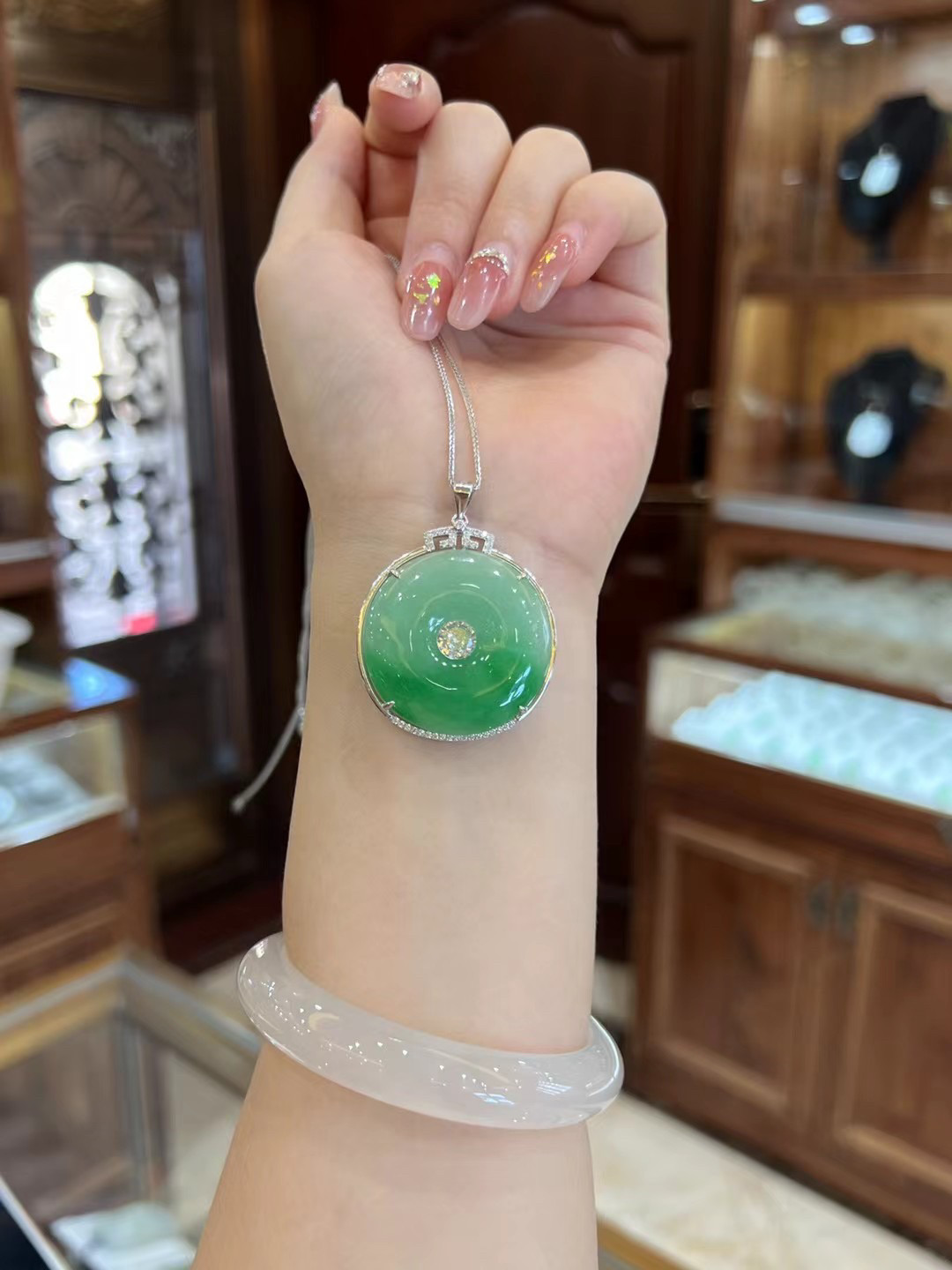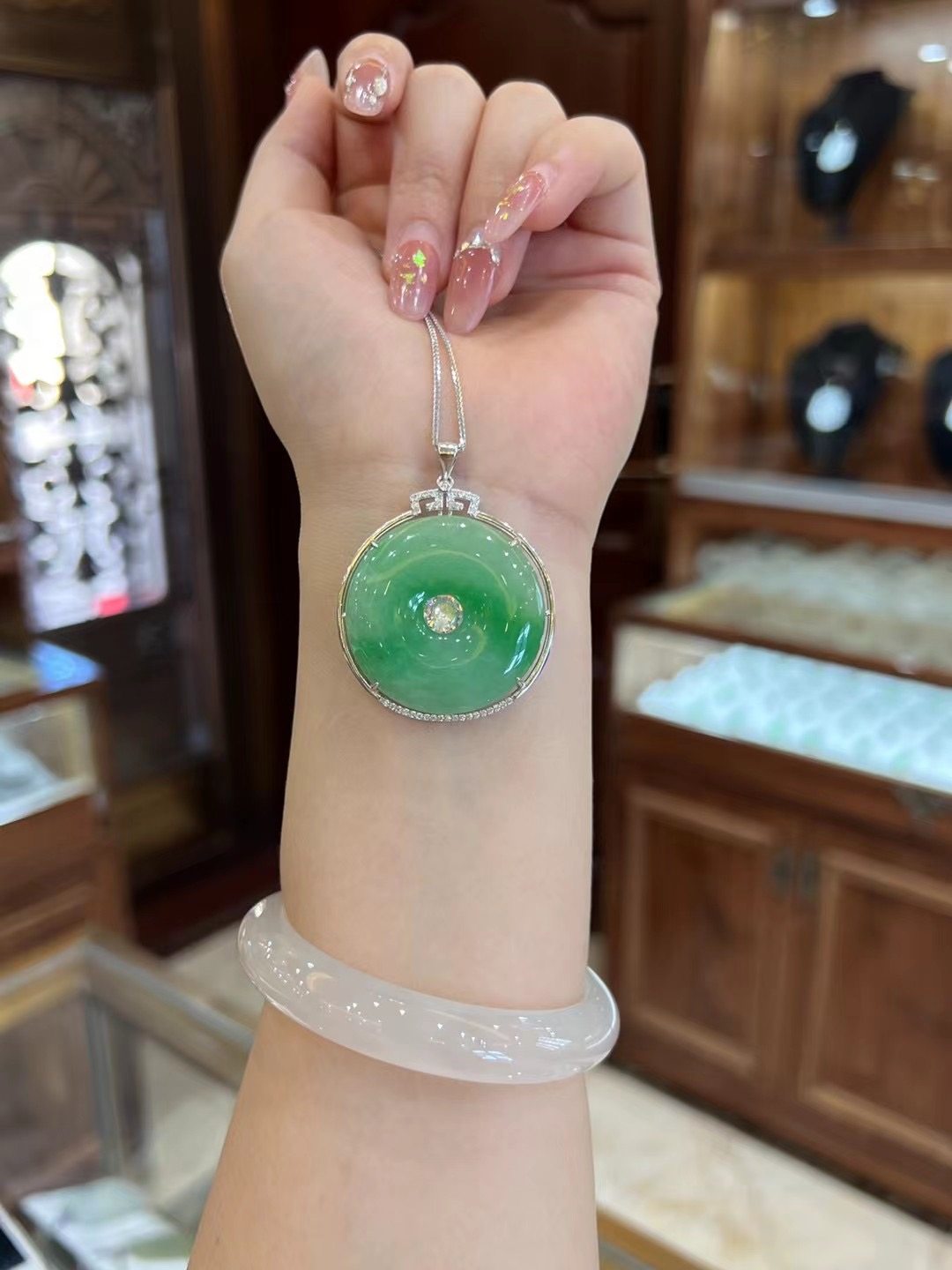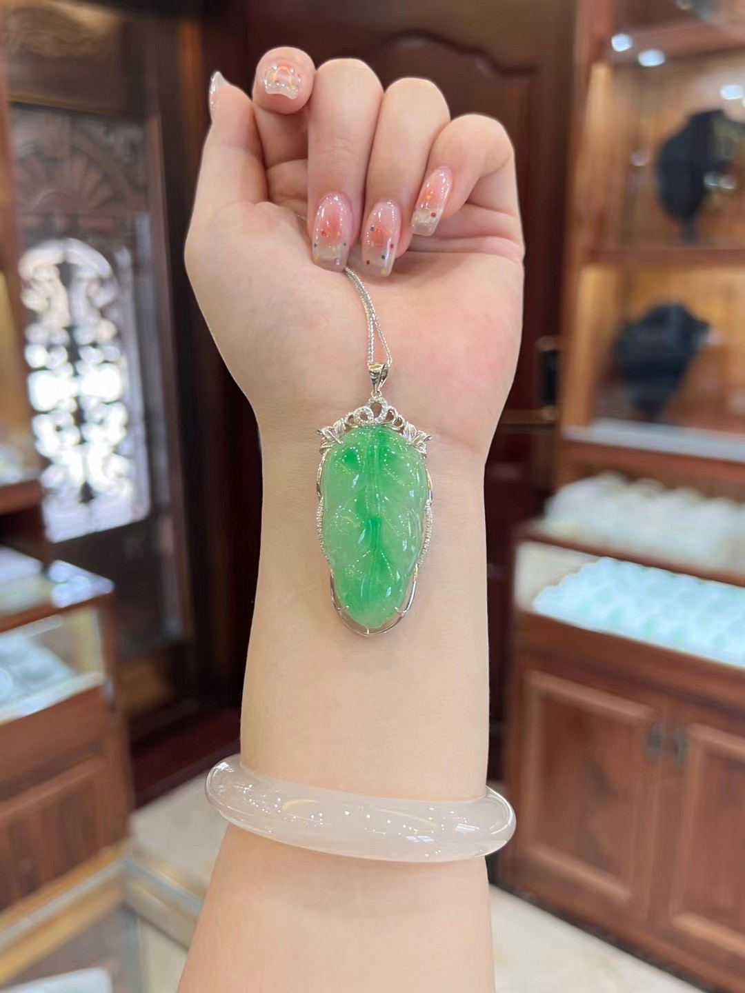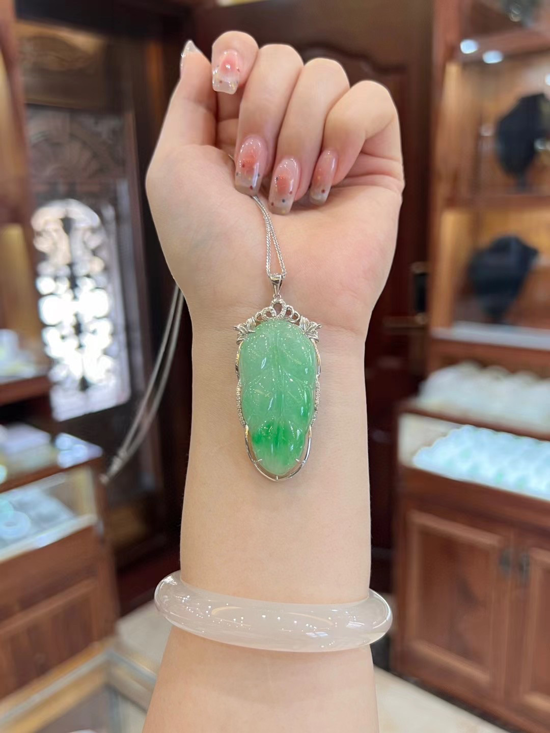 Sterling Silver S925 Silver Inlaid with Jade Green Ruyi Peace Pendant Necklace for Women, Fashionable Clavicle Chain, Gift for Girlfriend