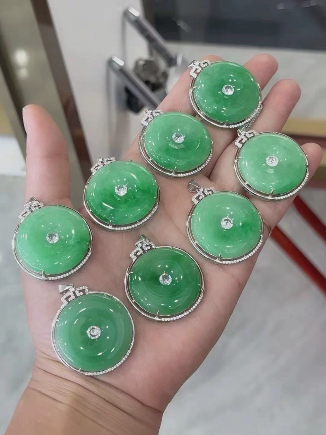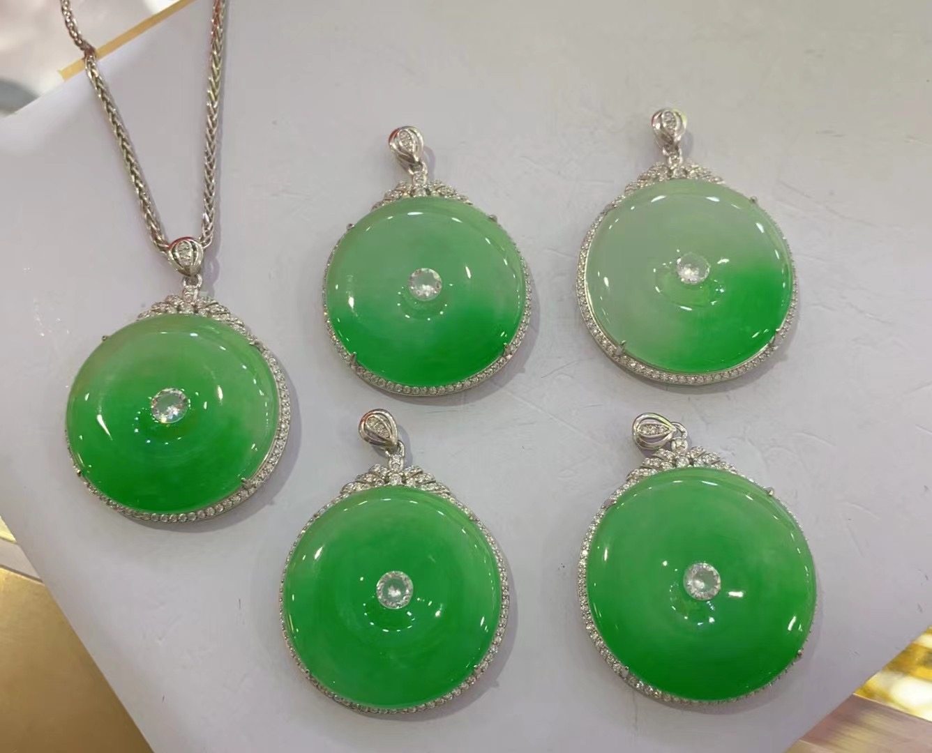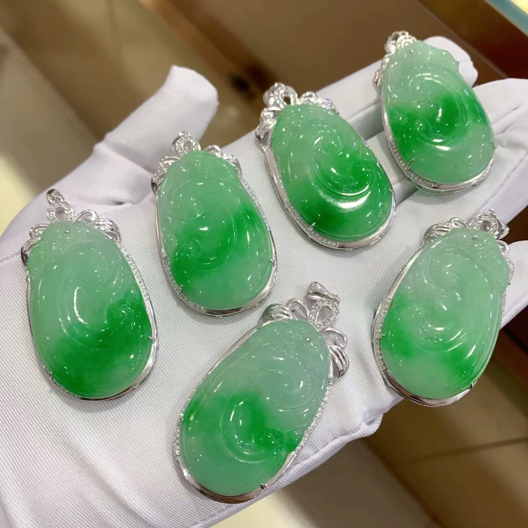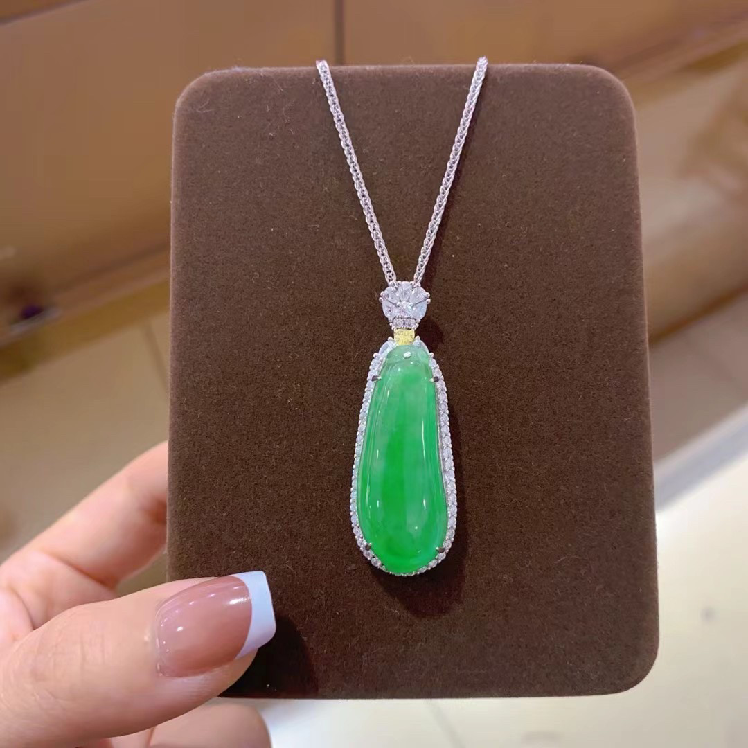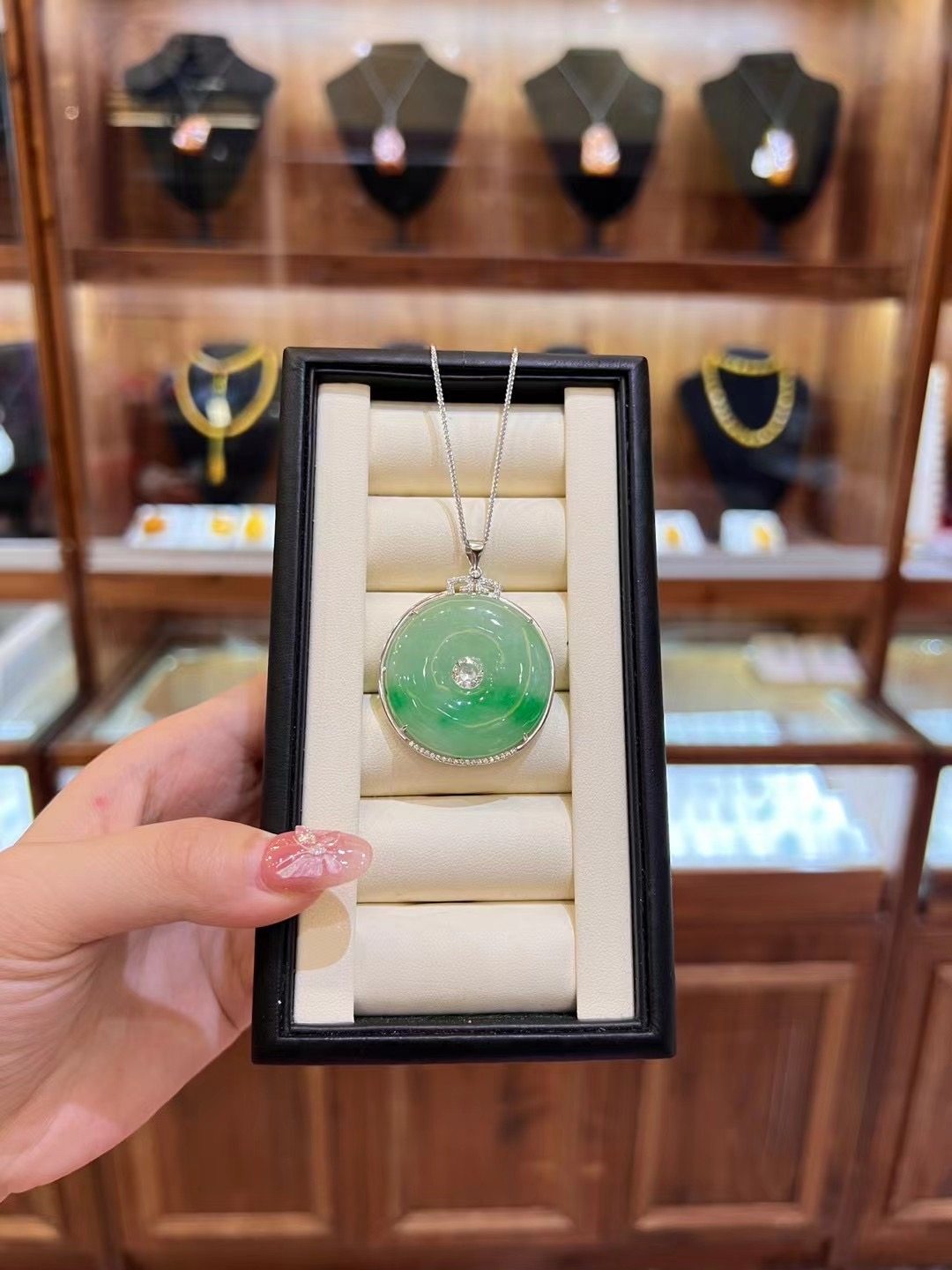 Sterling Silver S925 Silver Inlaid with Jade Green Ruyi Peace Pendant Necklace for Women, Fashionable Clavicle Chain, Gift for Girlfriend