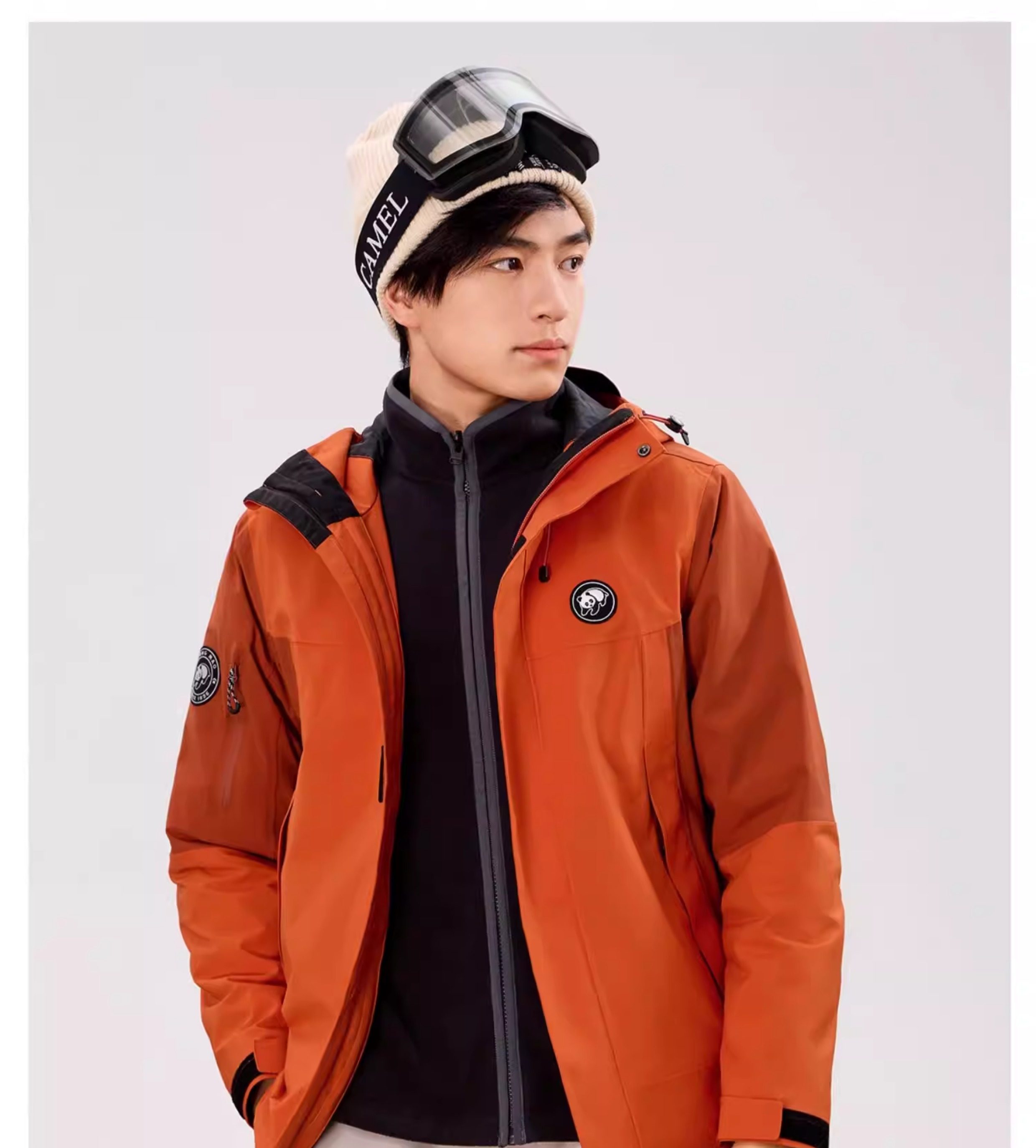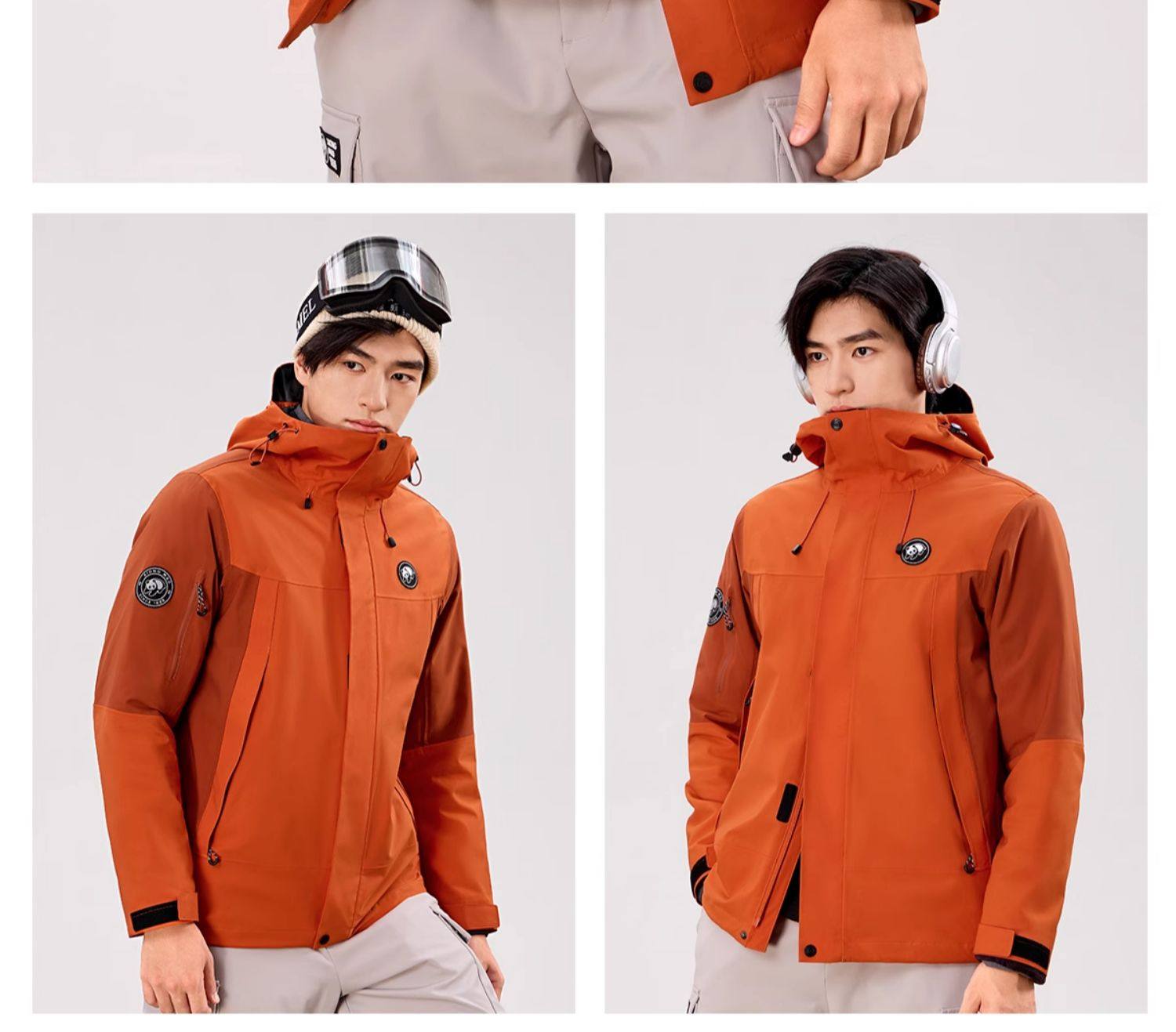 Camel Panda Outdoor Orange Color Jacket for Women, Three-In-One New Thickened Windproof Mountaineering Jacket, Stylish Outerwear for Men
