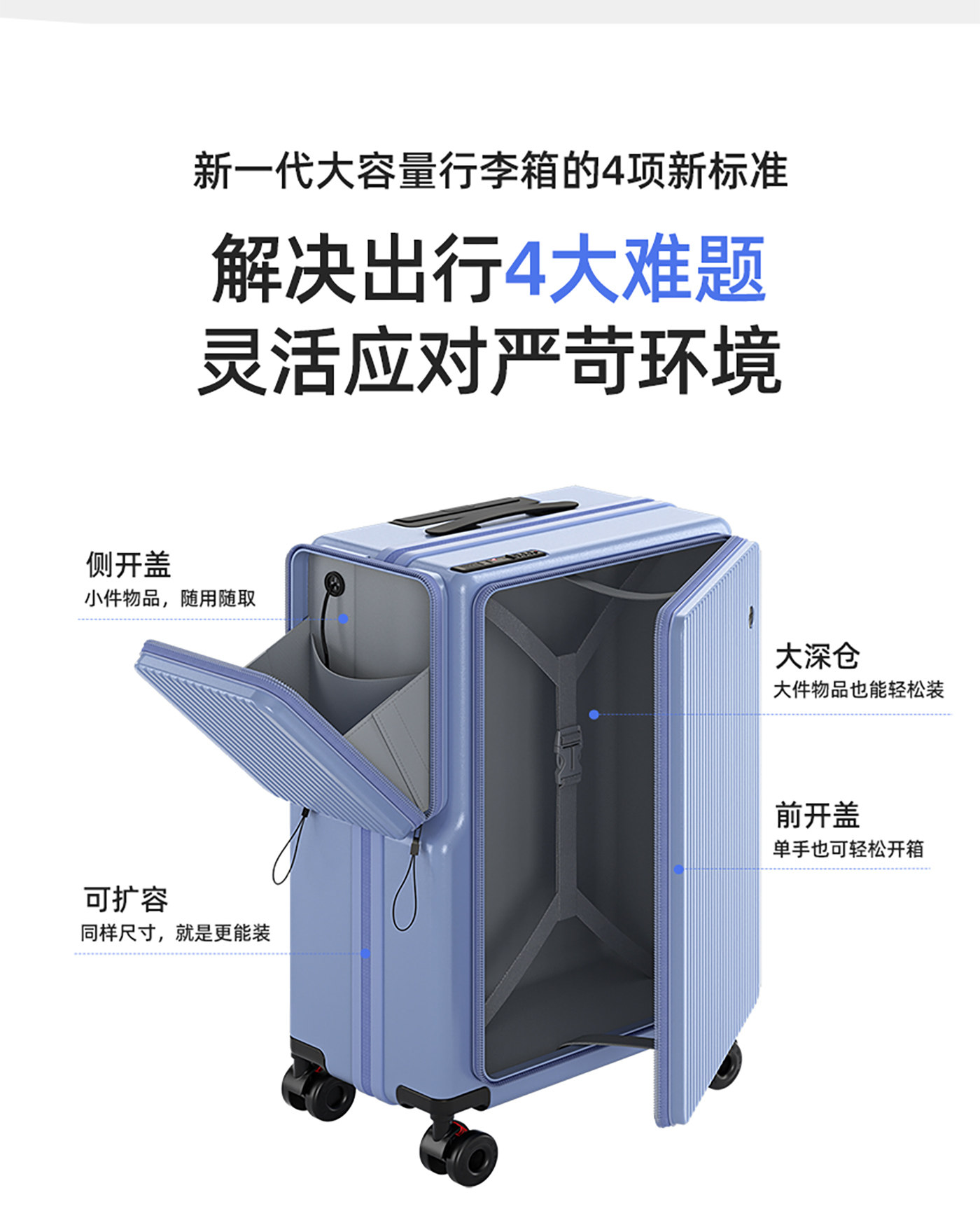 2025 New Model Suitcase 20inch Small Front-Opening Carry-On Short-Distance Side-Opening Travel Password Lock Trolley Case