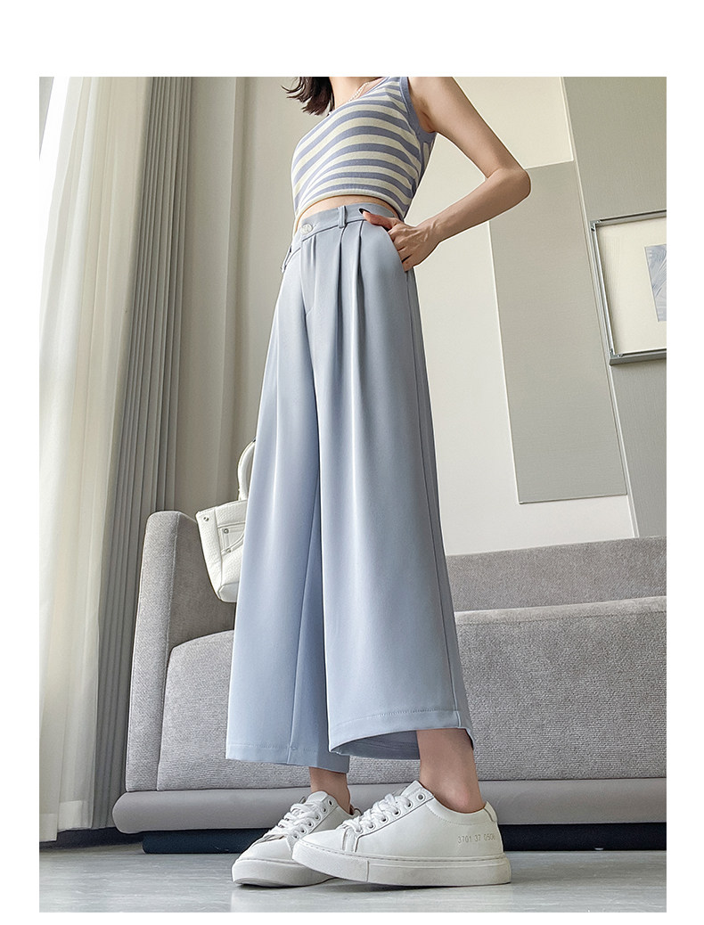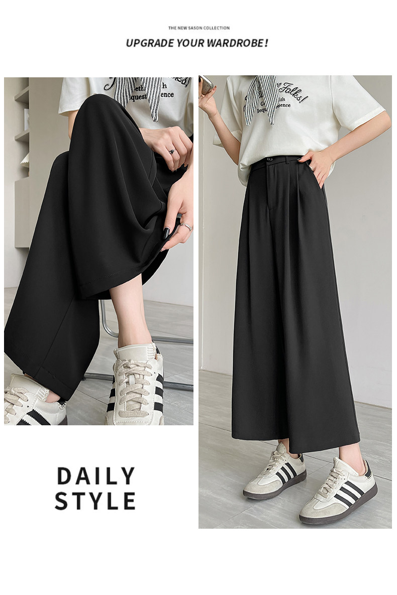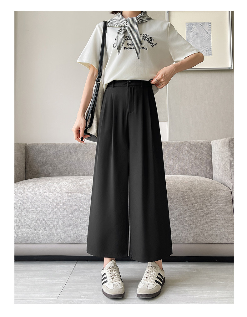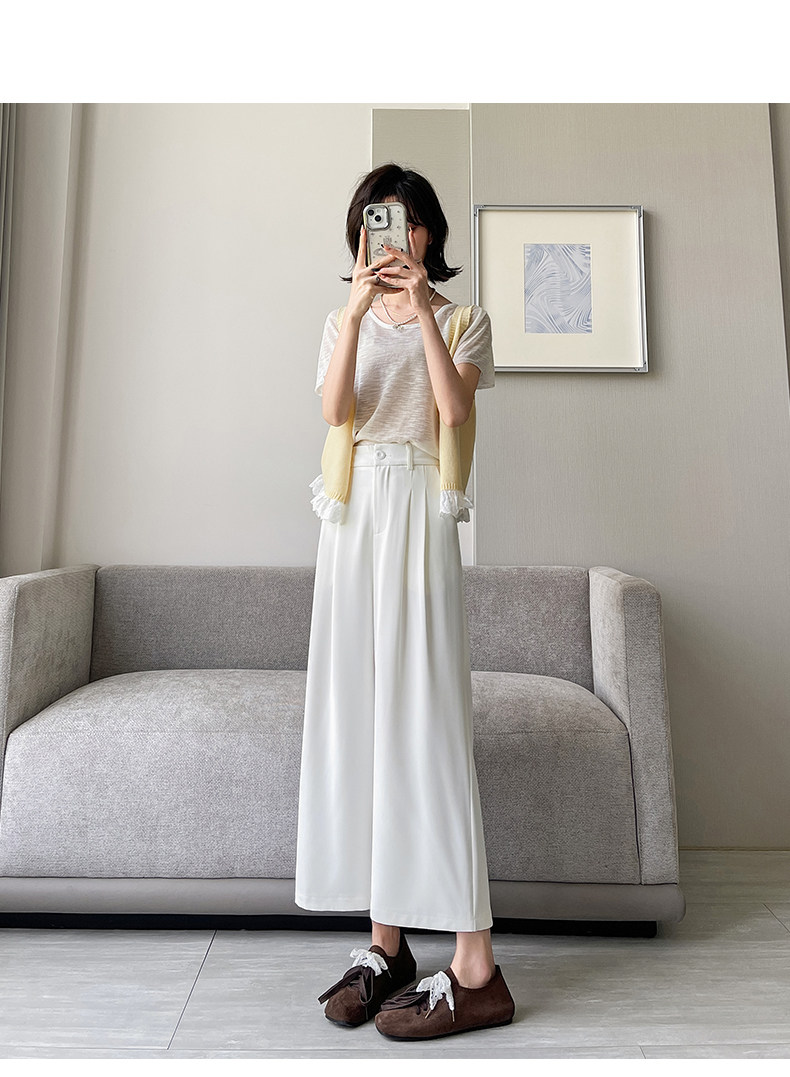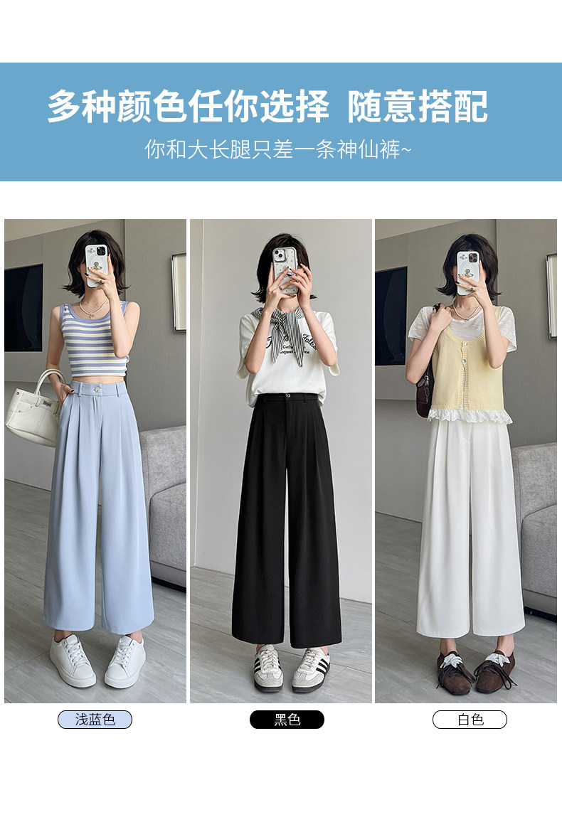 Ice Silk Wide-Leg Pants for Women, Summer Thin Style, 2025 New Model, Petite Size, Cropped Casual Straight-Leg Suit Pants with a High-End Drape