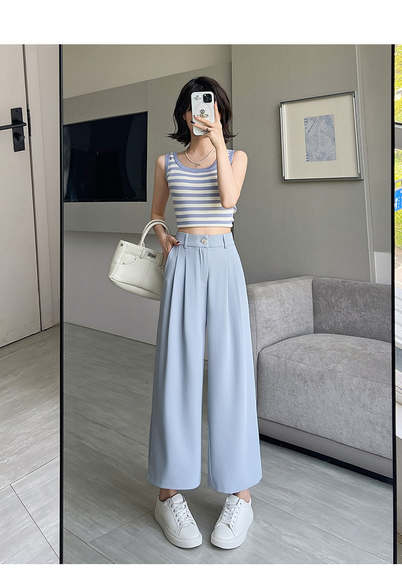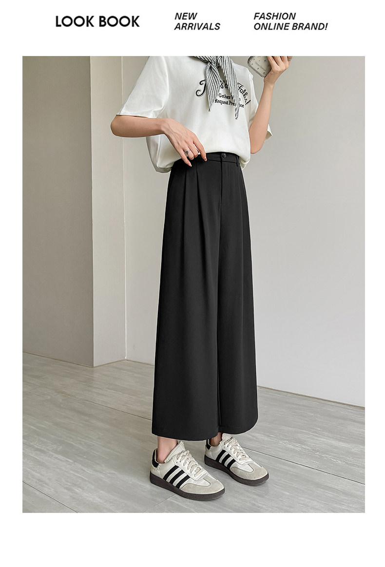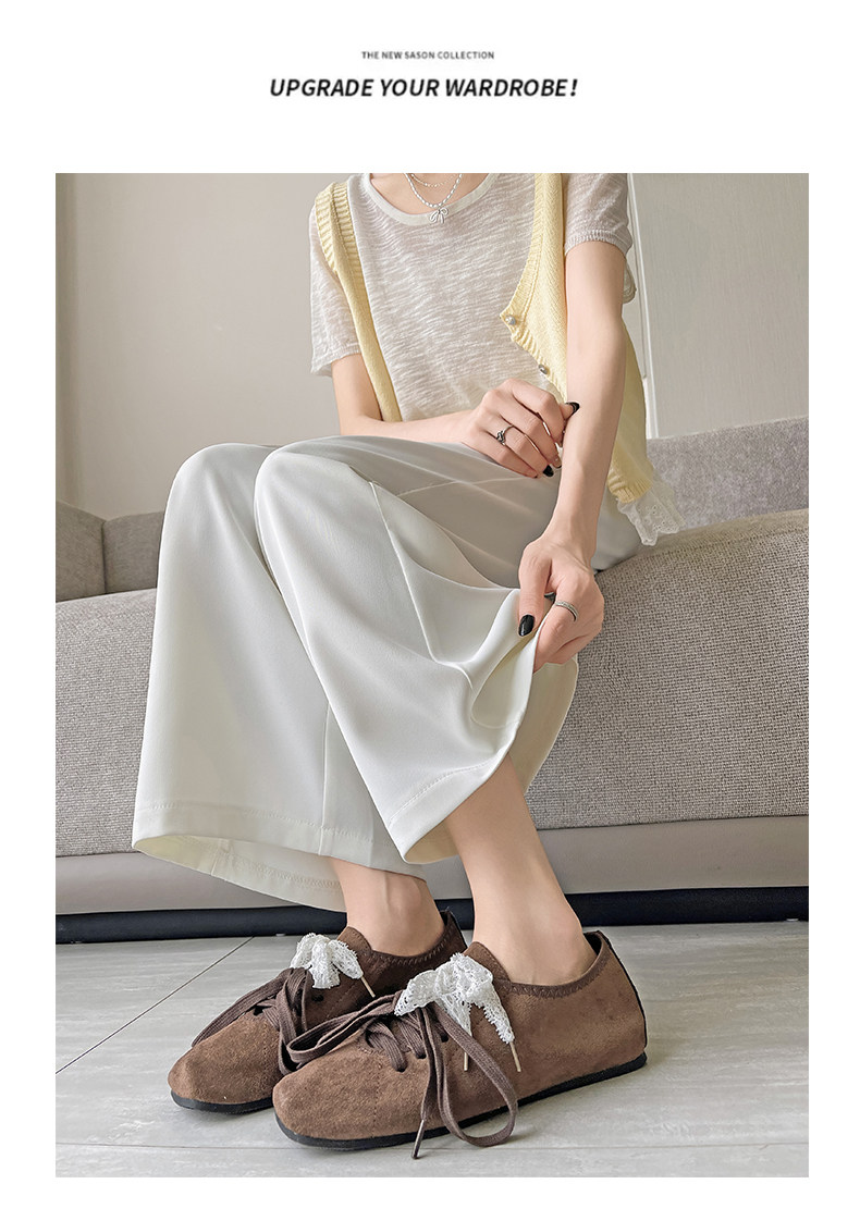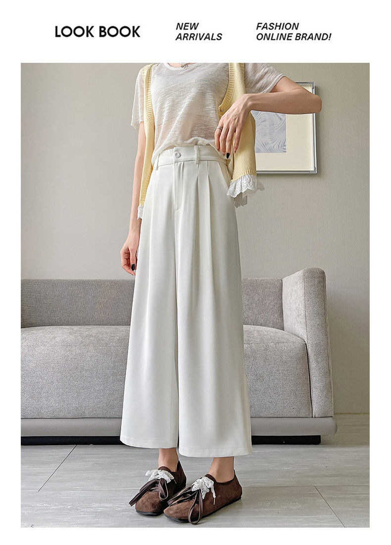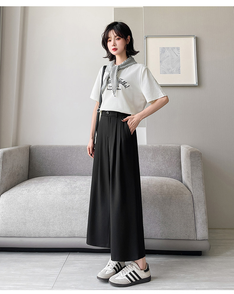 Ice Silk Wide-Leg Pants for Women, Summer Thin Style, 2025 New Model, Petite Size, Cropped Casual Straight-Leg Suit Pants with a High-End Drape