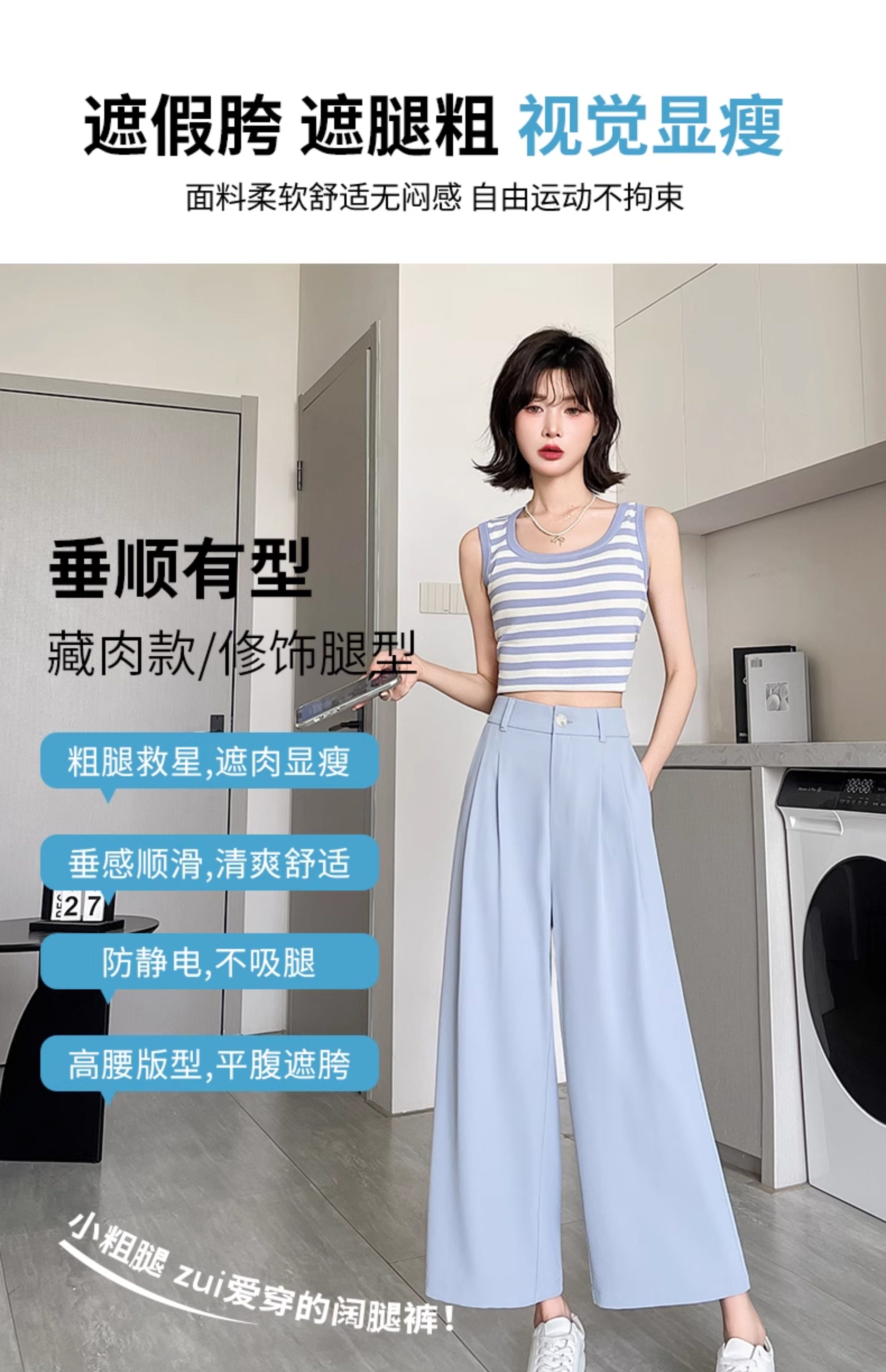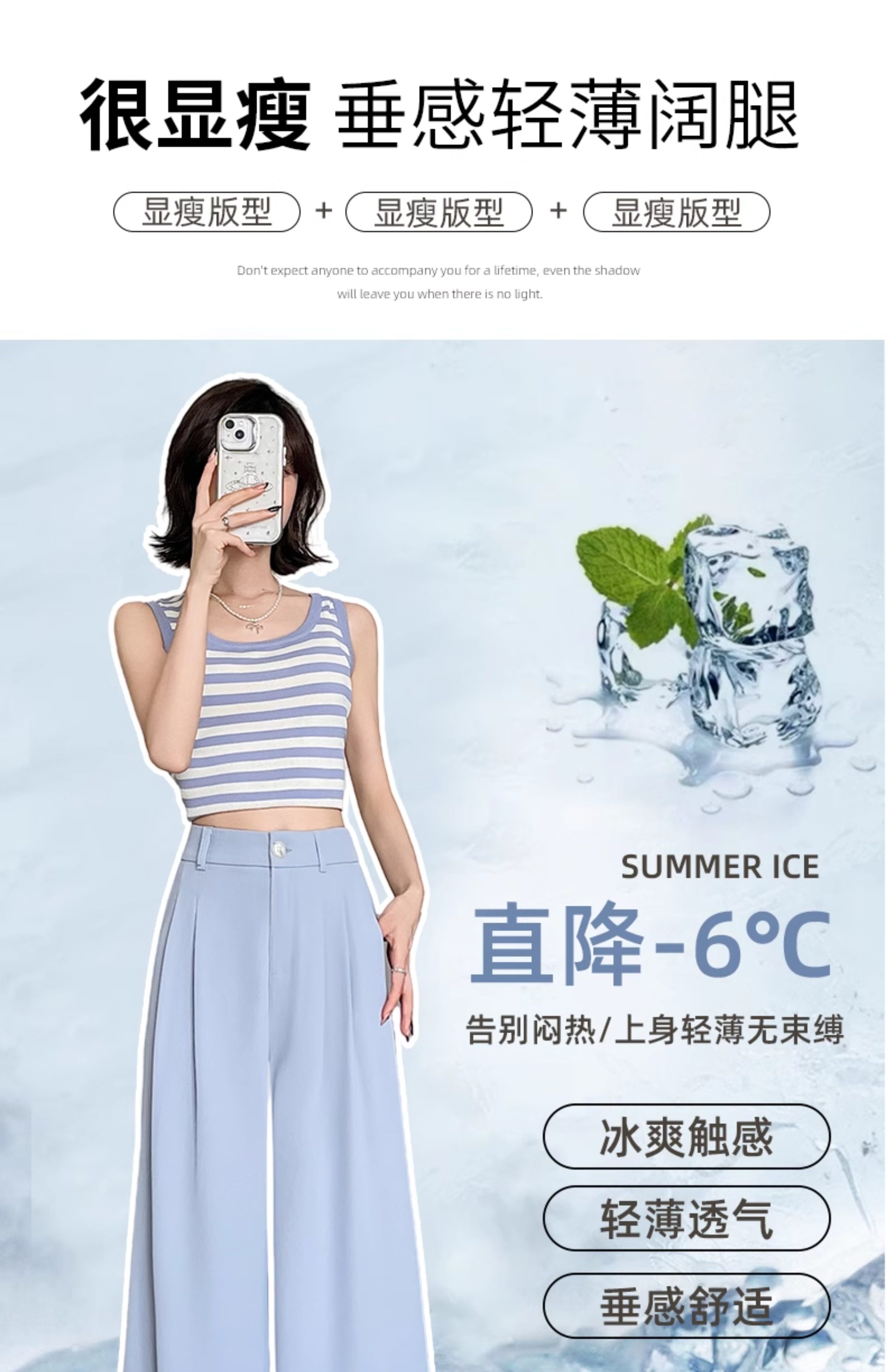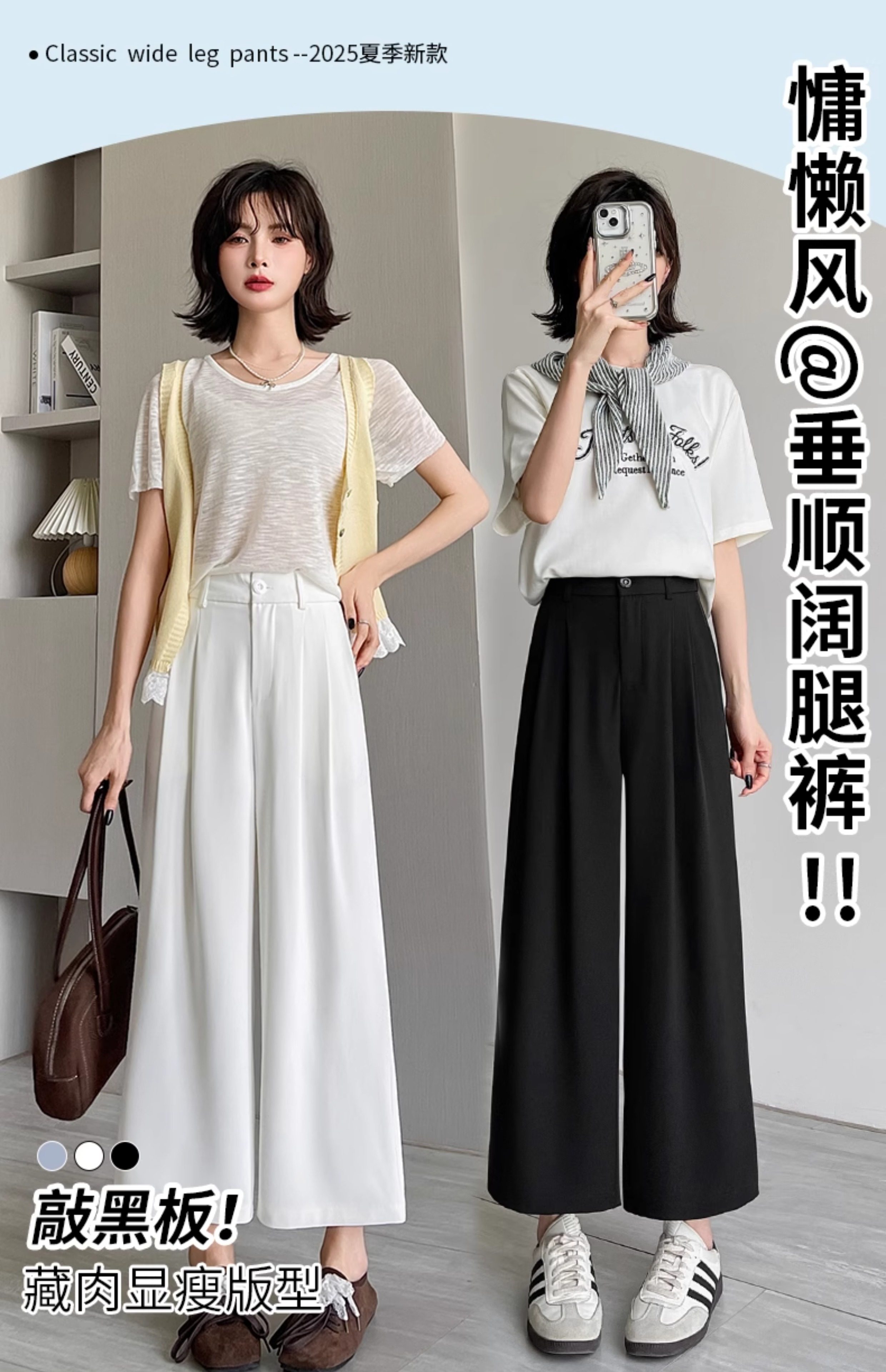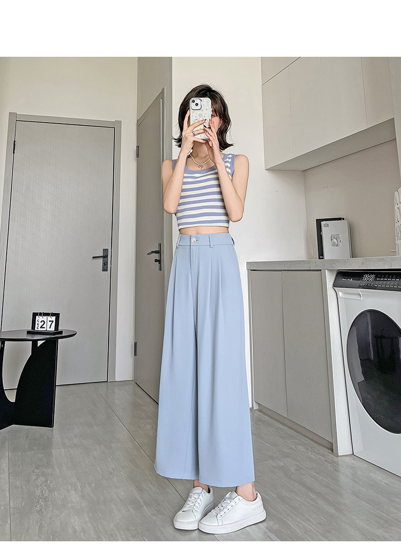 Ice Silk Wide-Leg Pants for Women, Summer Thin Style, 2025 New Model, Petite Size, Cropped Casual Straight-Leg Suit Pants with a High-End Drape