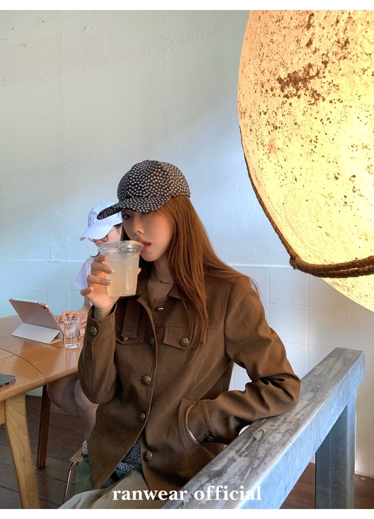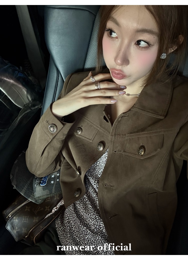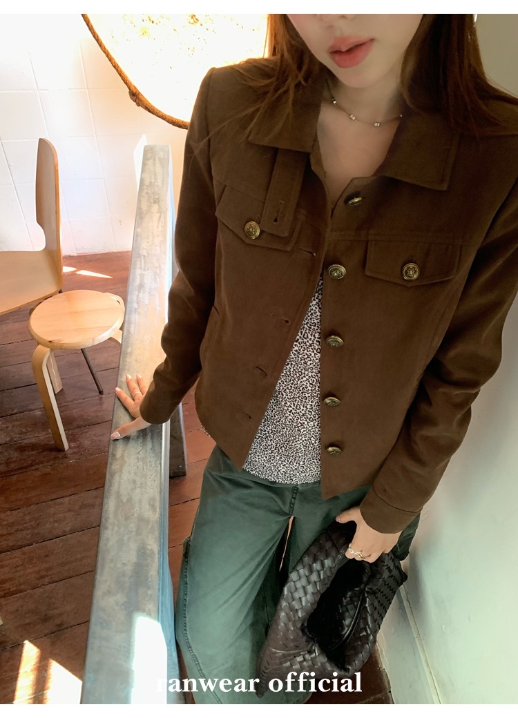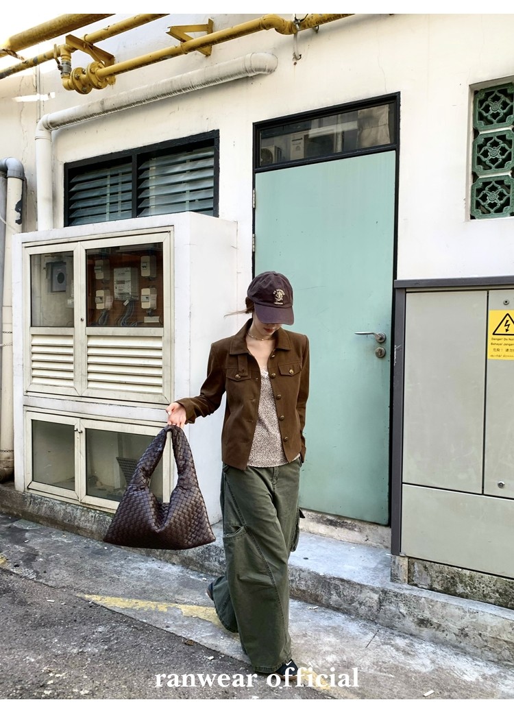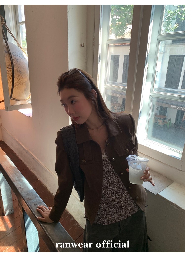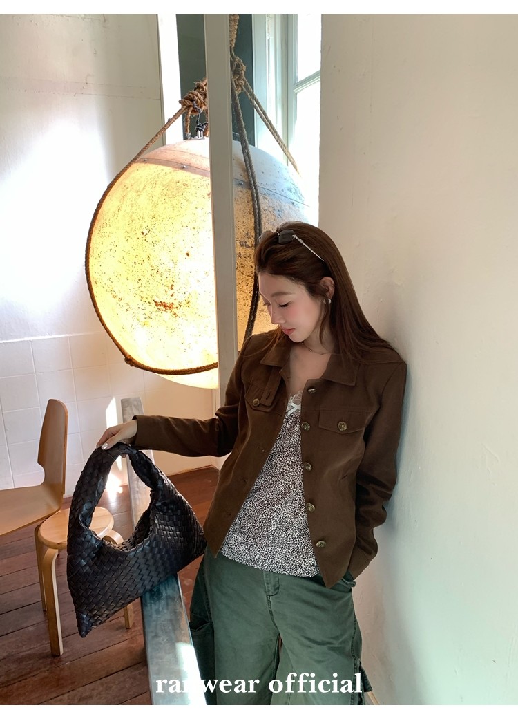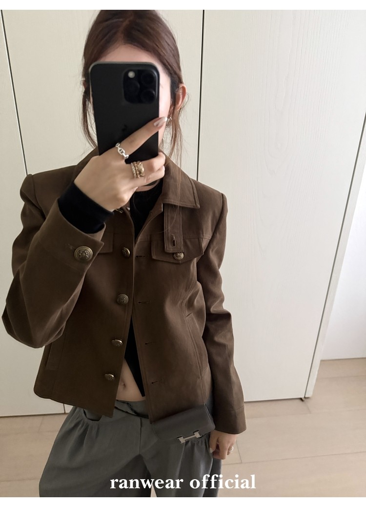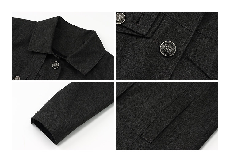 咖色款扣子采用古铜色金属手缝扣 黑色款选用枪色金属扣