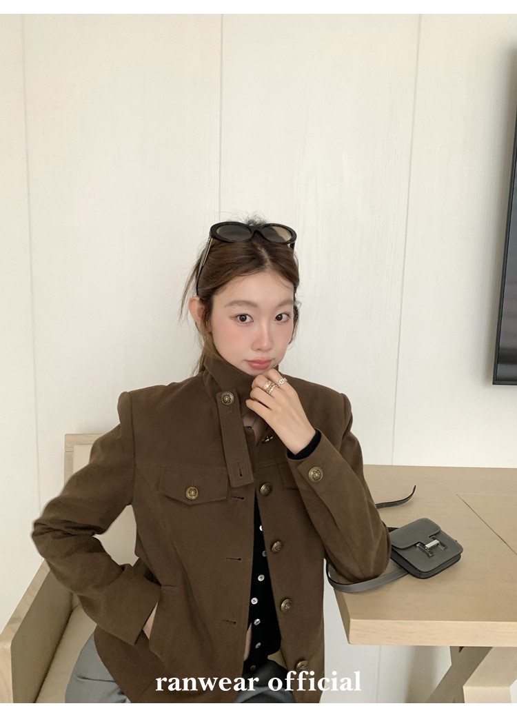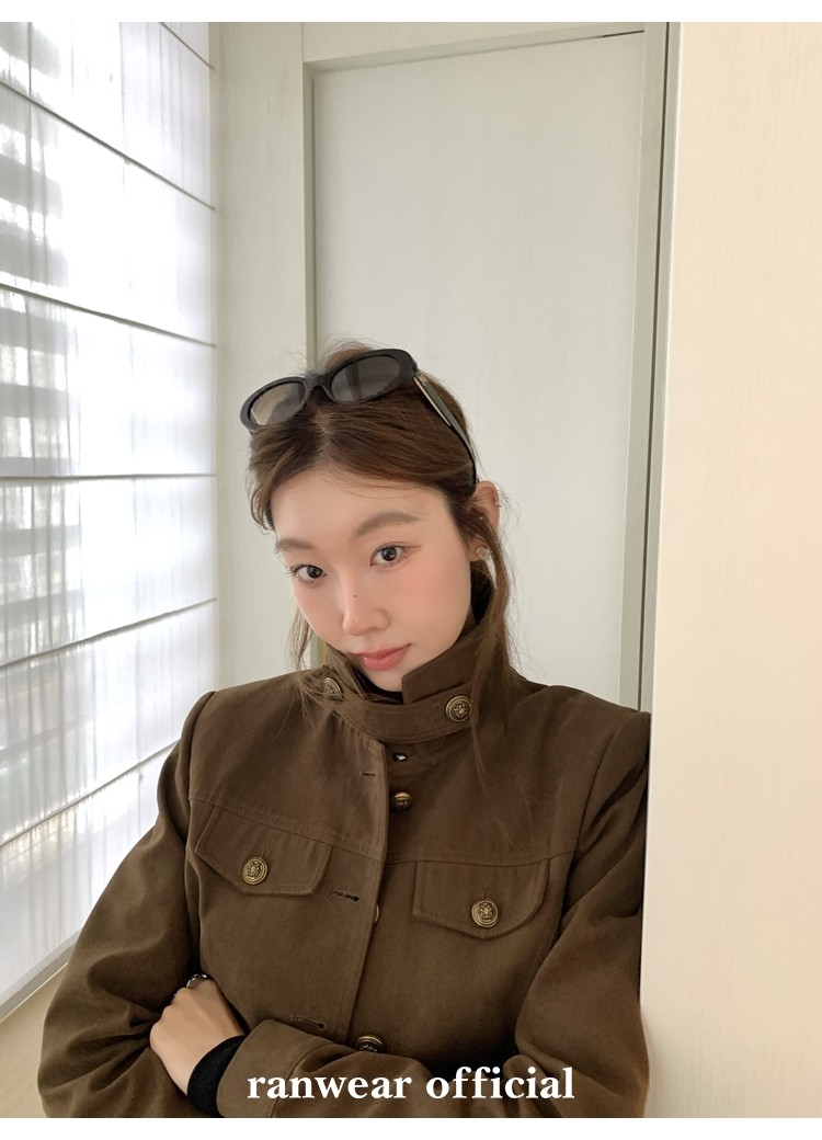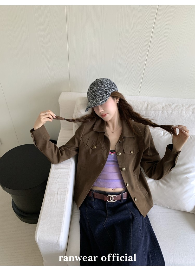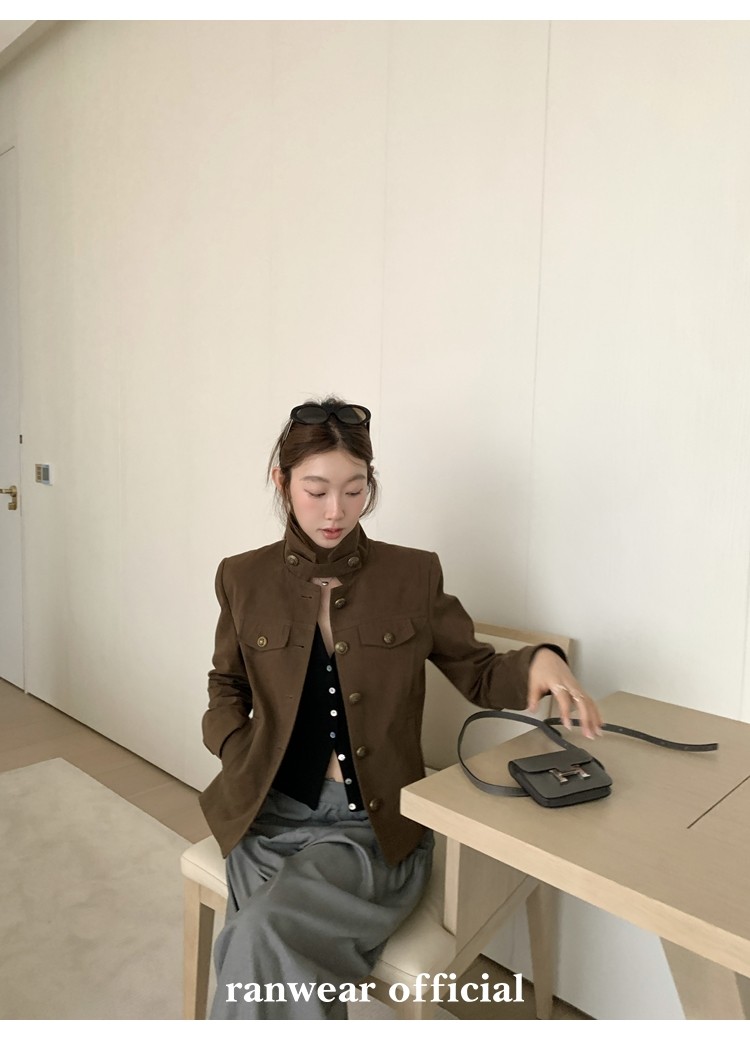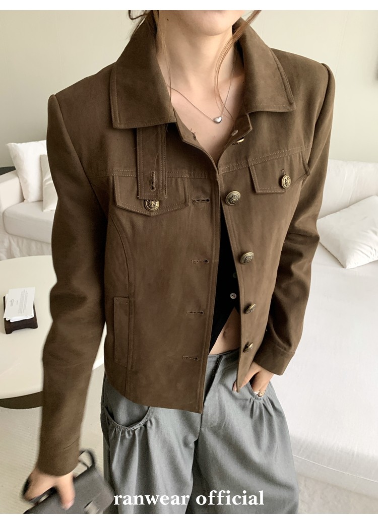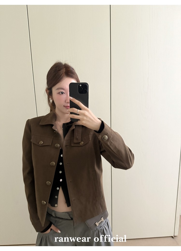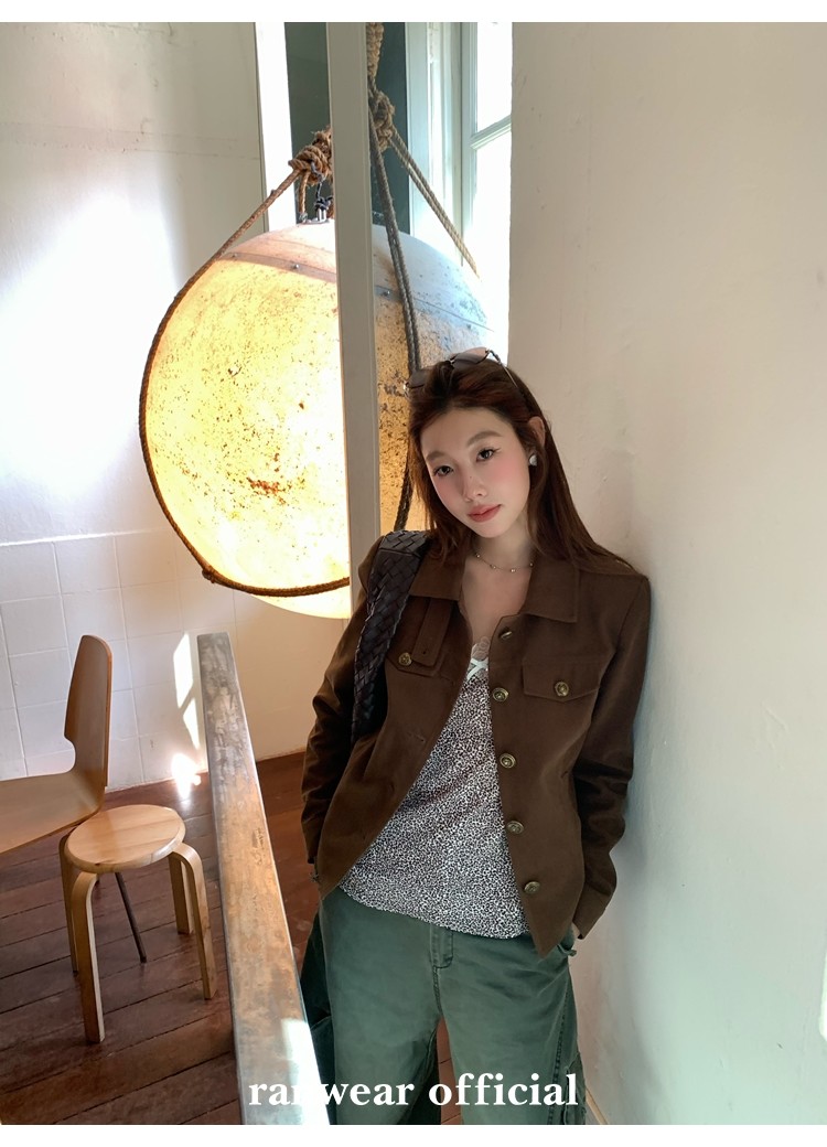 咖色款扣子采用古铜色金属手缝扣 黑色款选用枪色金属扣
