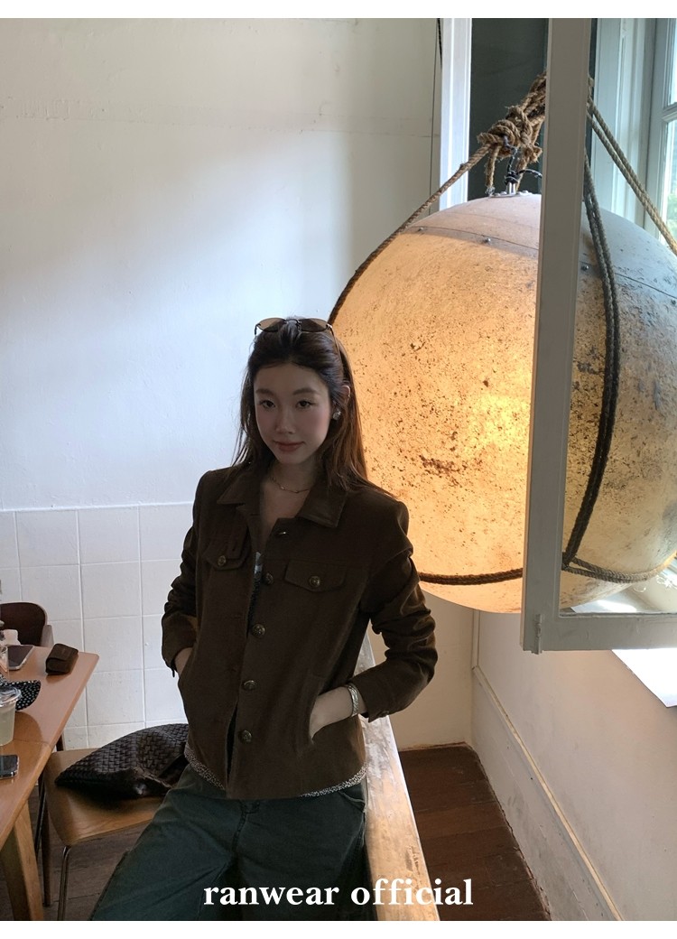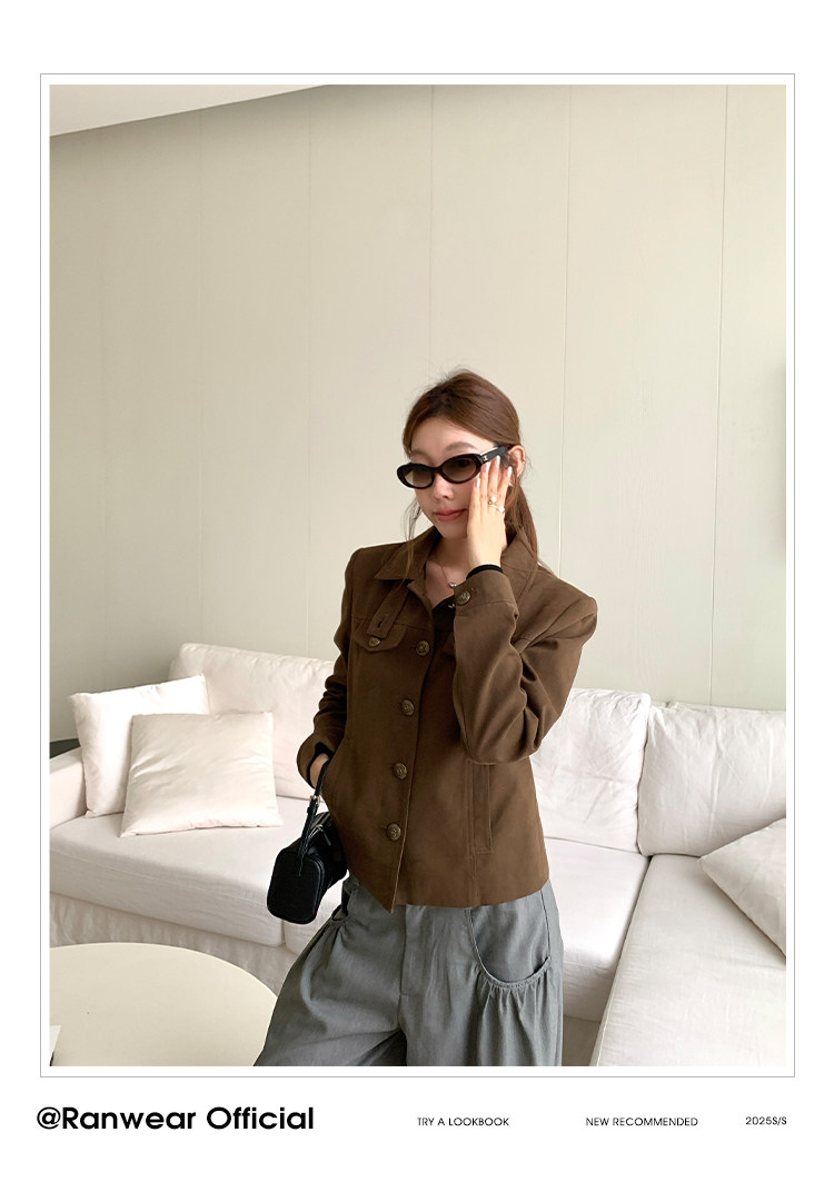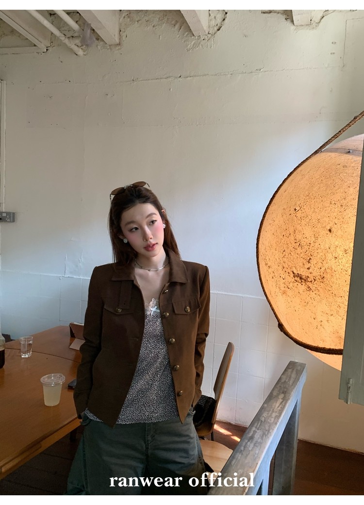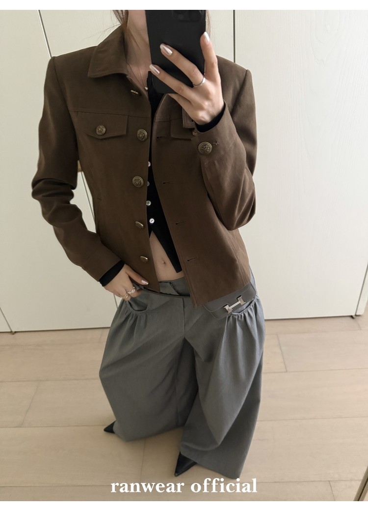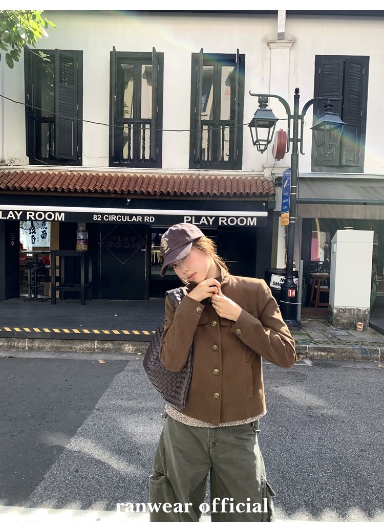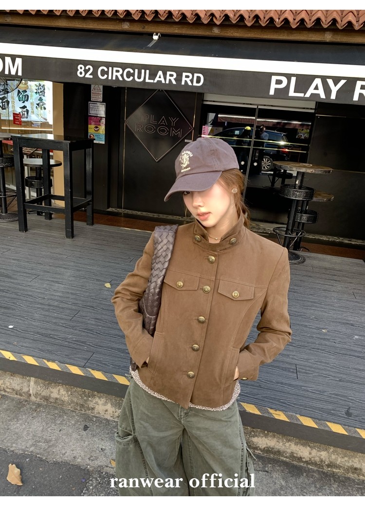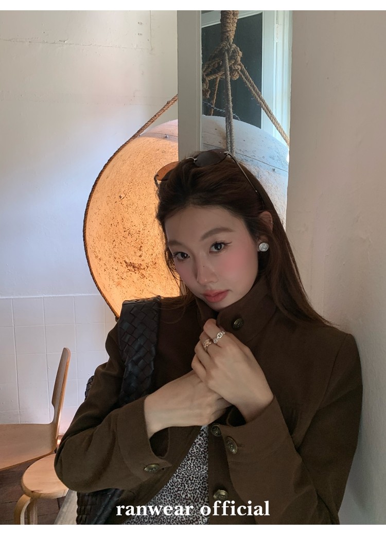 咖色款扣子采用古铜色金属手缝扣 黑色款选用枪色金属扣