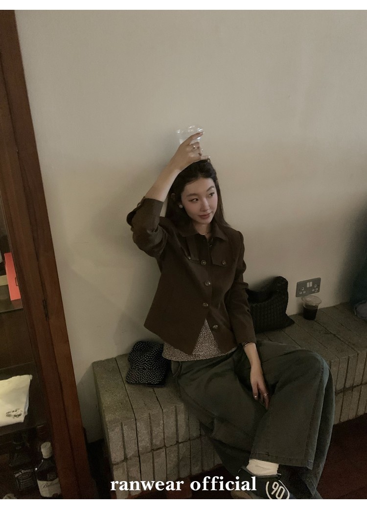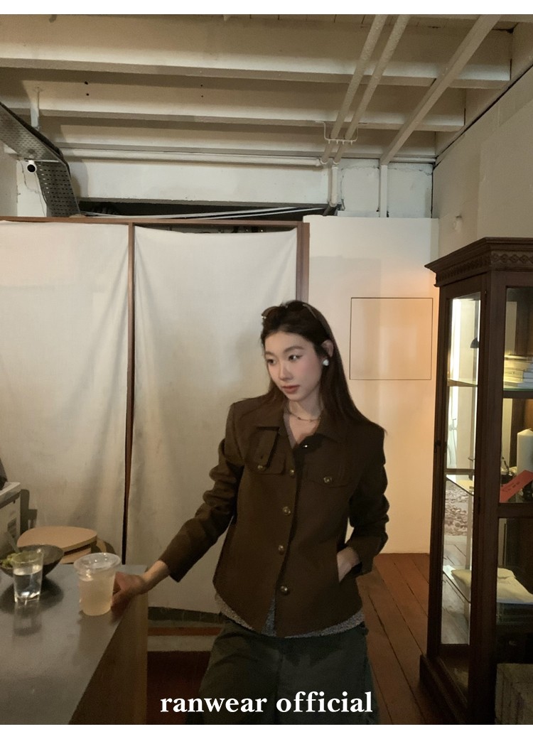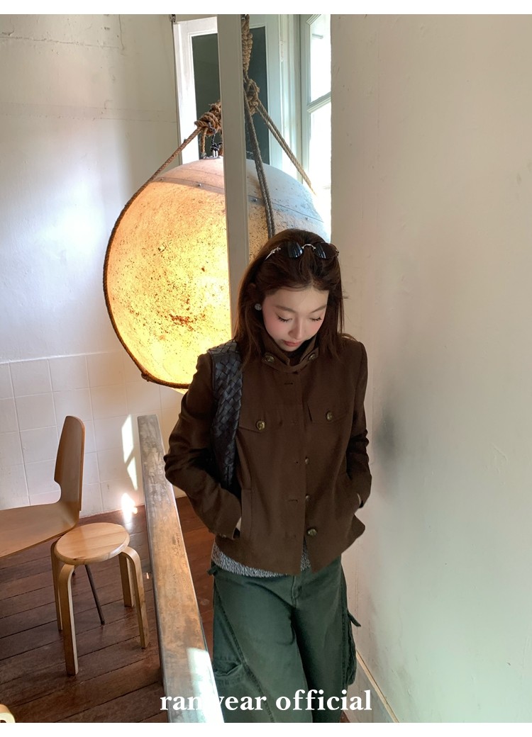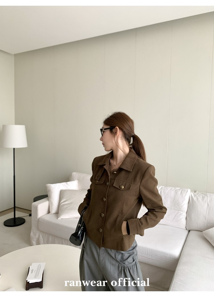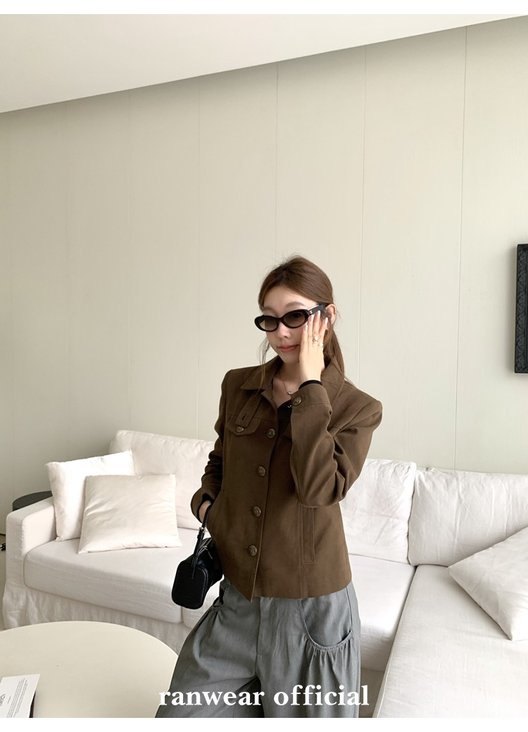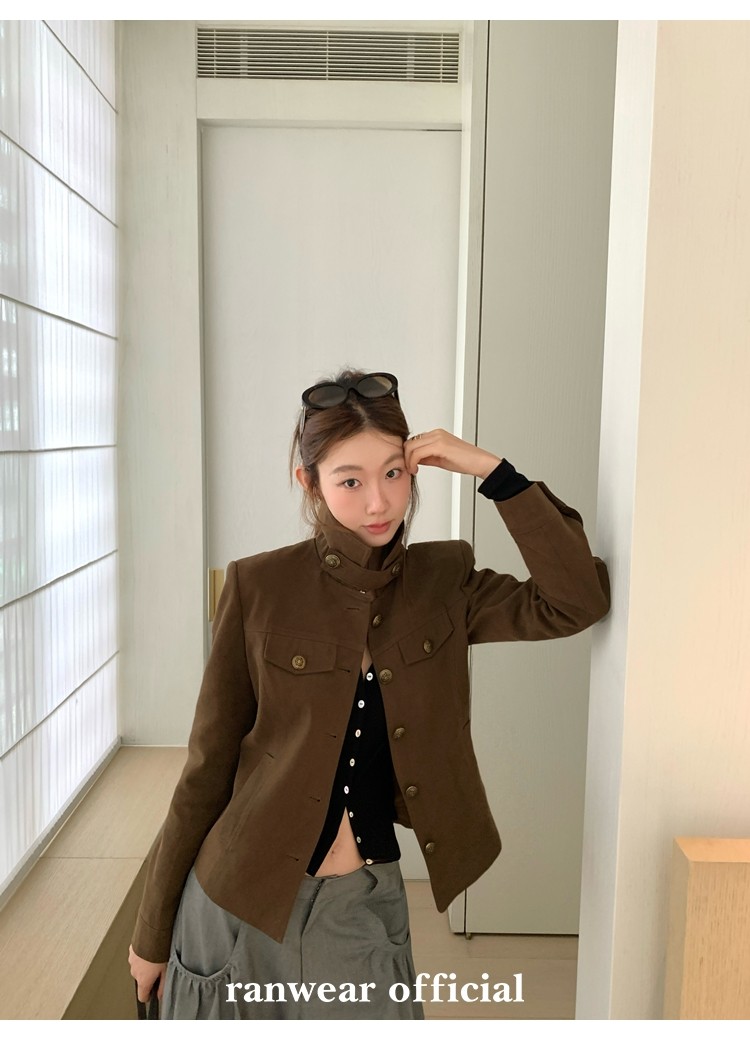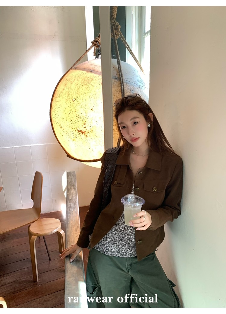 咖色款扣子采用古铜色金属手缝扣 黑色款选用枪色金属扣