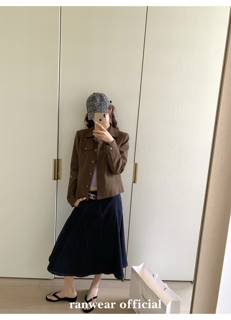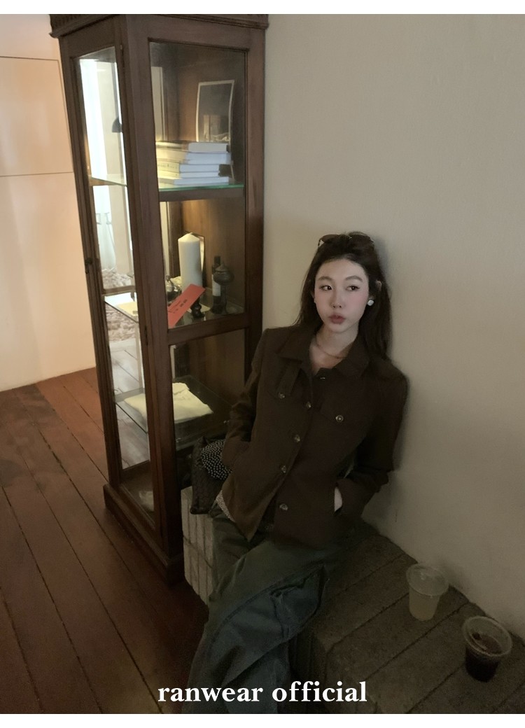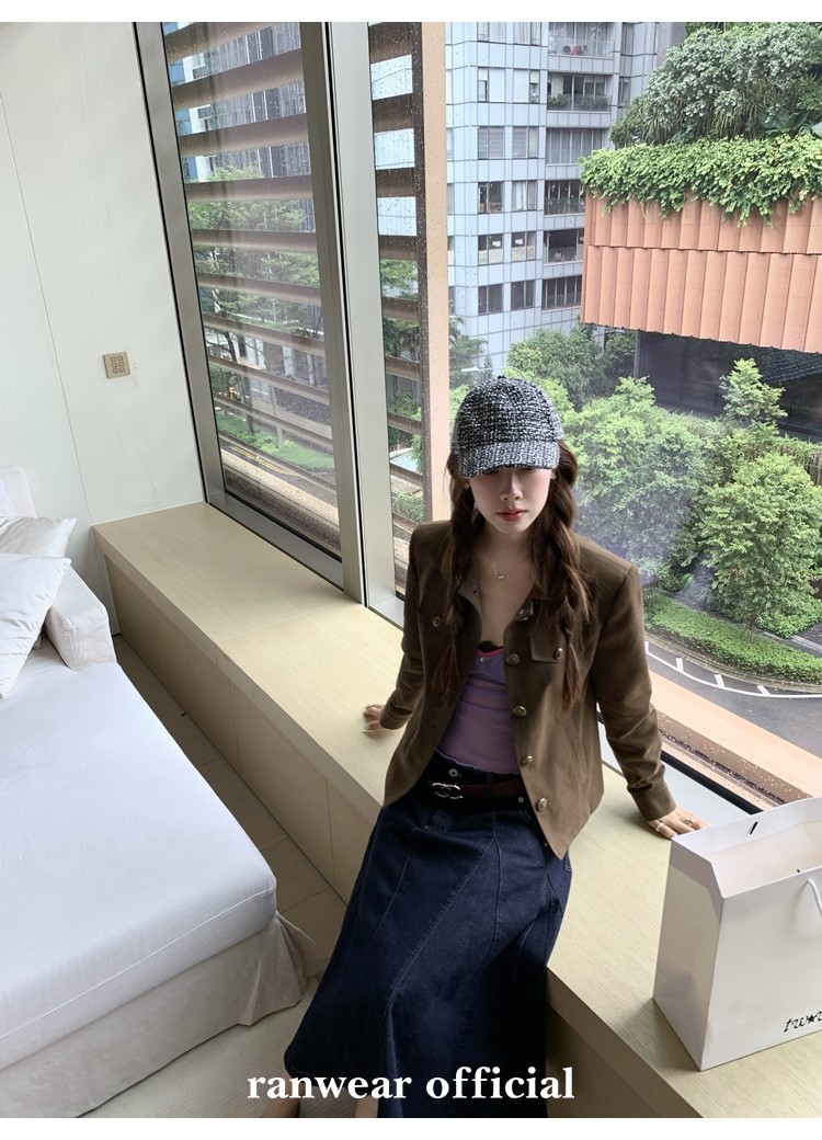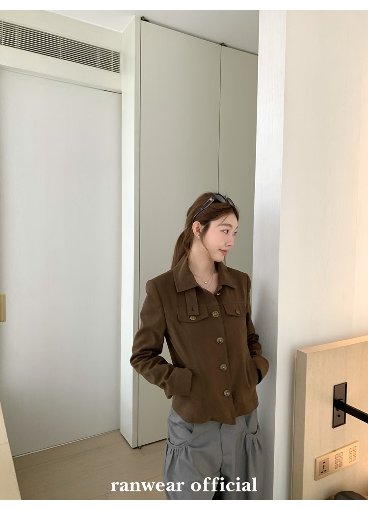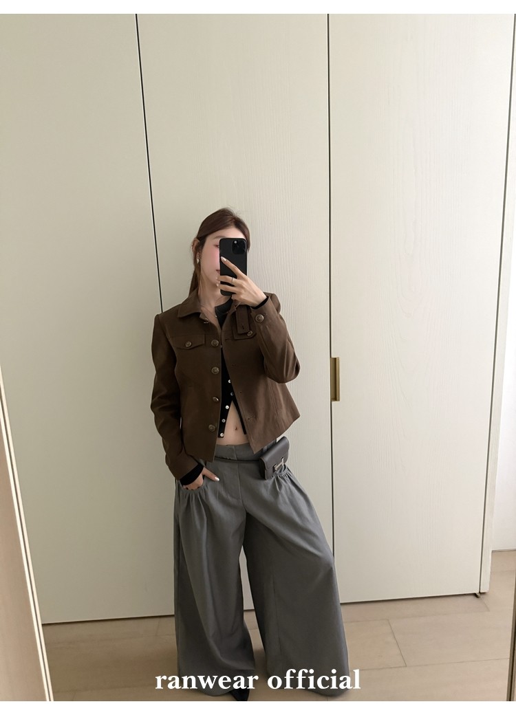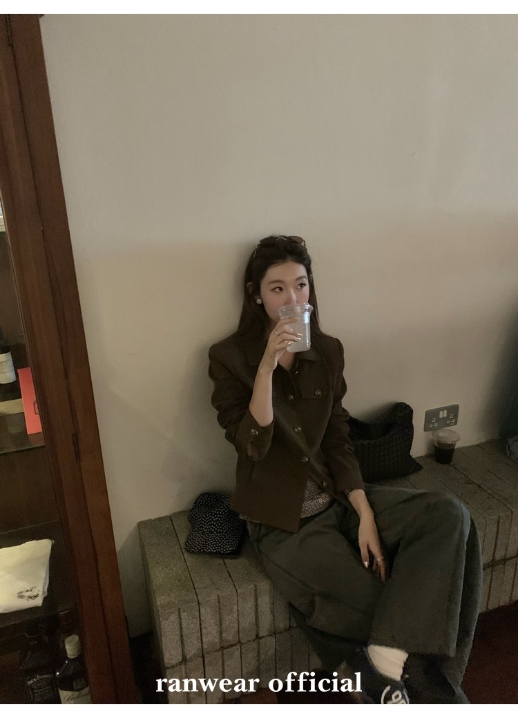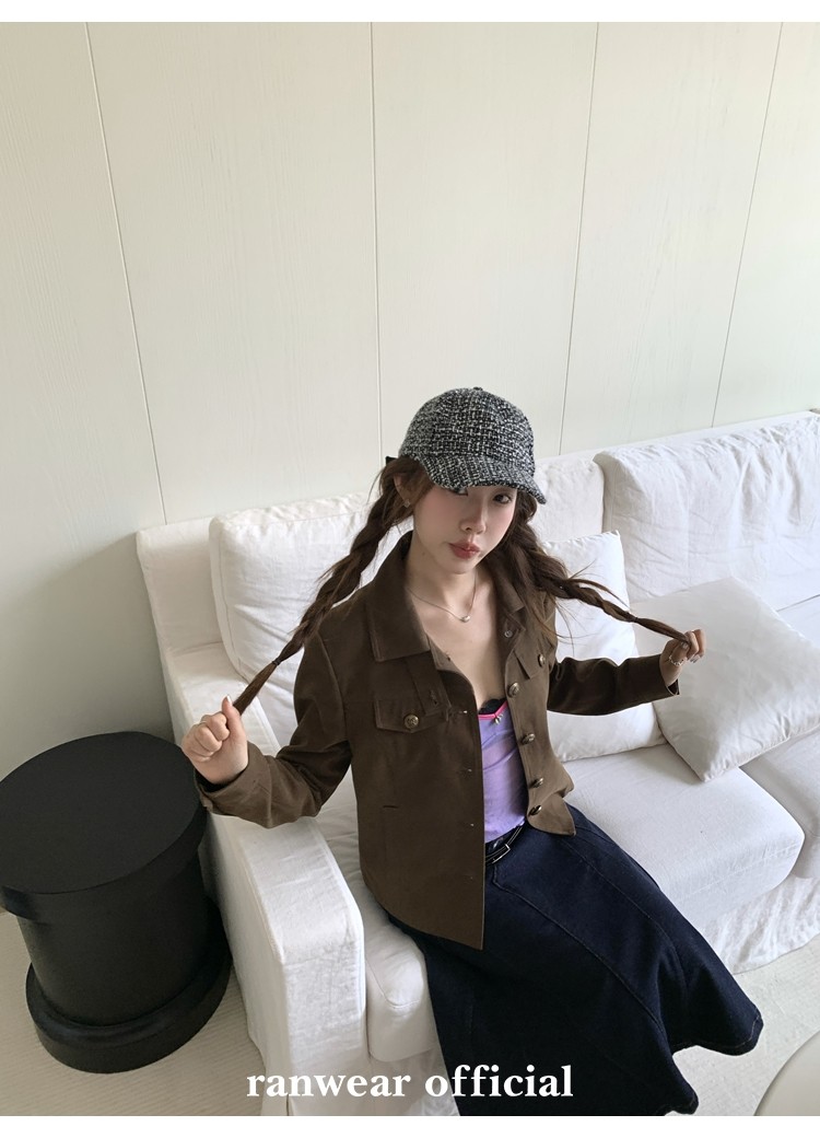 咖色款扣子采用古铜色金属手缝扣 黑色款选用枪色金属扣