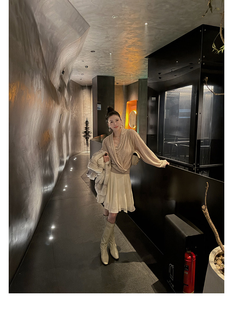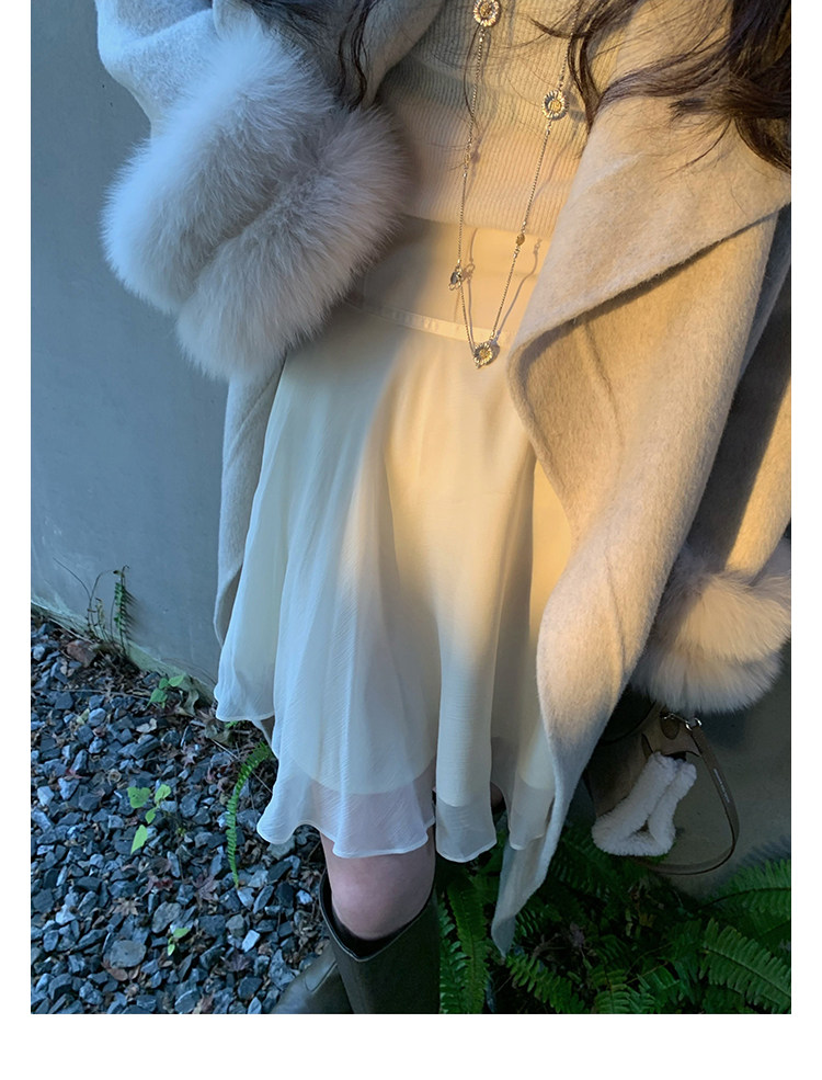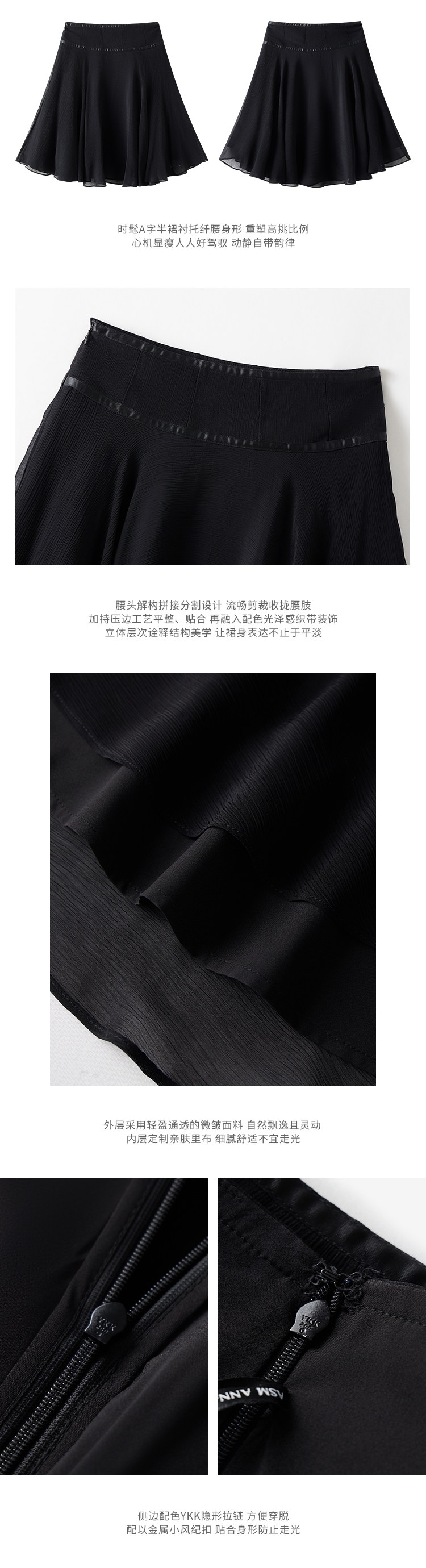 Asm Anna/Korean-Style Romantic Rayon Cupro Skirt with Deconstructed Splicing and Ribbon A-Line Skirt for Women