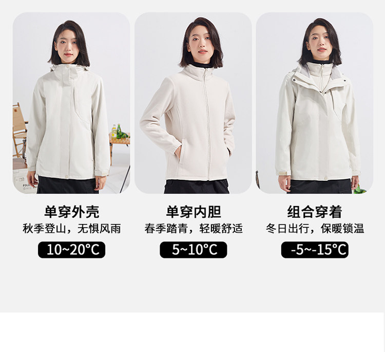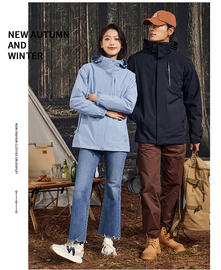 Fully Glued Teflon Jacket, Rainproof, Men's and Women's Three-In-One Detachable Outdoor Windproof Travel and Mountaineering Clothing