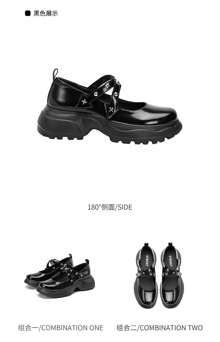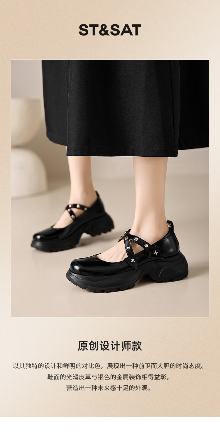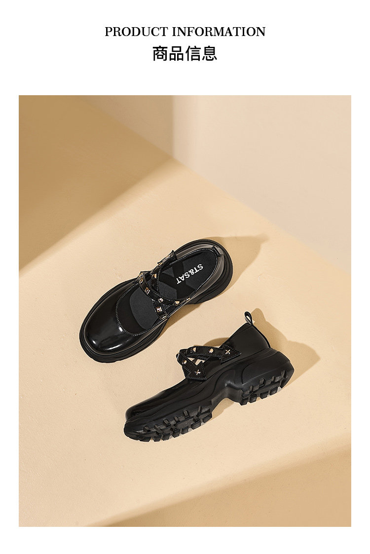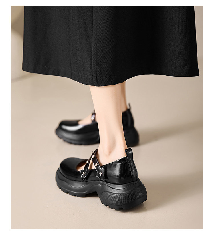 Saturday French-Style New Rivet and Rhinestone Mary Jane Shoes for Women, Thick-Soled, Height-Increasing, Comfortable for Commuting, Loafers, Small Leather Shoes
