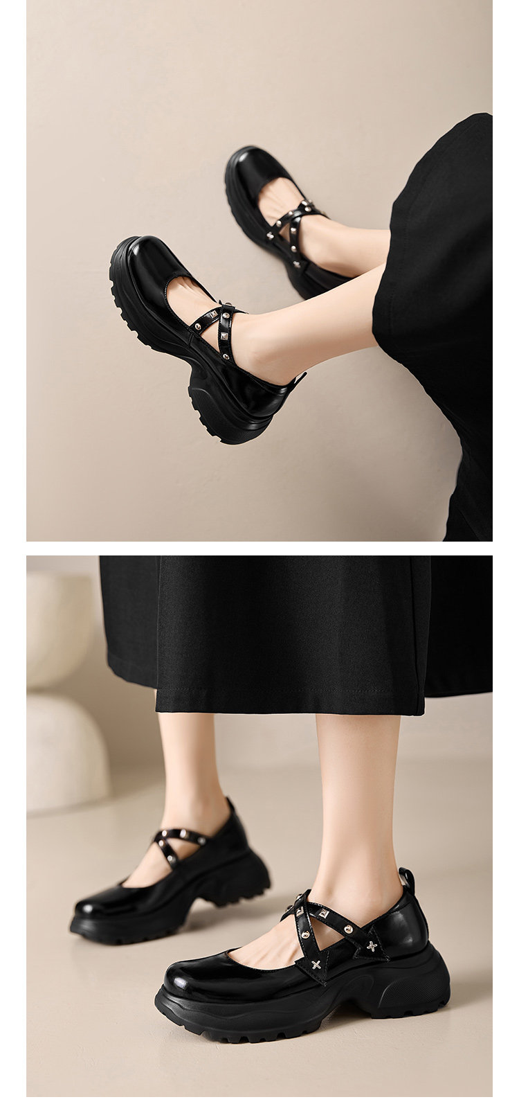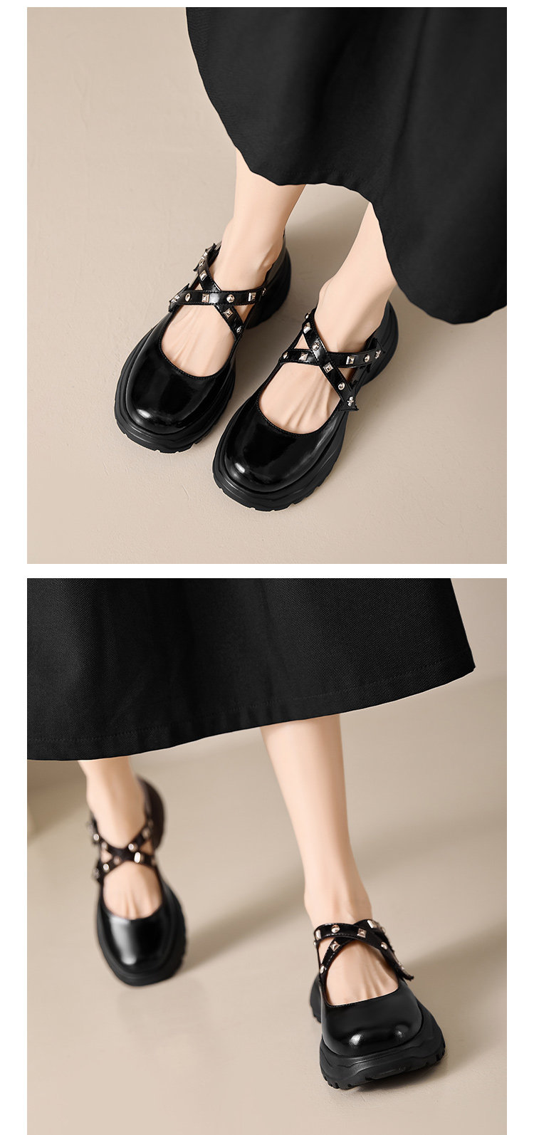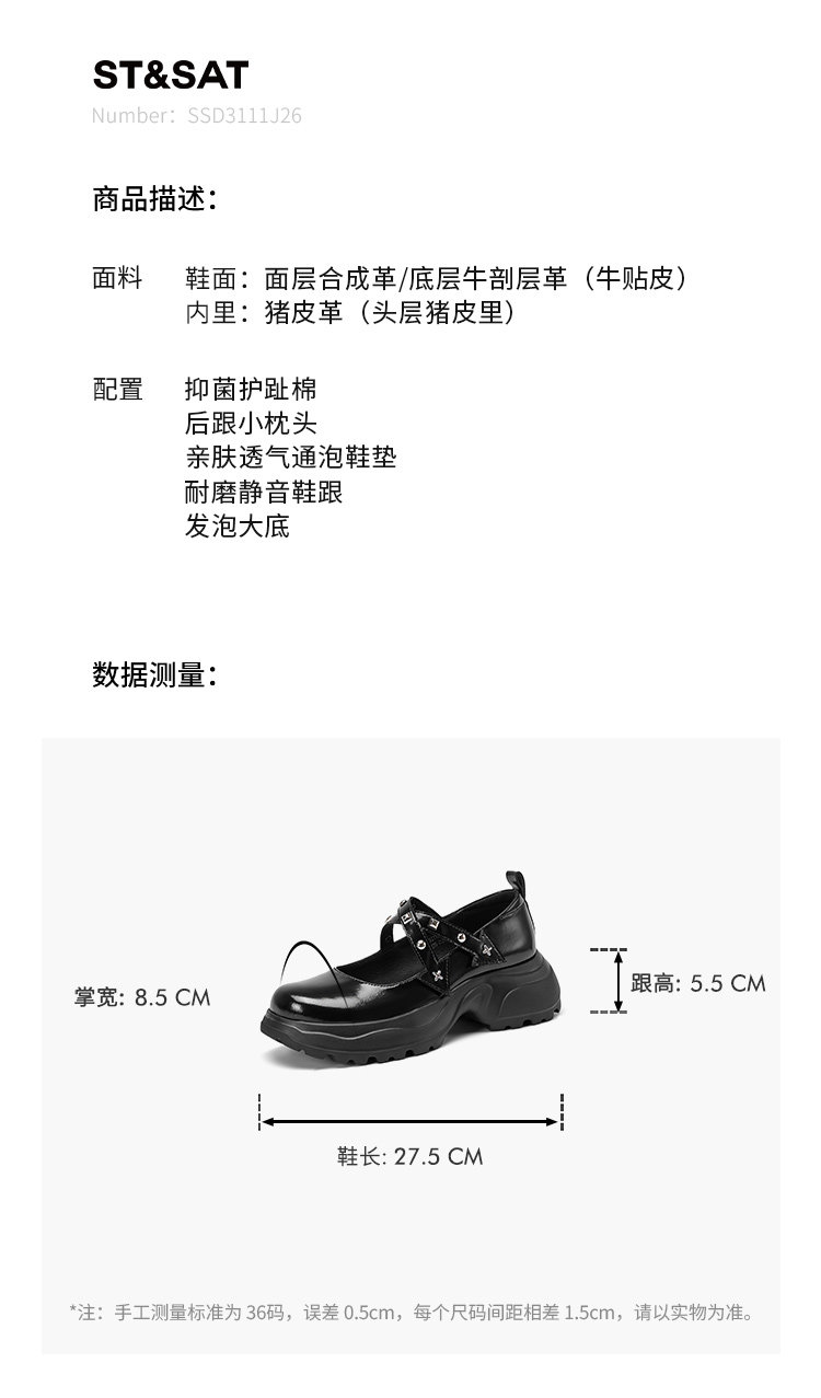 Saturday French-Style New Rivet and Rhinestone Mary Jane Shoes for Women, Thick-Soled, Height-Increasing, Comfortable for Commuting, Loafers, Small Leather Shoes