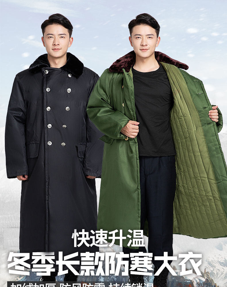 Men's Military Cotton Coat, Winter Long Style, Thickened for Cold Protection, Northeast Cotton Jacket, Cold-Proof, Mid-Length, Labor Protection, Security Guard Cotton Clothing