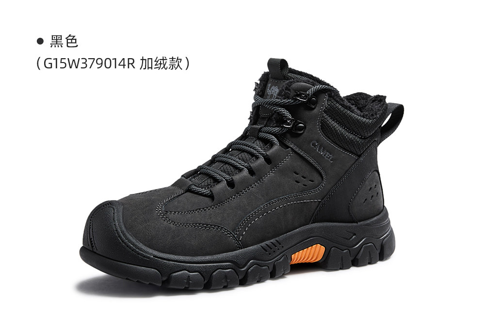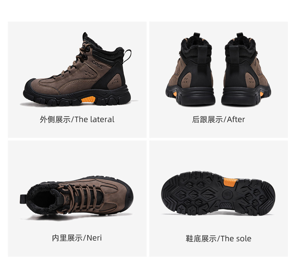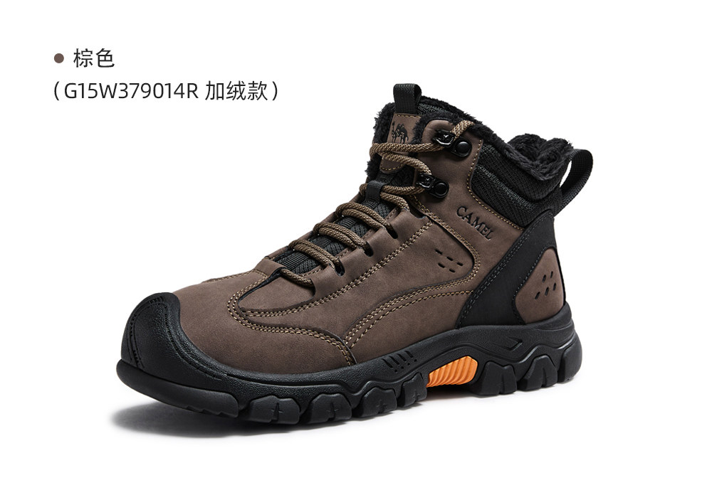 Camel Men's Shoes, Winter High-Top Fleece-Lined Cotton Shoes, Non-Slip, Waterproof, Warm Hiking Shoes, Thick-Soled, Wear-Resistant Outdoor Sports Shoes