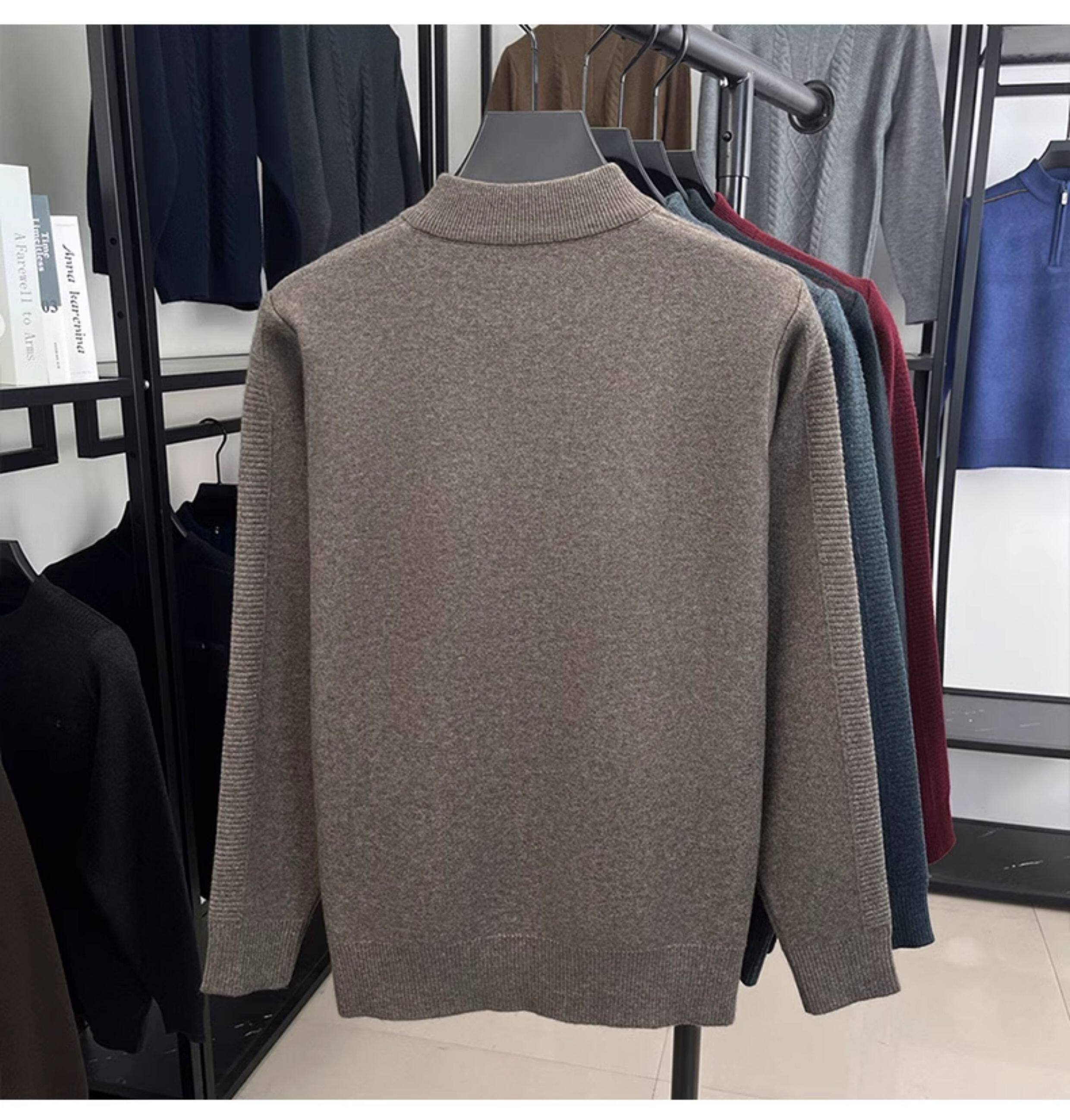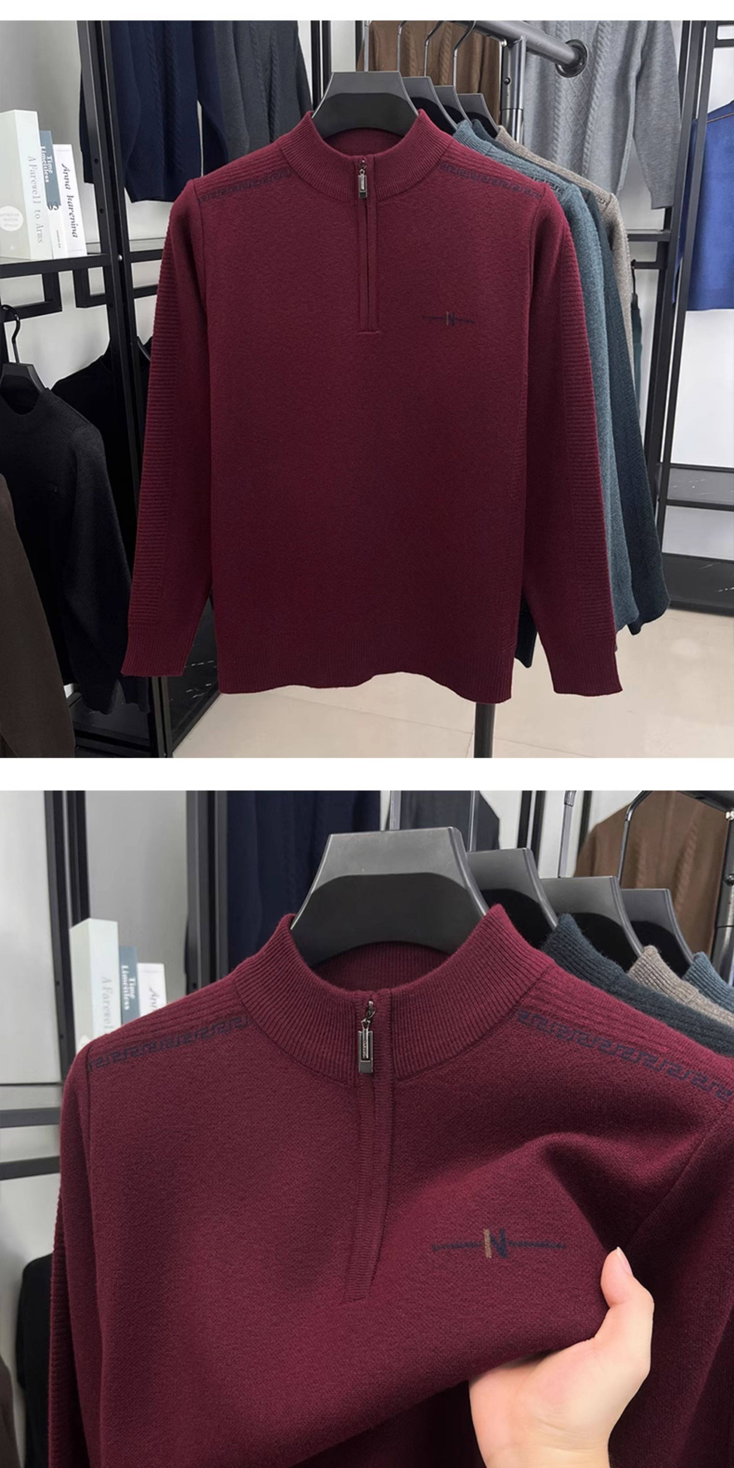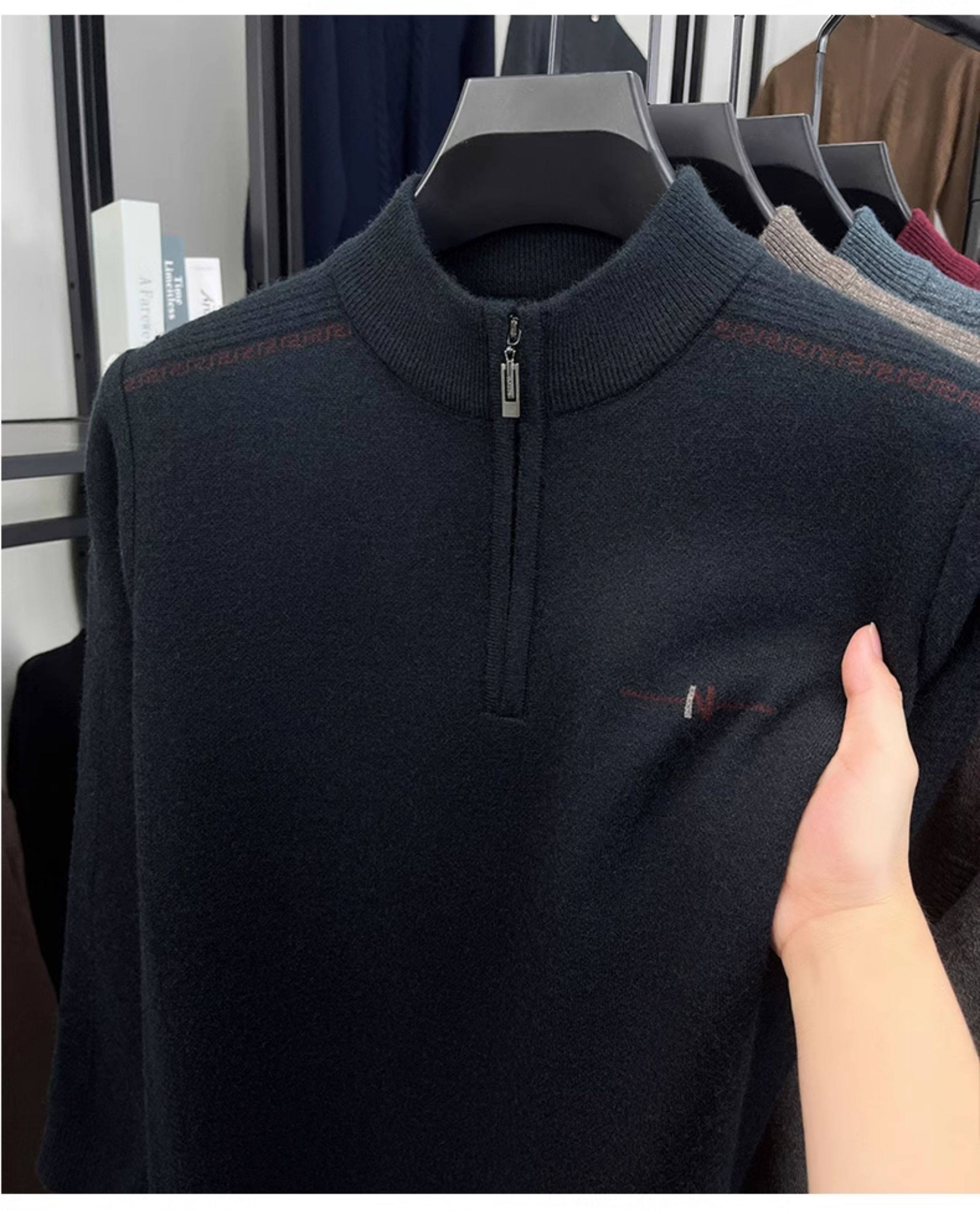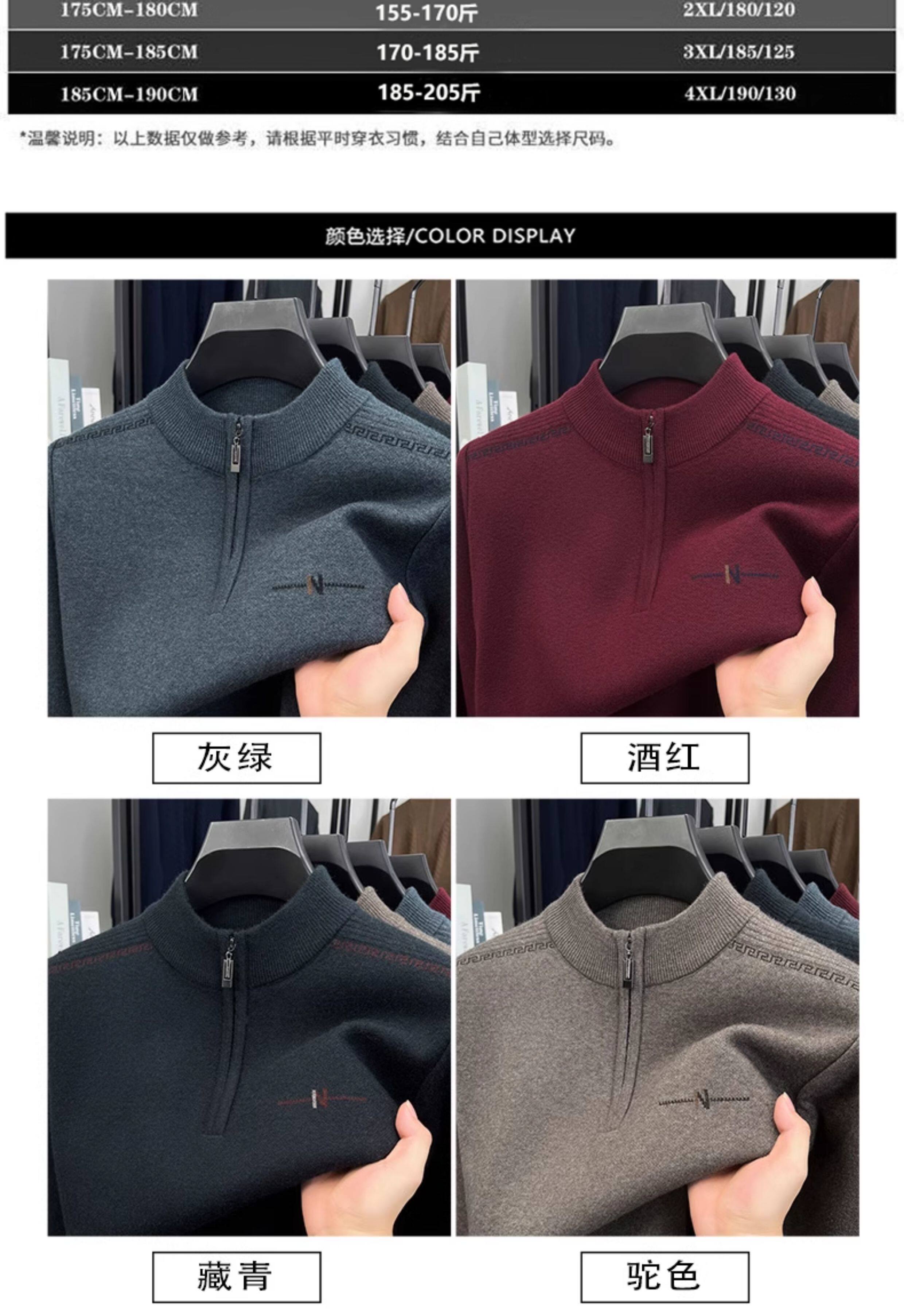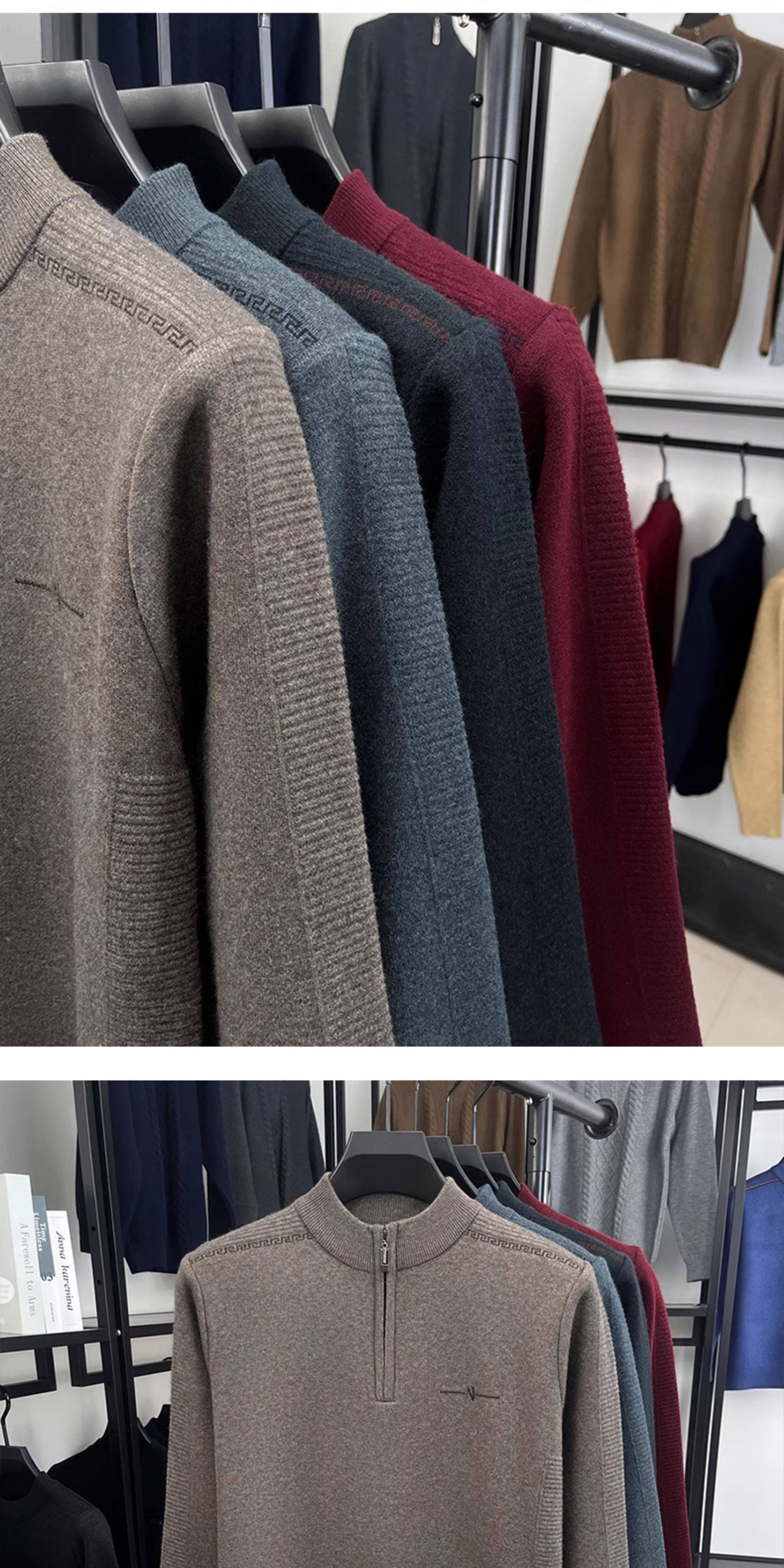 Kangaroo Winter Sweater for Men, Middle-Aged and Elderly, Thickened and Warm, Dad's Style, Half-High Collar, Zippered Knitwear, Base Layer Shirt