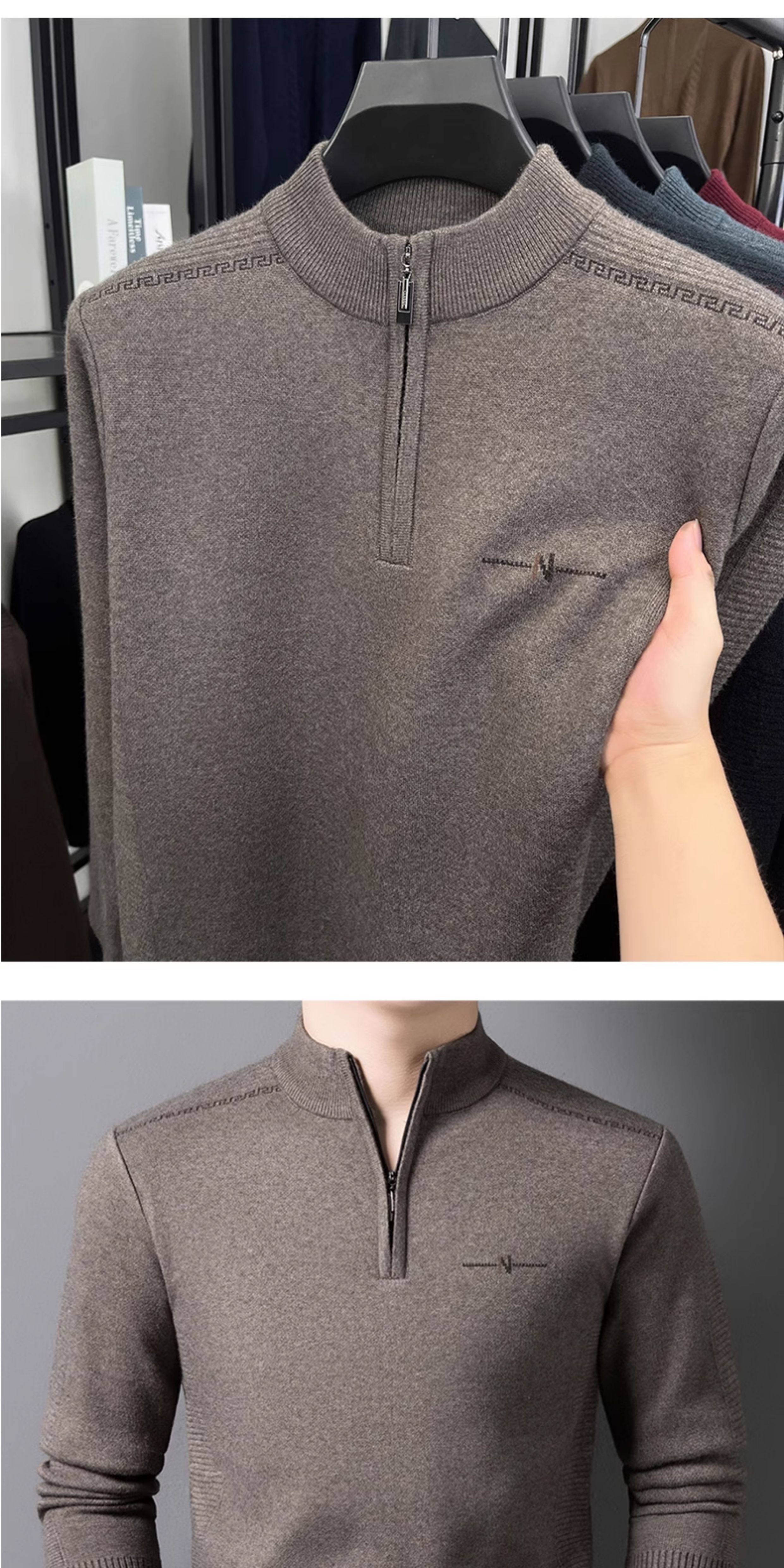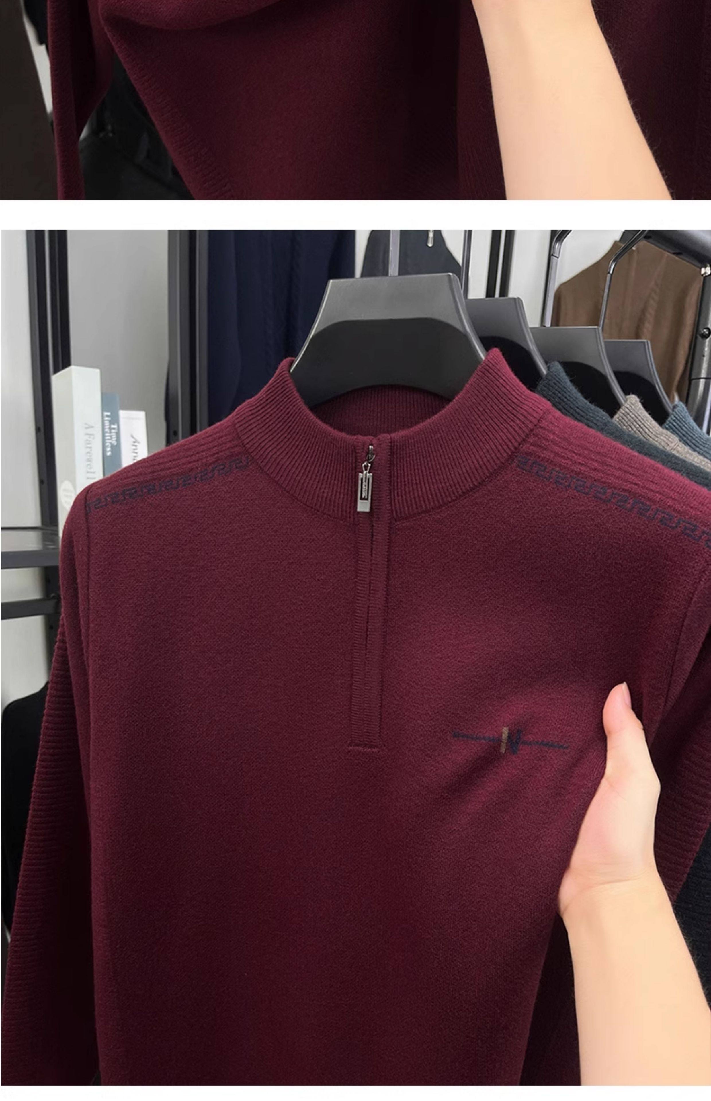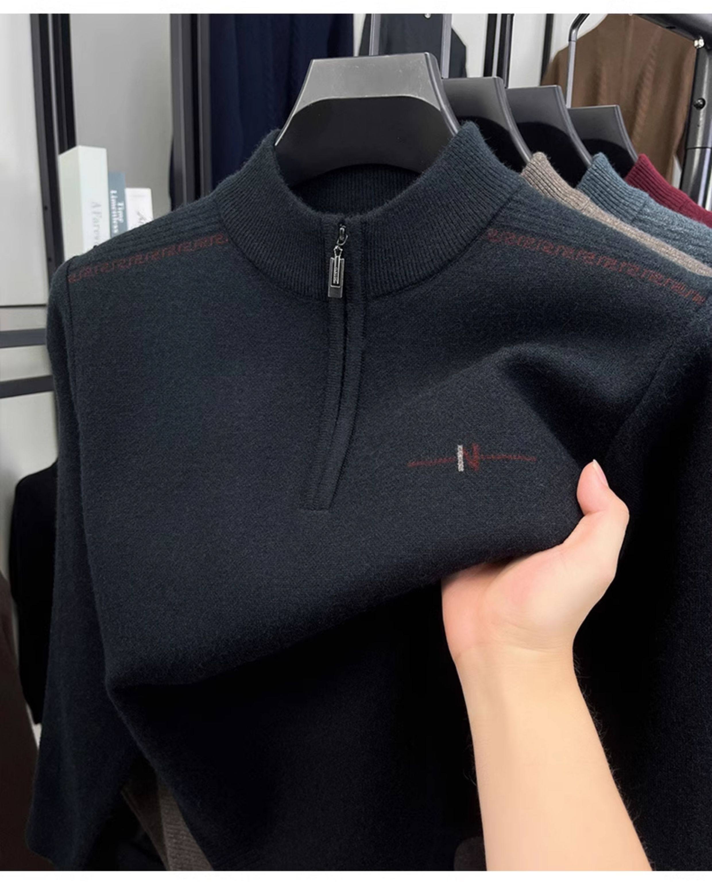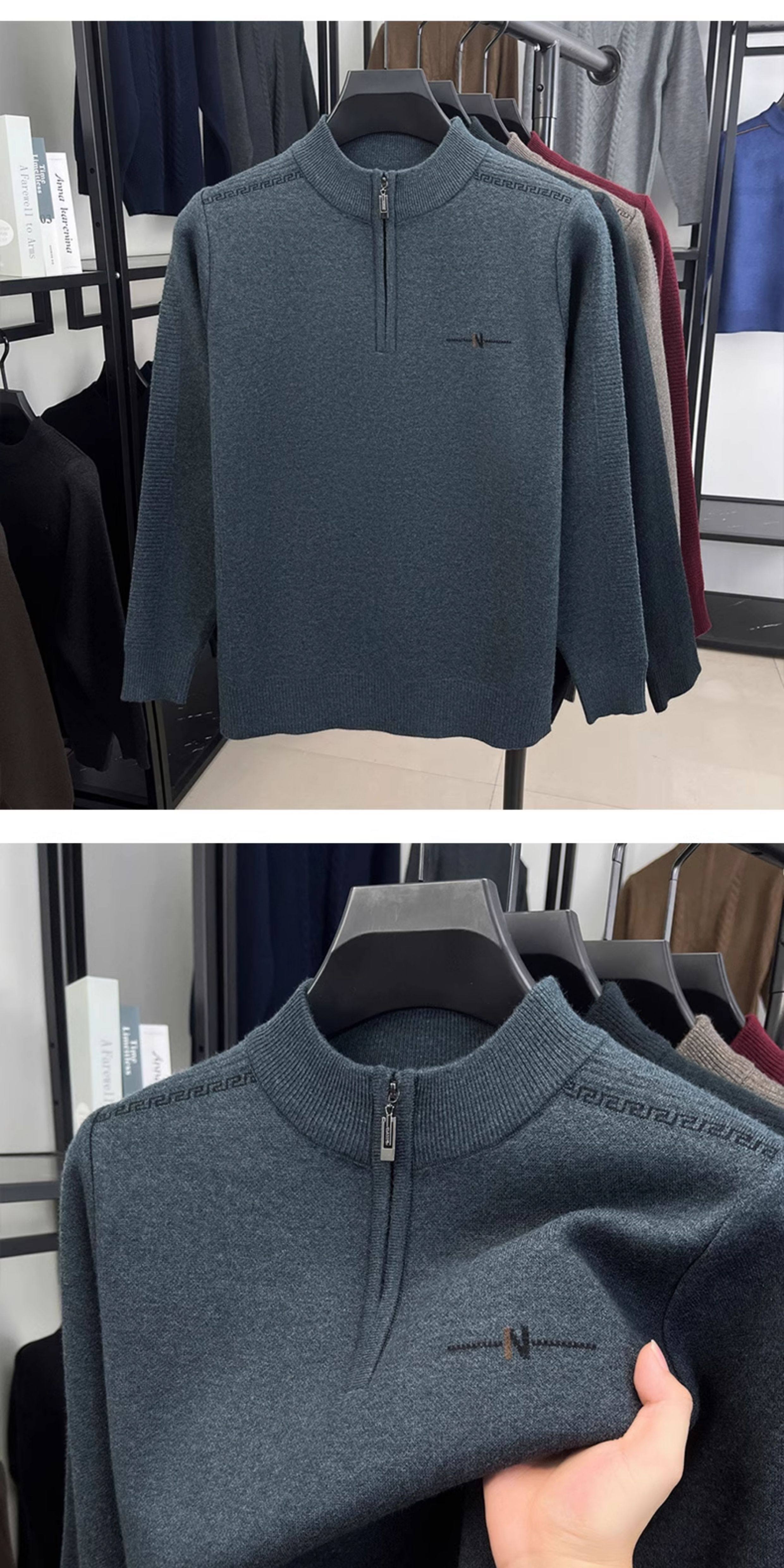 Kangaroo Winter Sweater for Men, Middle-Aged and Elderly, Thickened and Warm, Dad's Style, Half-High Collar, Zippered Knitwear, Base Layer Shirt