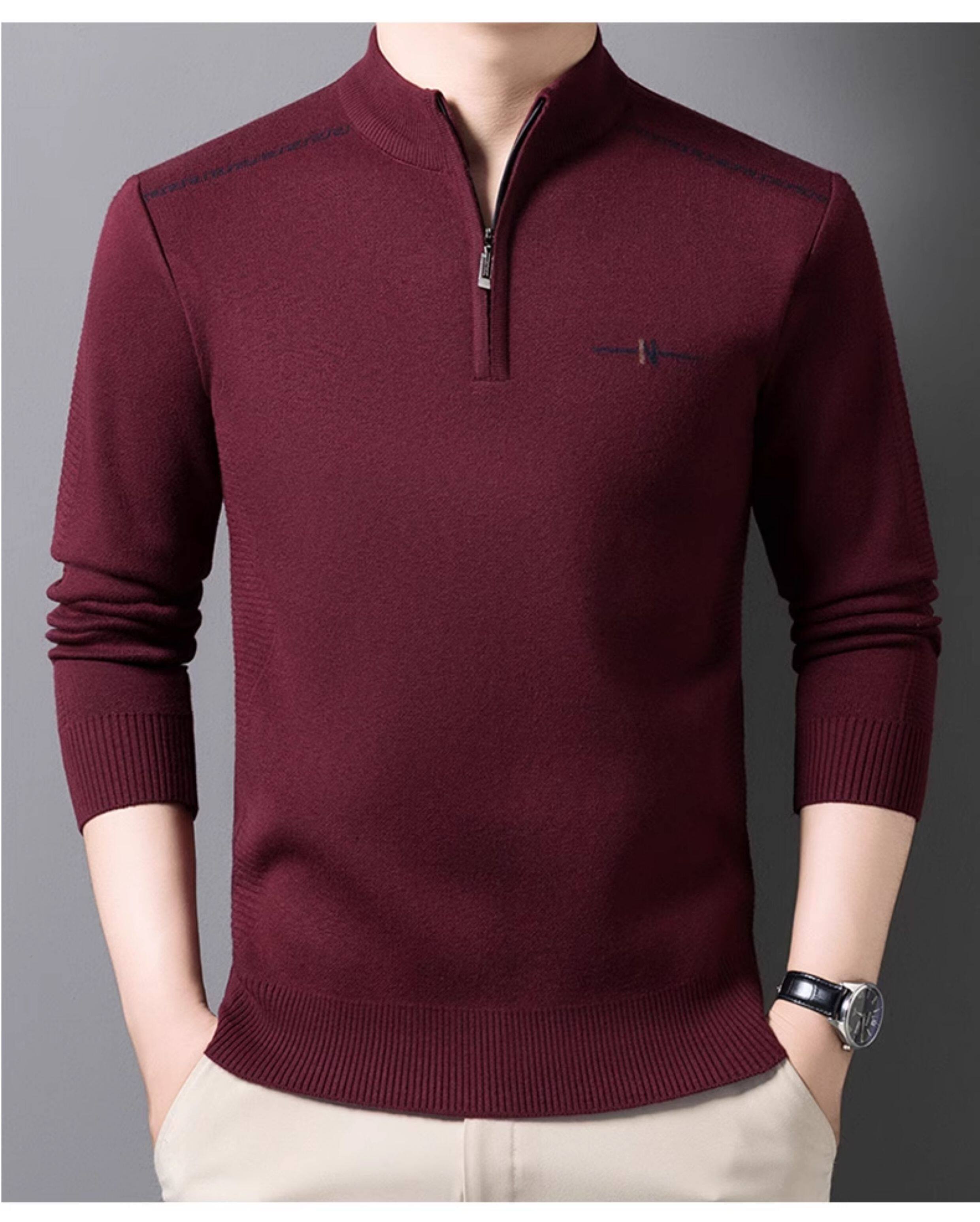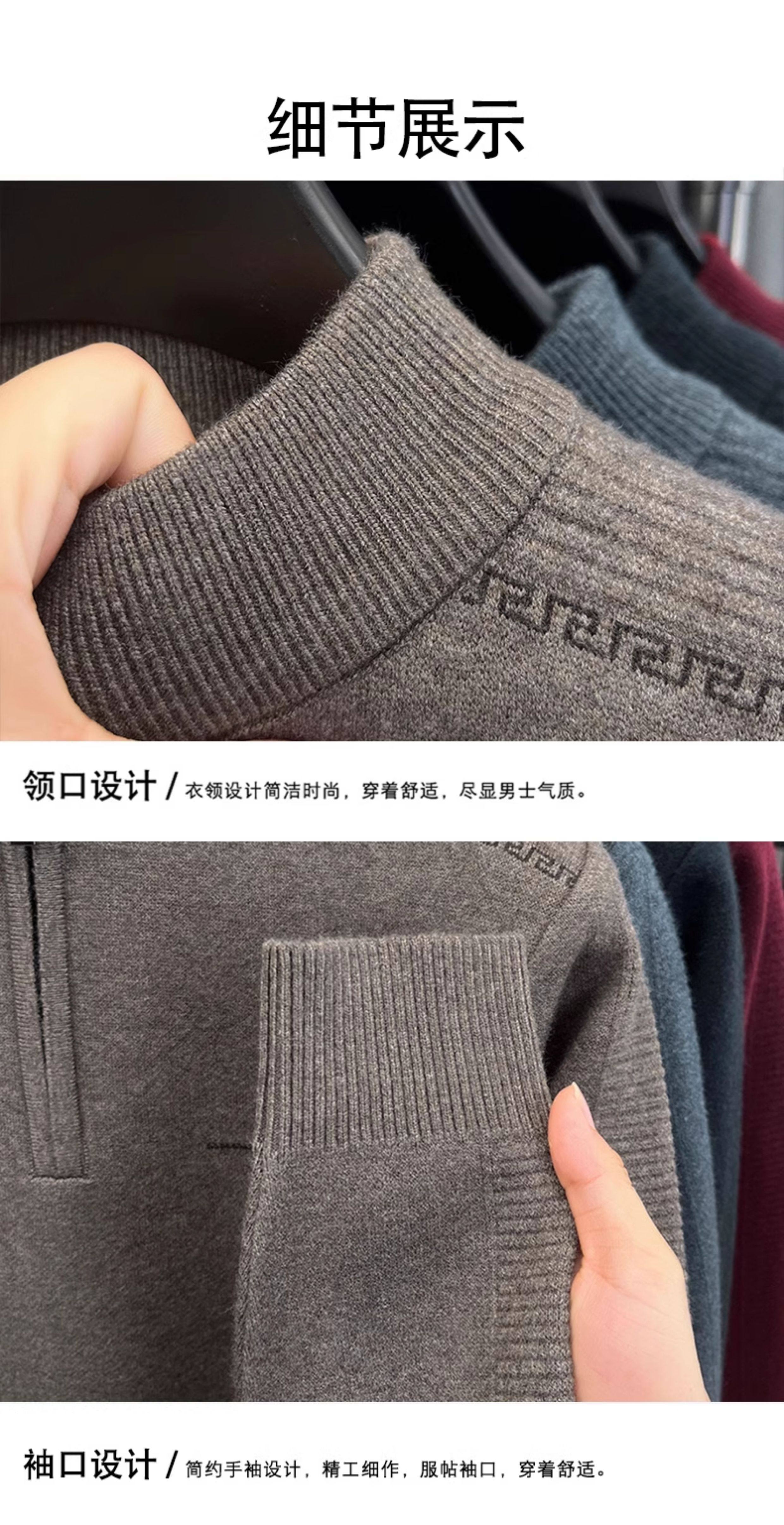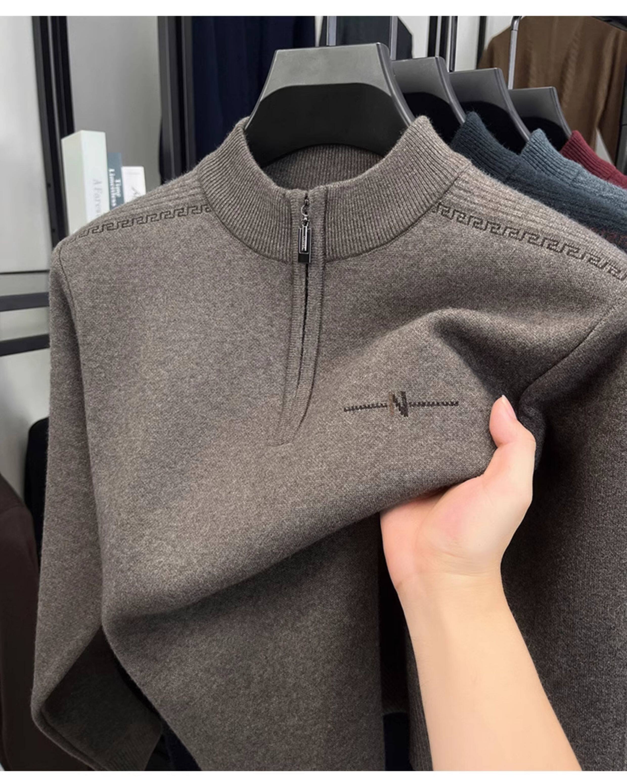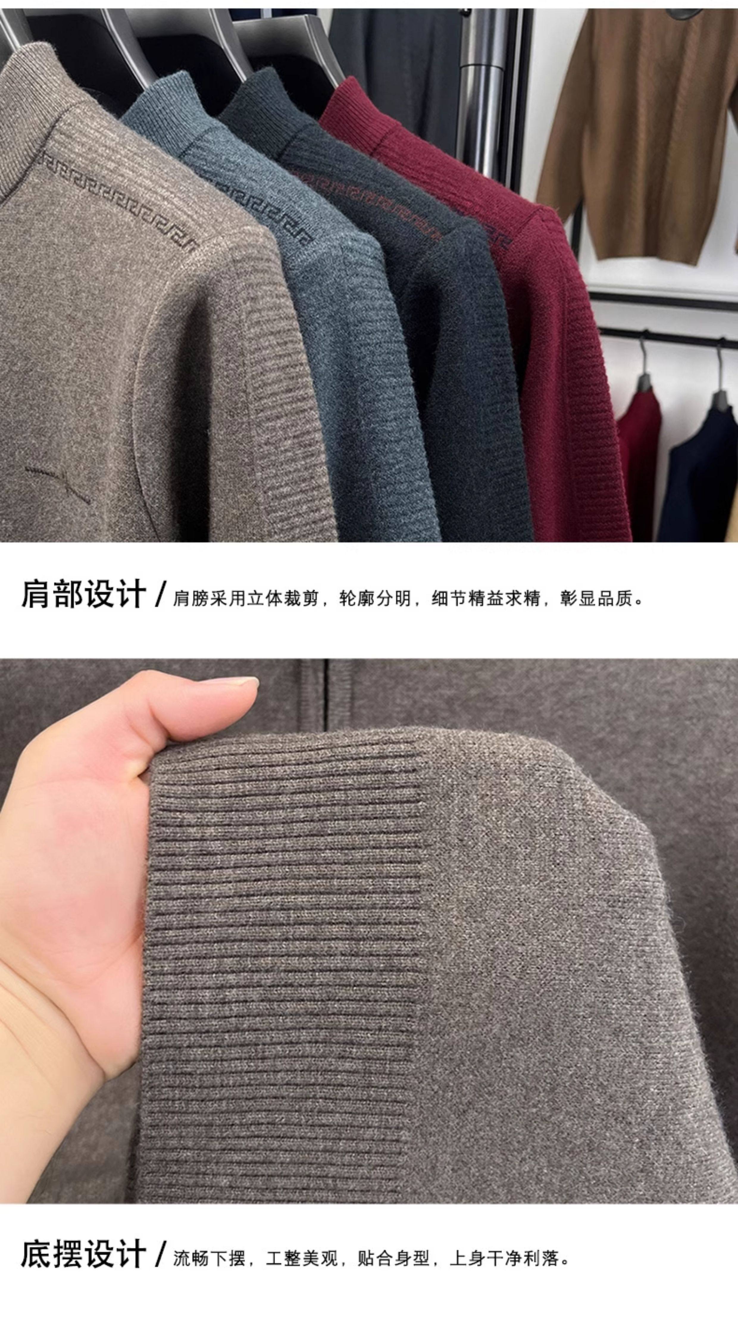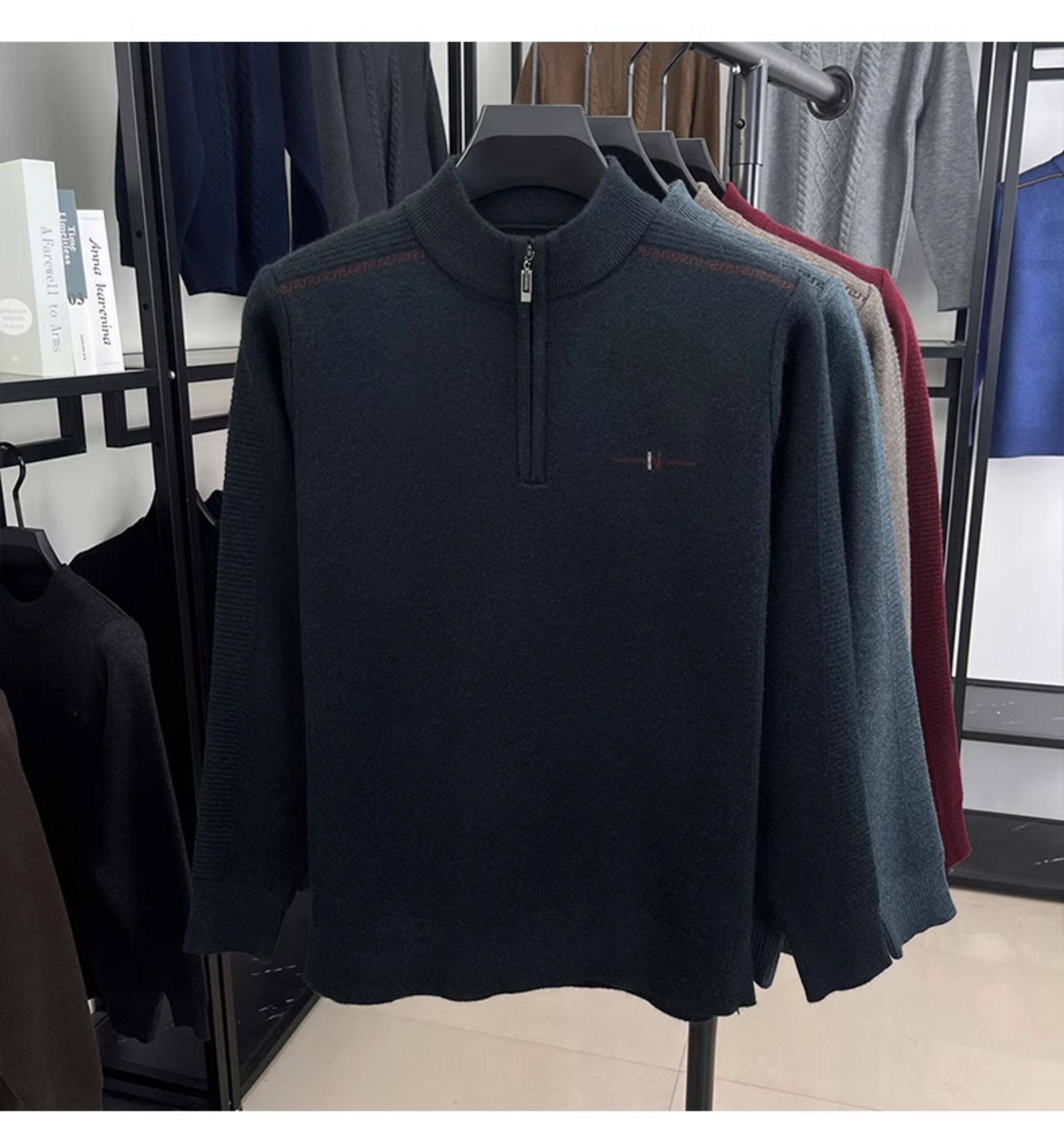 Kangaroo Winter Sweater for Men, Middle-Aged and Elderly, Thickened and Warm, Dad's Style, Half-High Collar, Zippered Knitwear, Base Layer Shirt