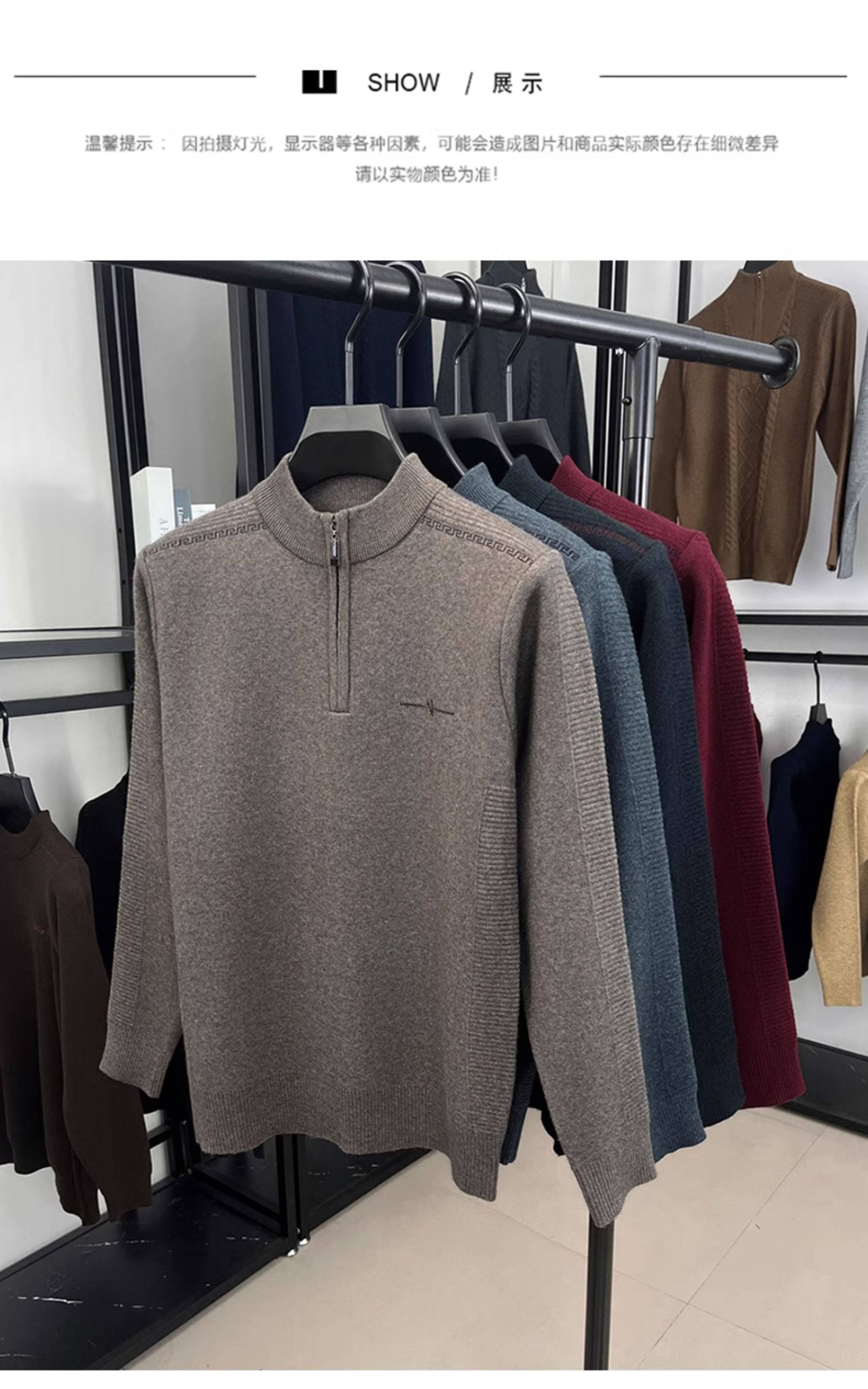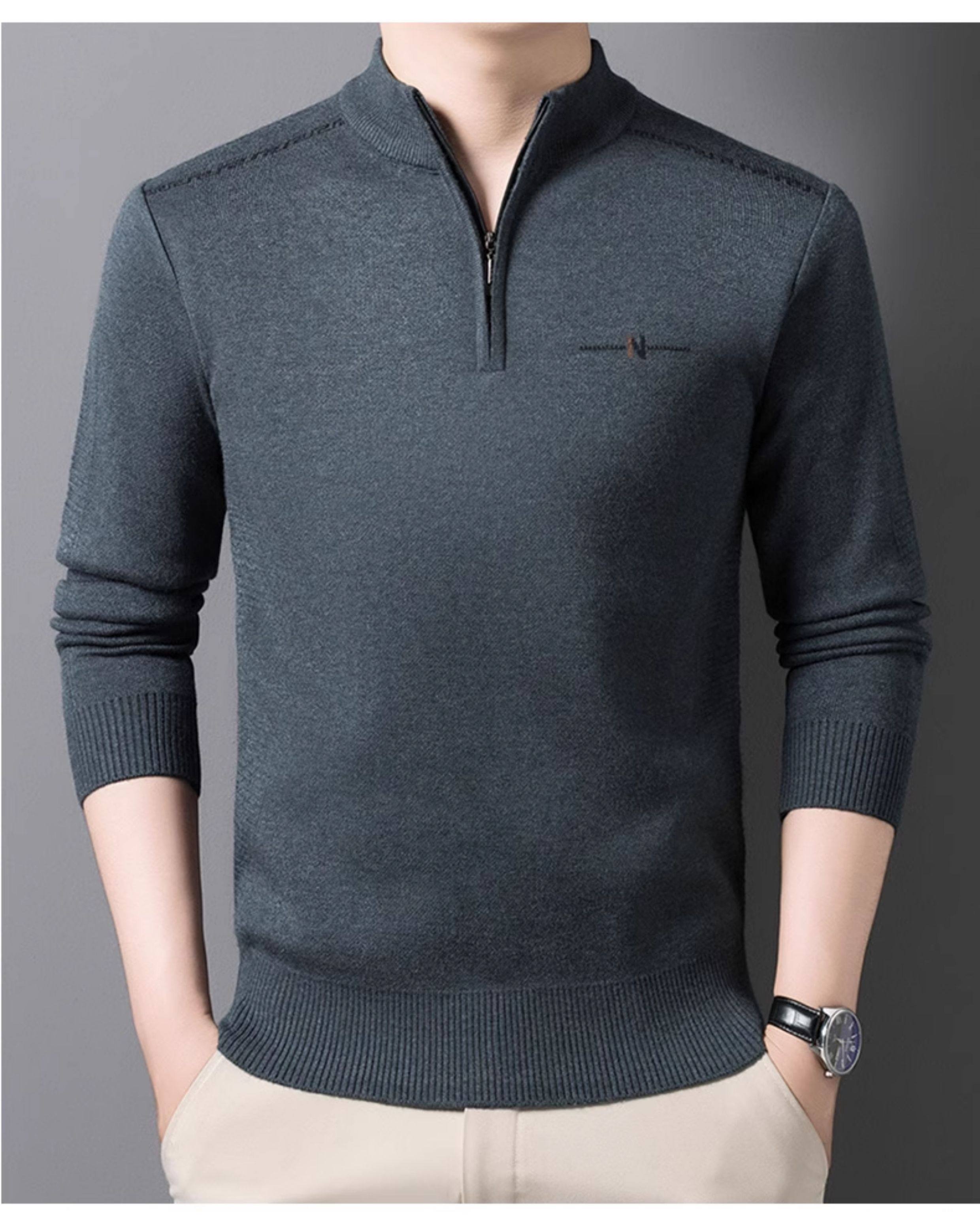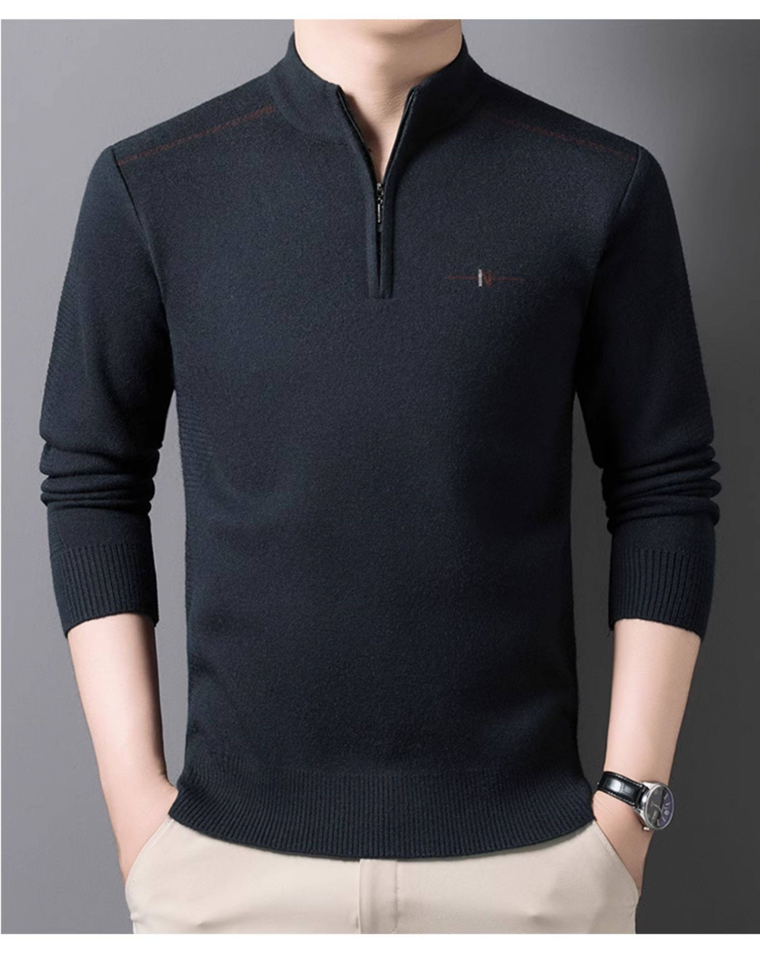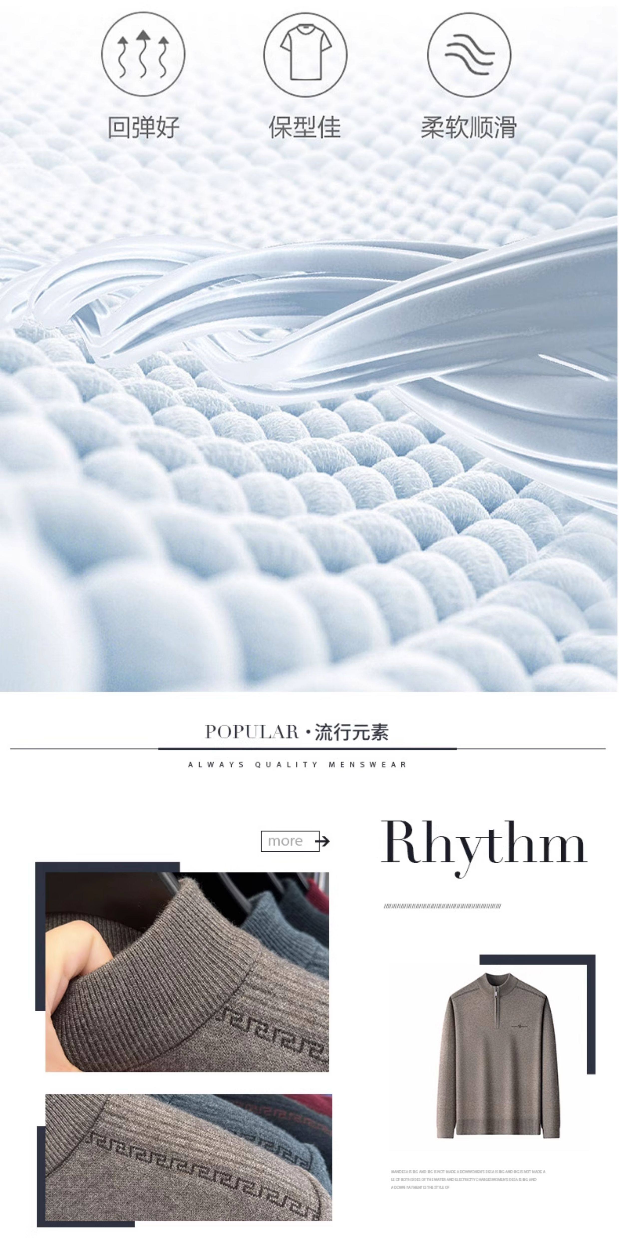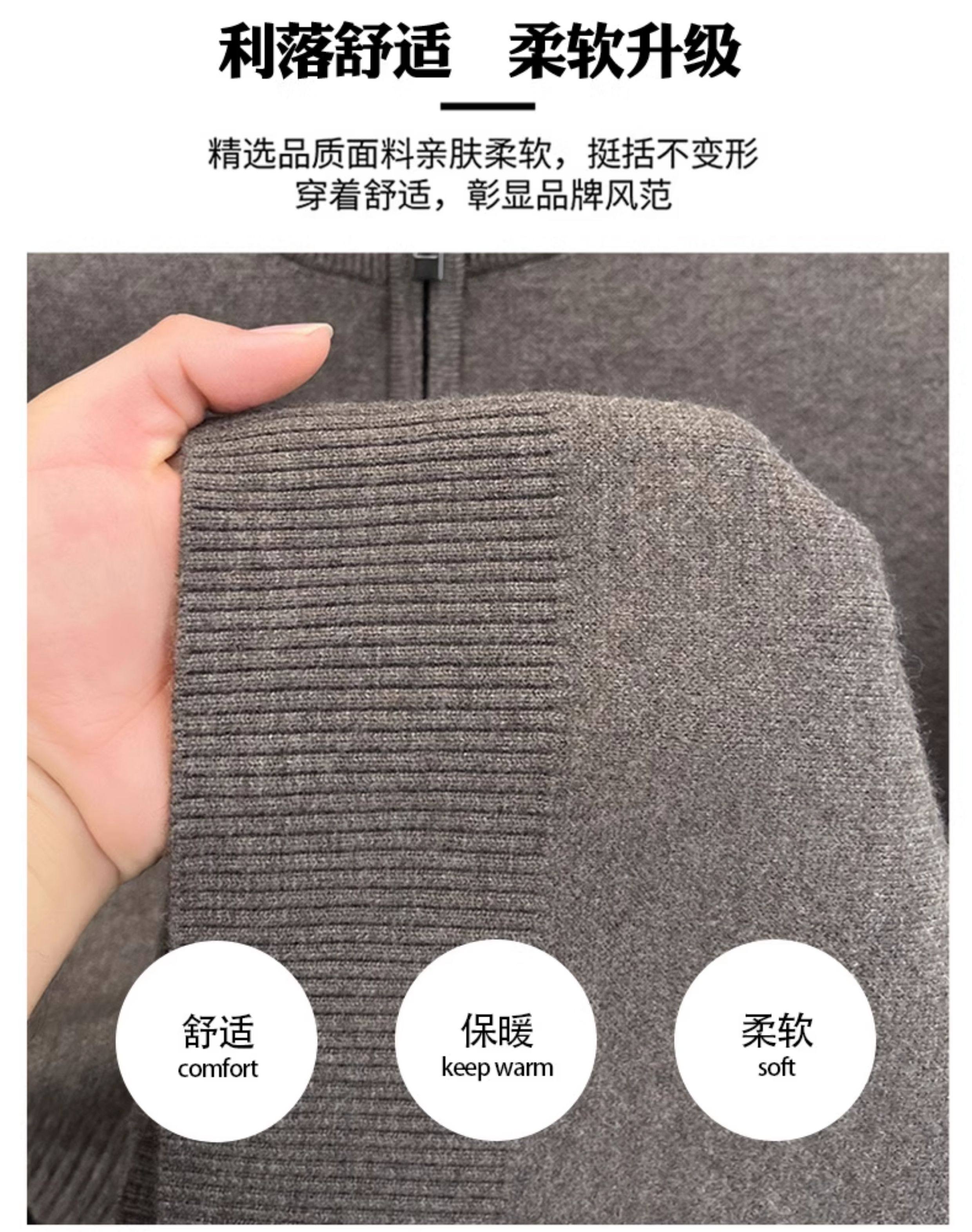Kangaroo Winter Sweater for Men, Middle-Aged and Elderly, Thickened and Warm, Dad's Style, Half-High Collar, Zippered Knitwear, Base Layer Shirt
