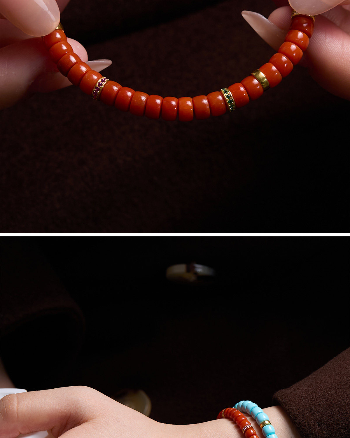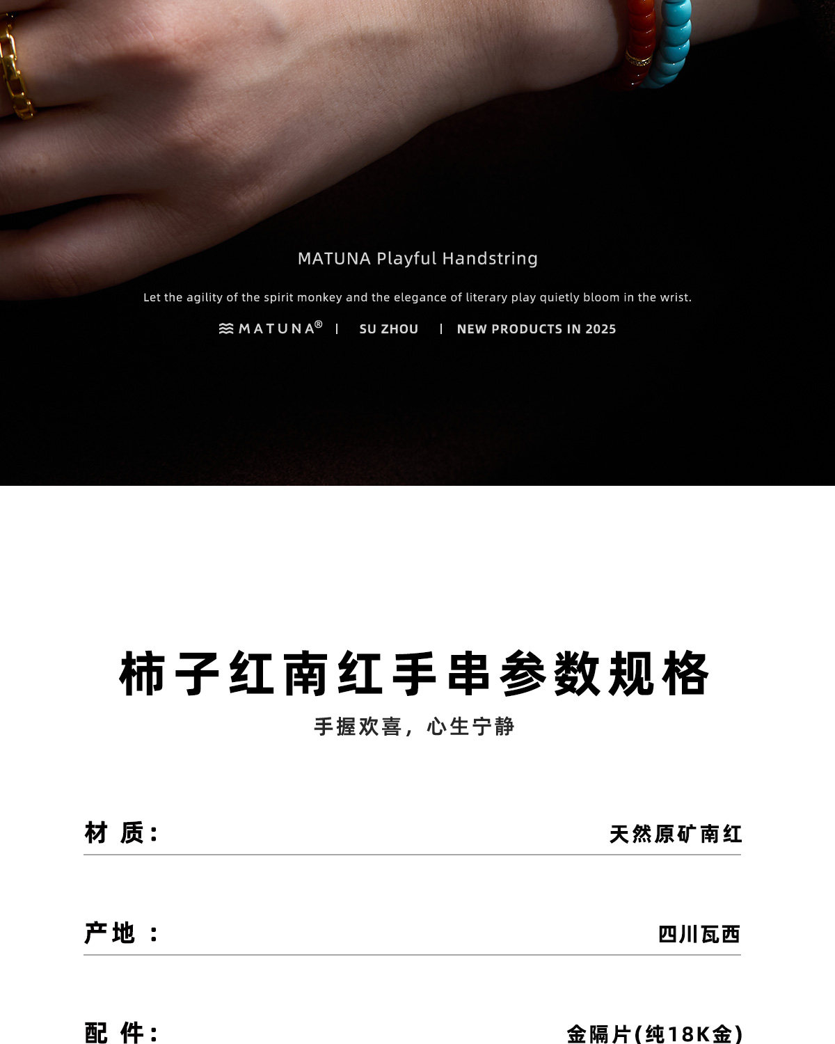 G205 Full Gemstone Matuna Raw Mineral Southern Red Bracelet 18K Gold Zodiac Year Bracelet New Year Gift for Men and Women