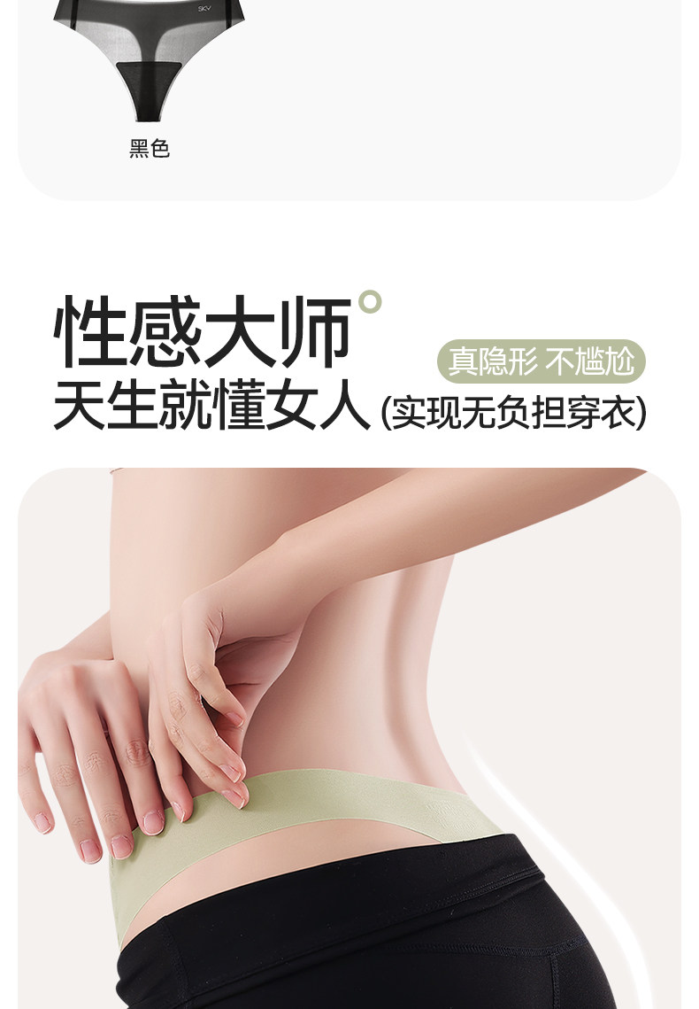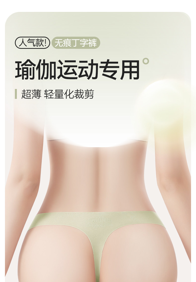 Women's T-Back Underwear, Antibacterial, Seamless, Ice Silk, Yoga, Sports, Fitness, Non-Pinching, Low-Waist, Sexy Briefs