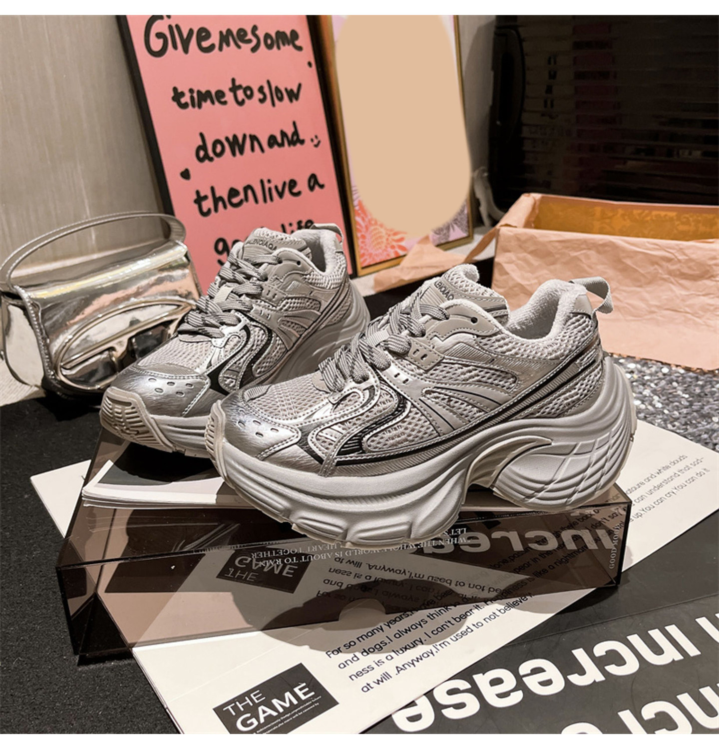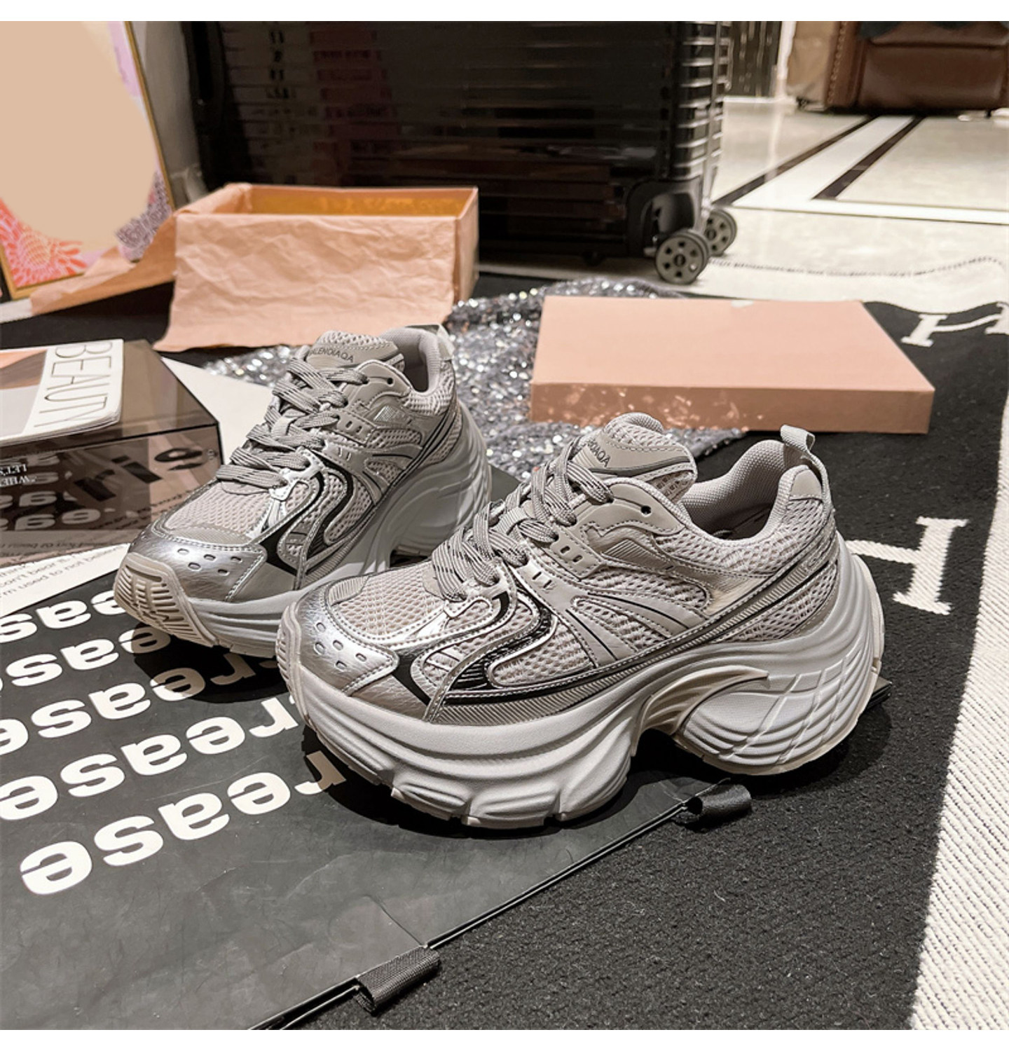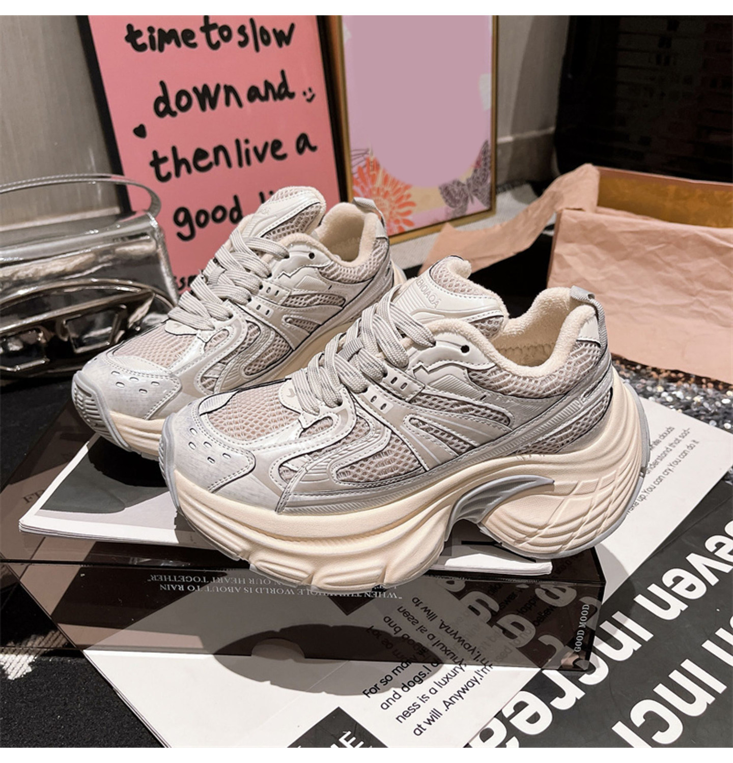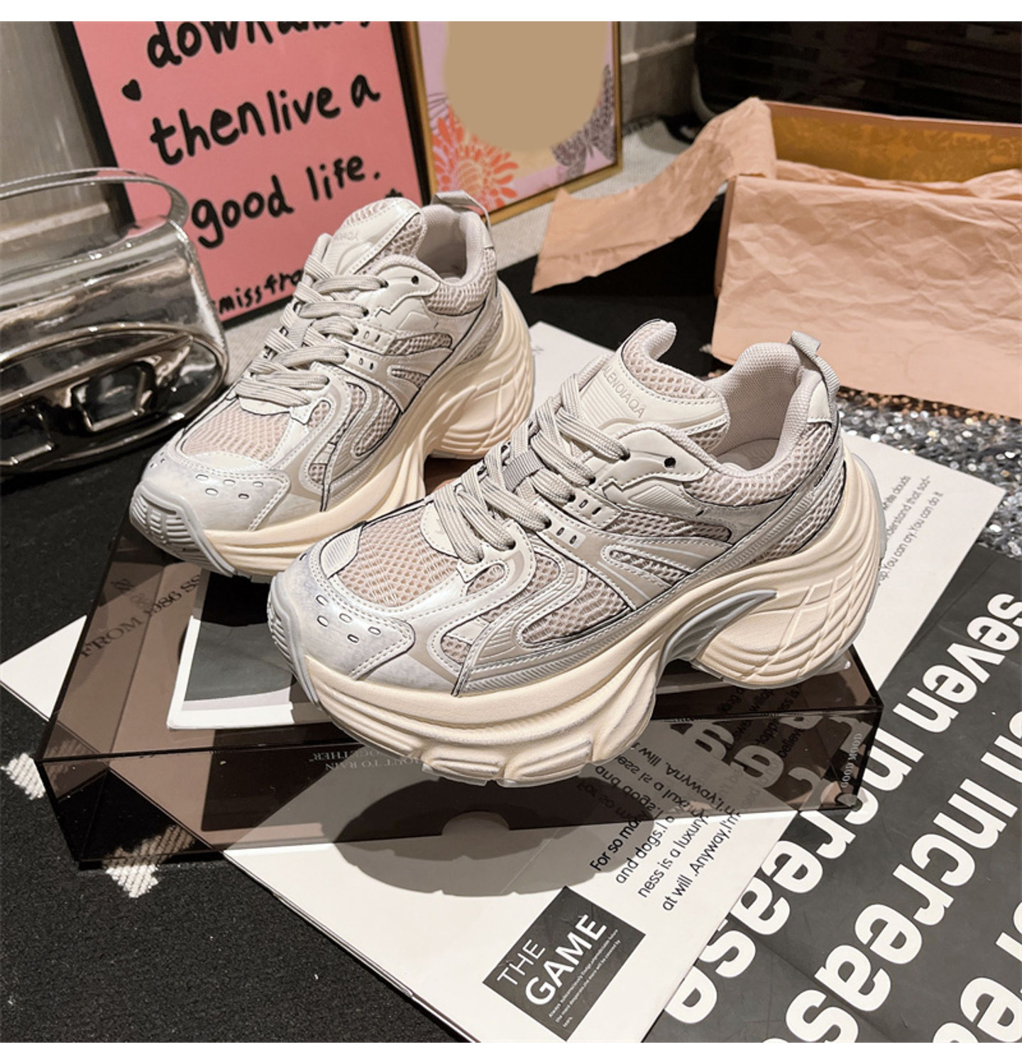 Hong Kong Paris Dad Shoes for Women 2025 Autumn and Winter New Thick-Soled Platform Sneakers That Make Feet Look Smaller, Popular Casual Shoes Trendy