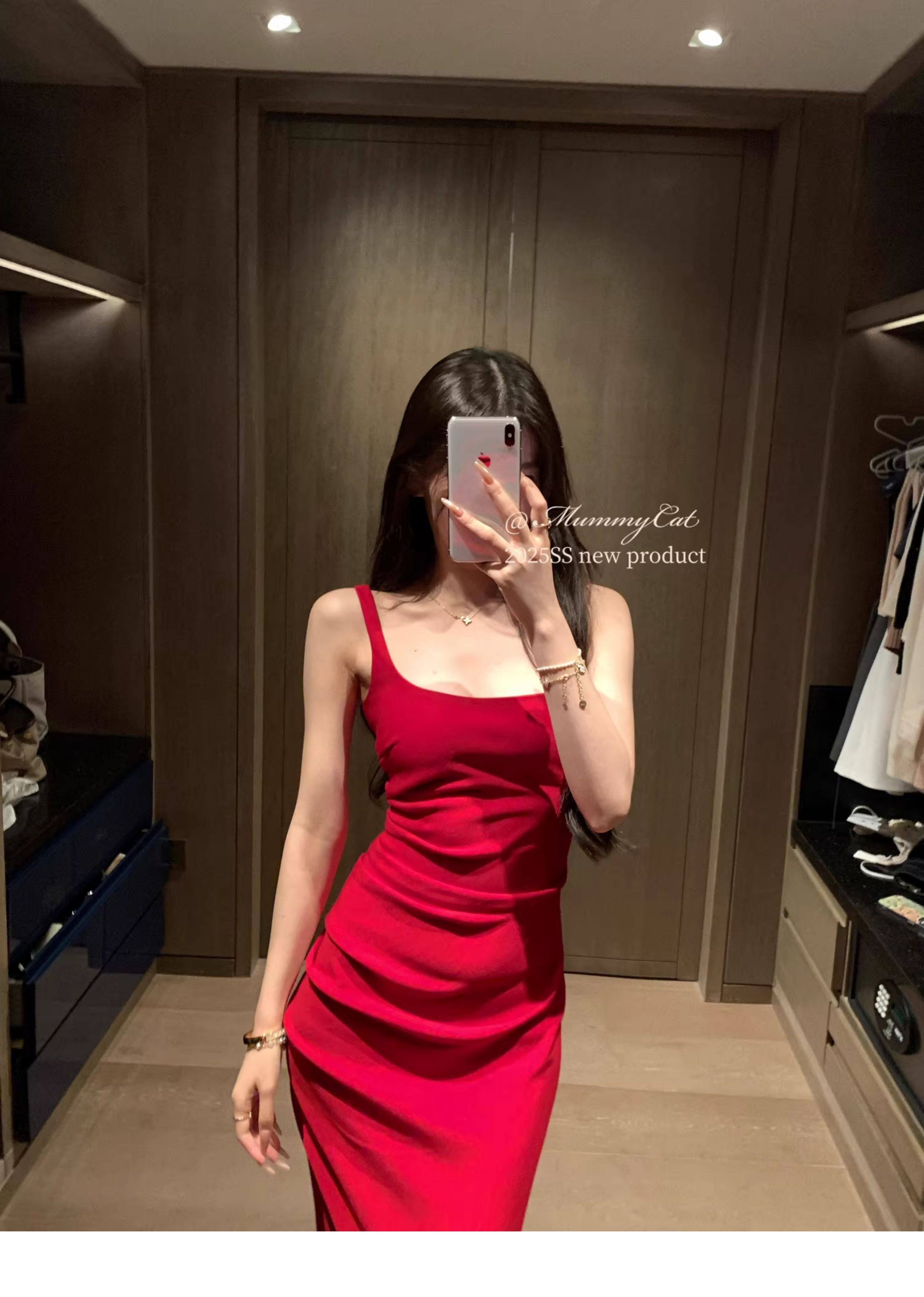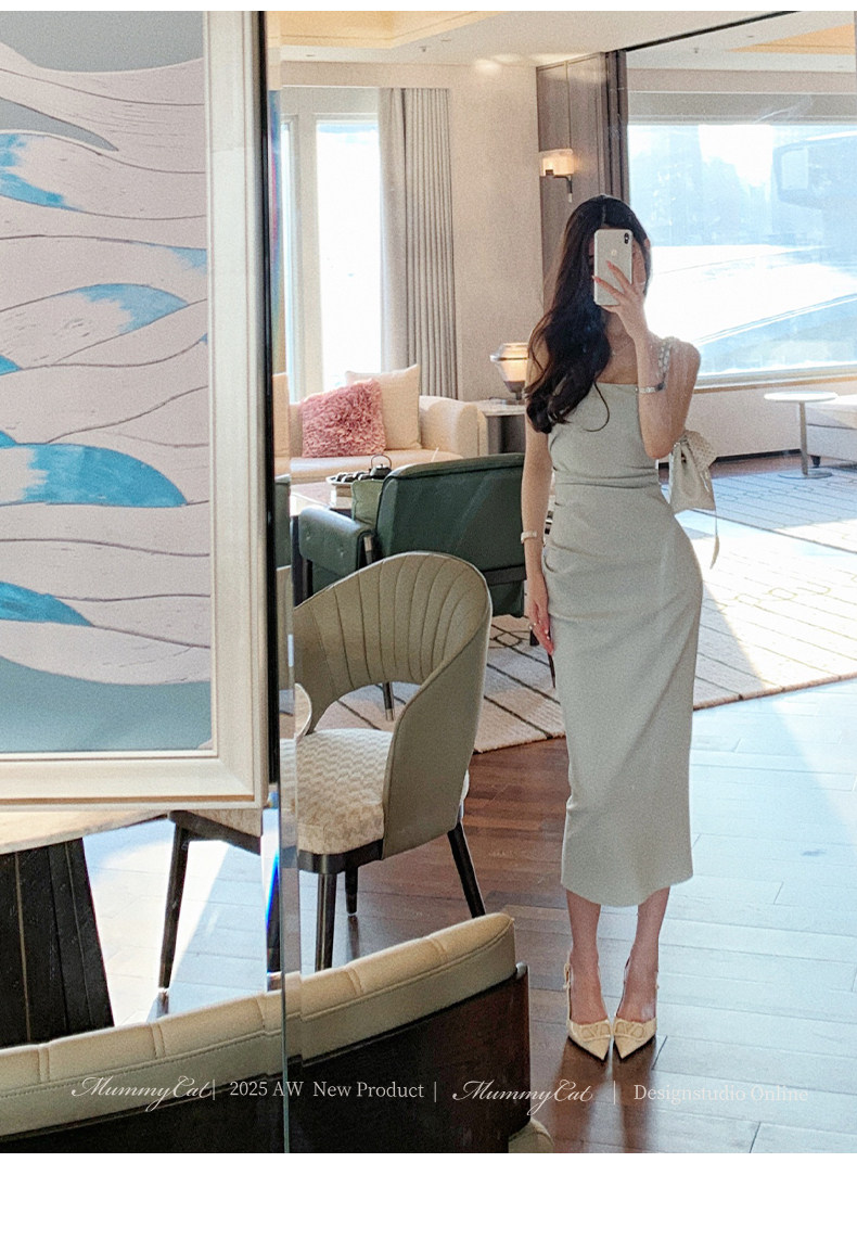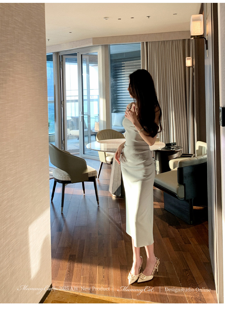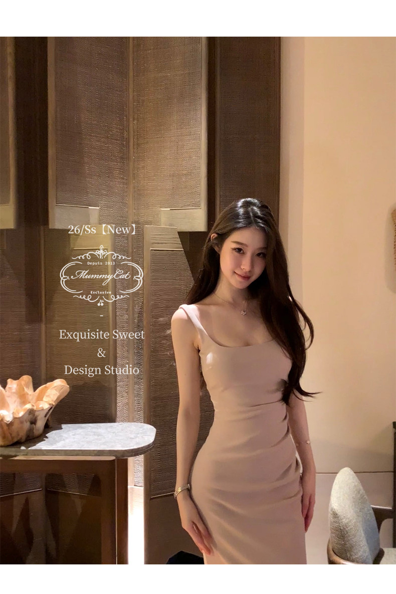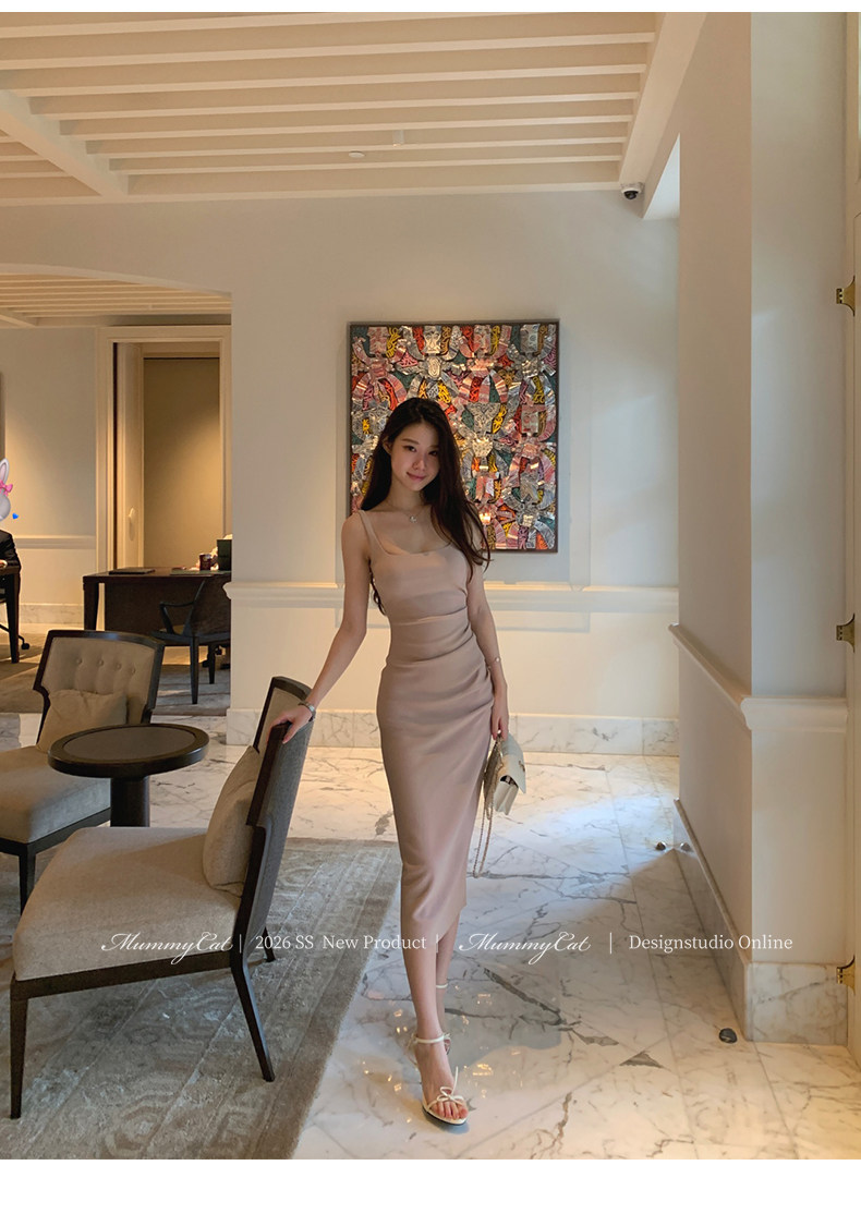 Mummy Cat Lays Eggs Meow【Miss Monaco】New Pleated Bodycon Stretchy Strap Dress