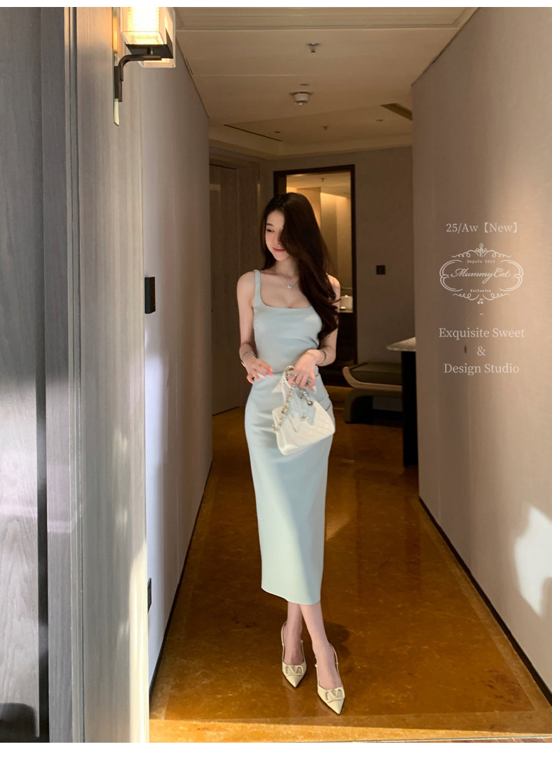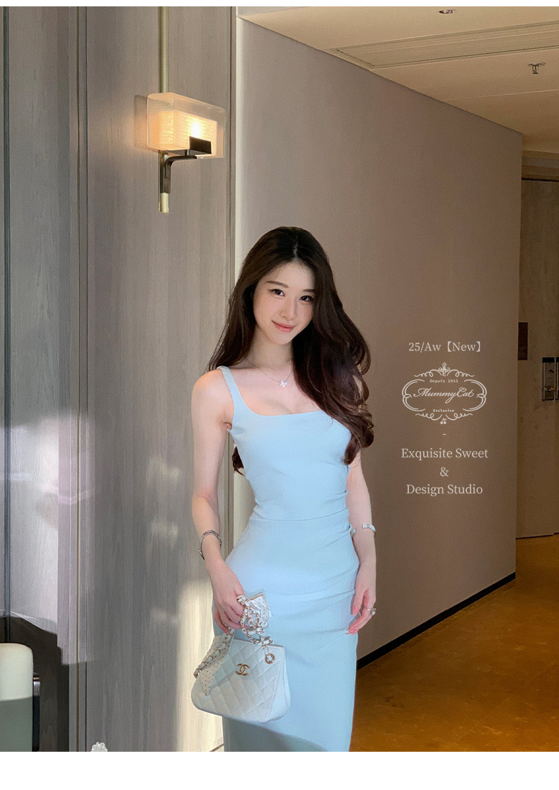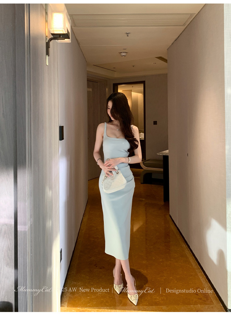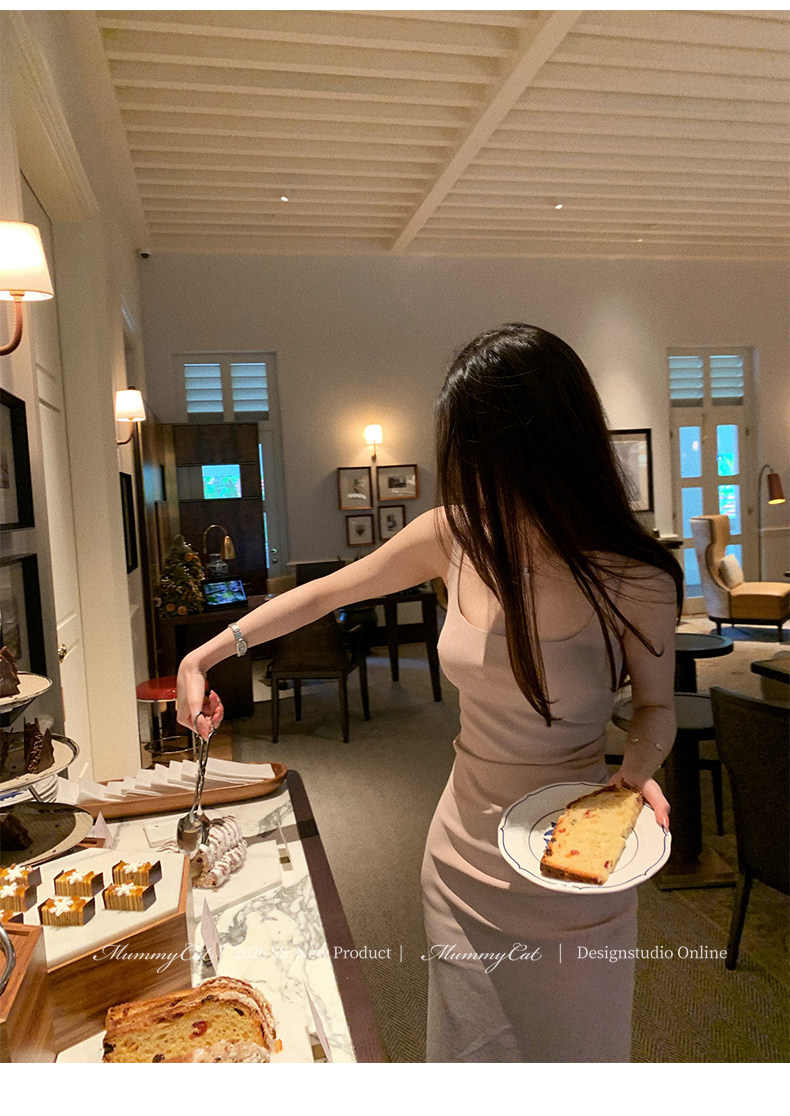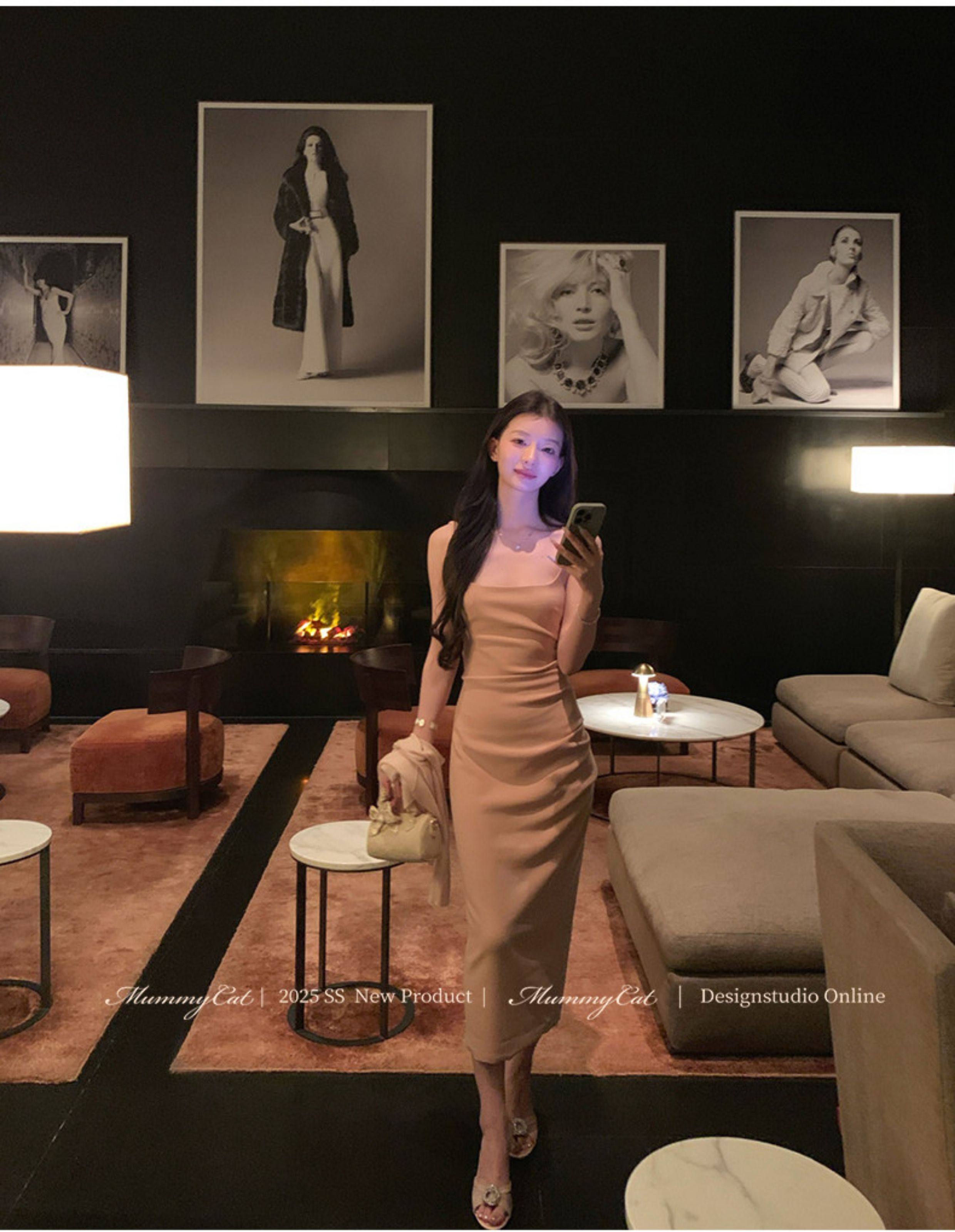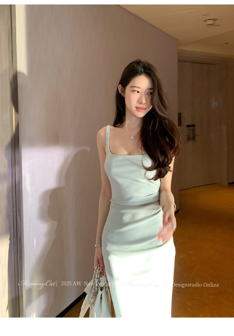 Mummy Cat Lays Eggs Meow【Miss Monaco】New Pleated Bodycon Stretchy Strap Dress