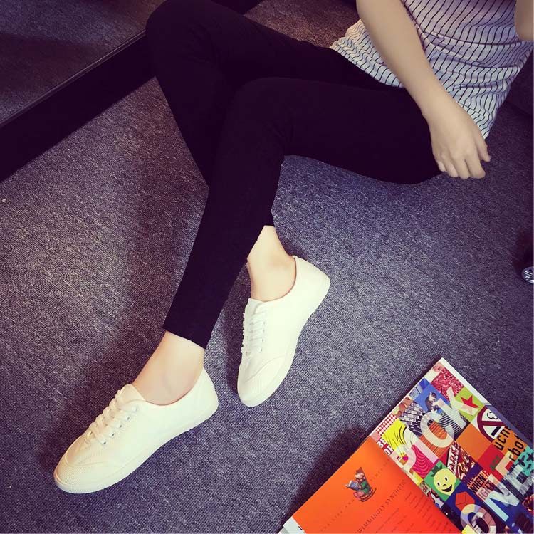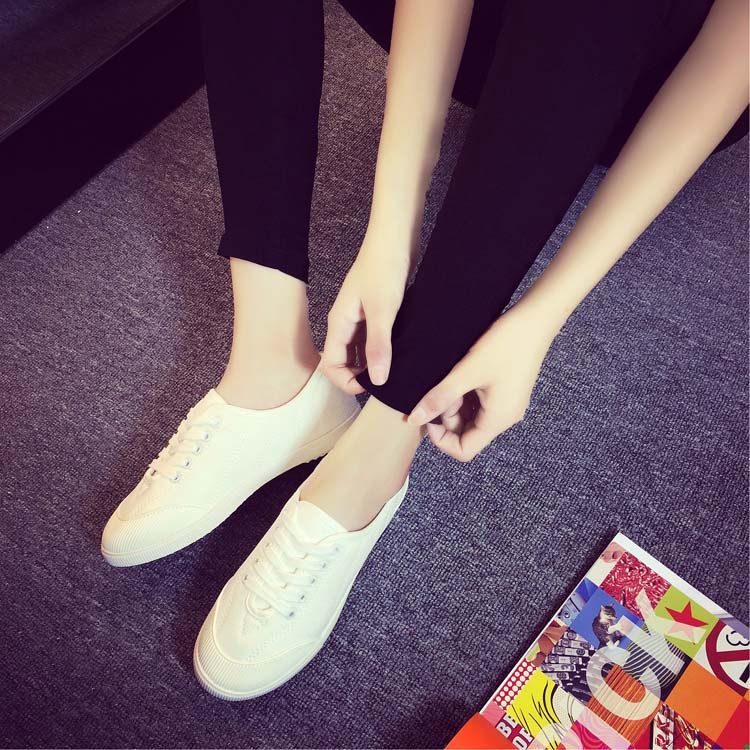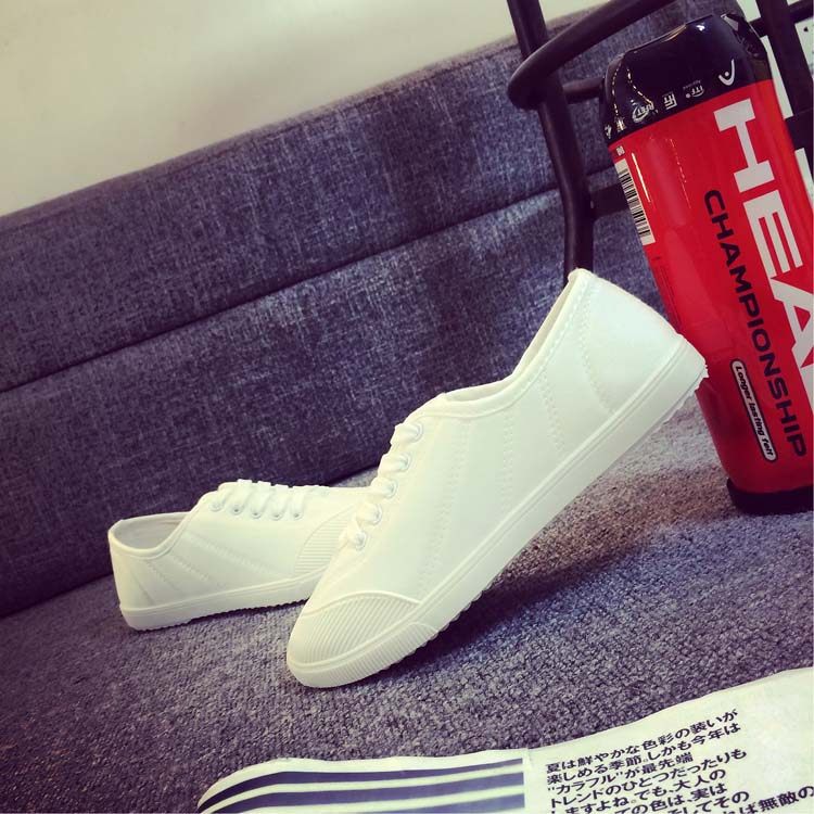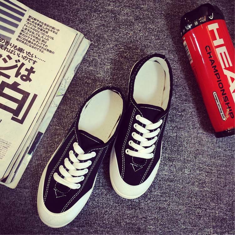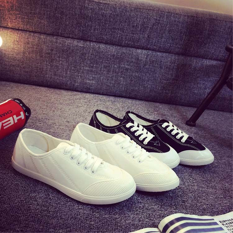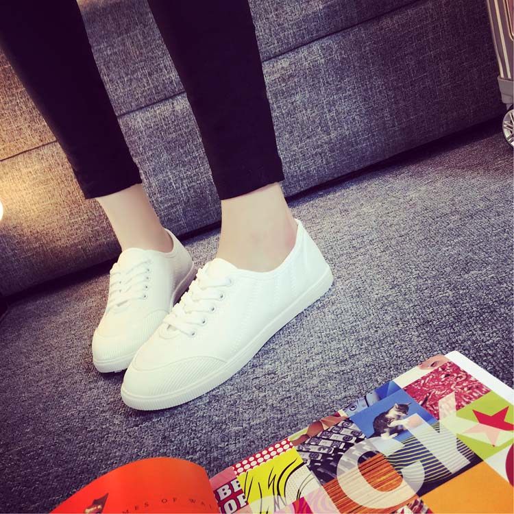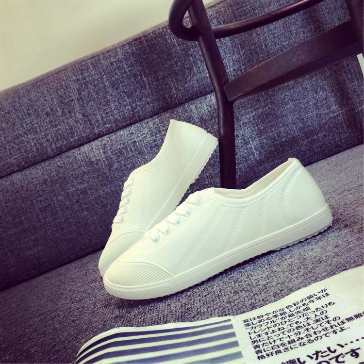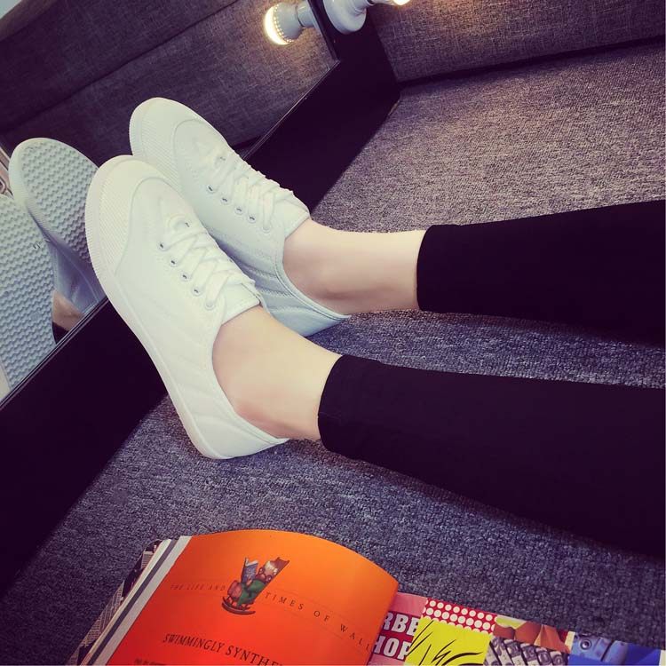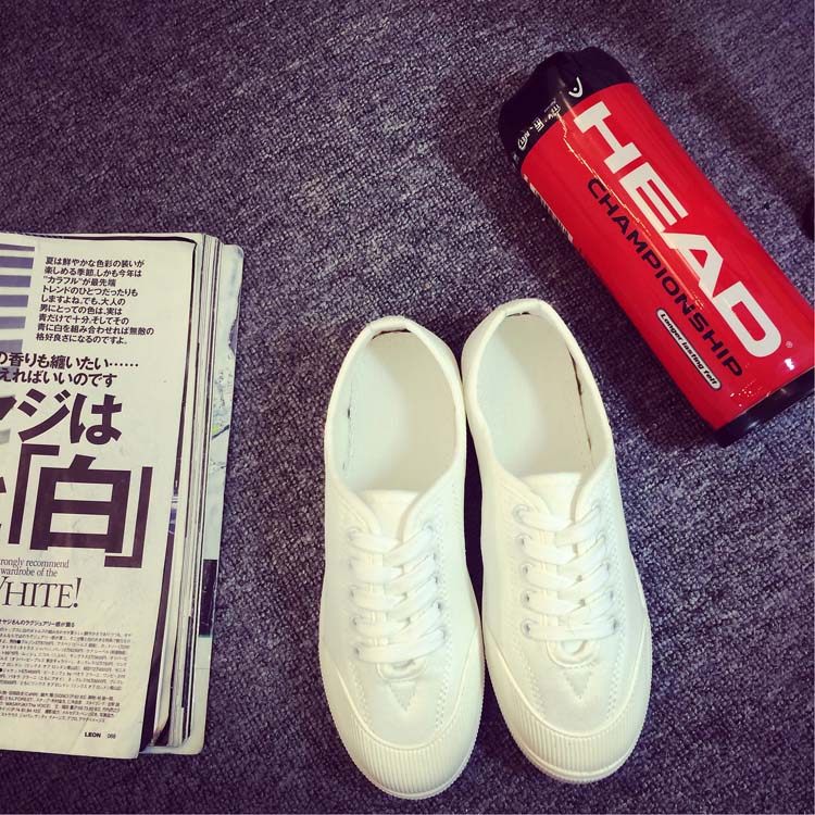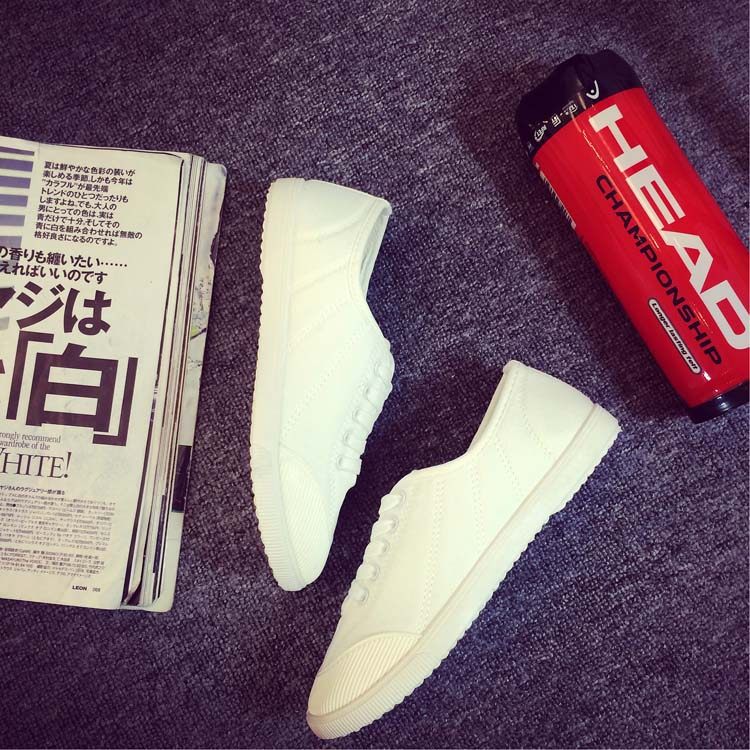 Korean Ulzzang White Sneakers for Women, Spring Fresh and Versatile Lace-Up Canvas Shoes, College Style Flat Canvas Shoes for Women