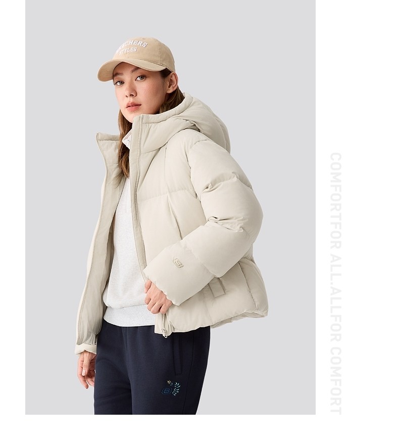 Skechers Sports down Jacket Winter Woven Short Hooded Jacket Lightweight Warm Classic