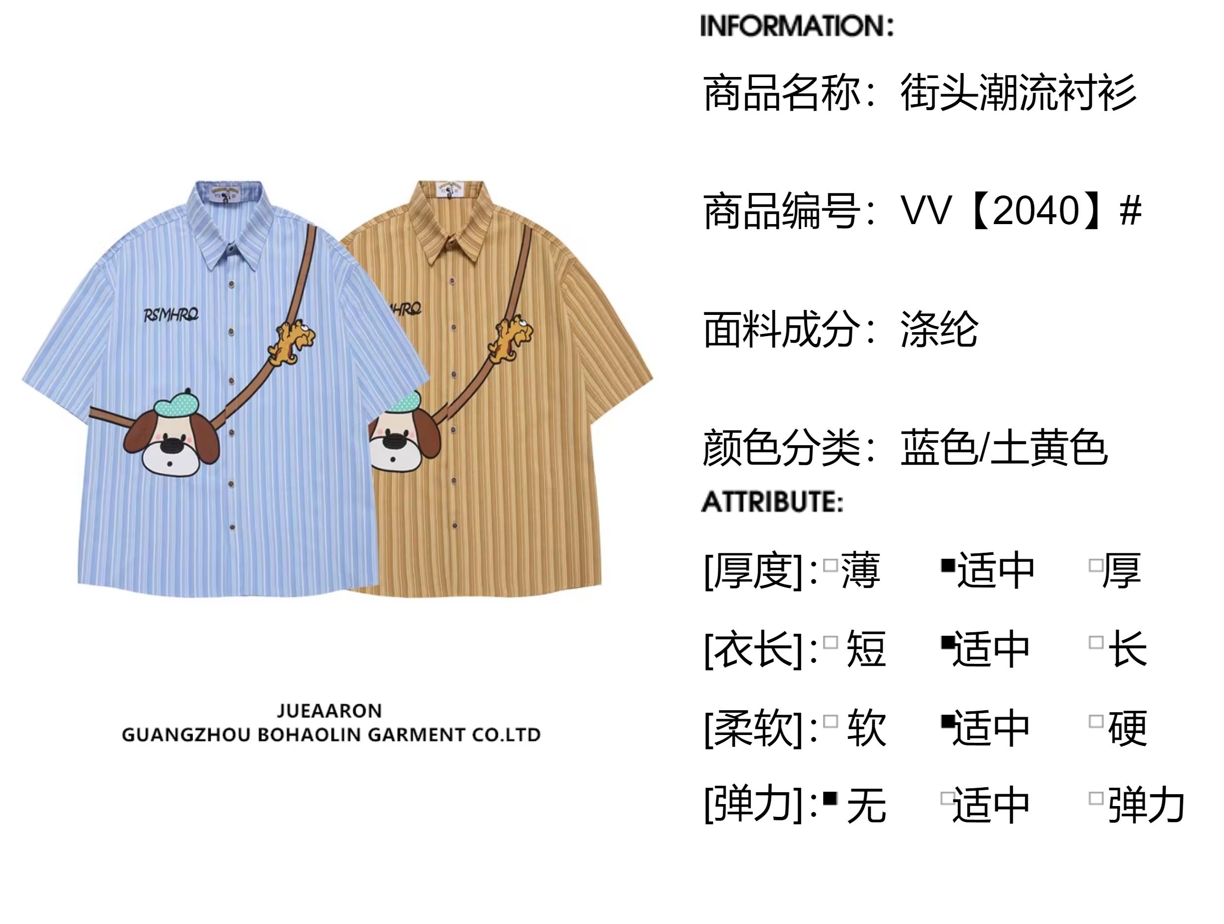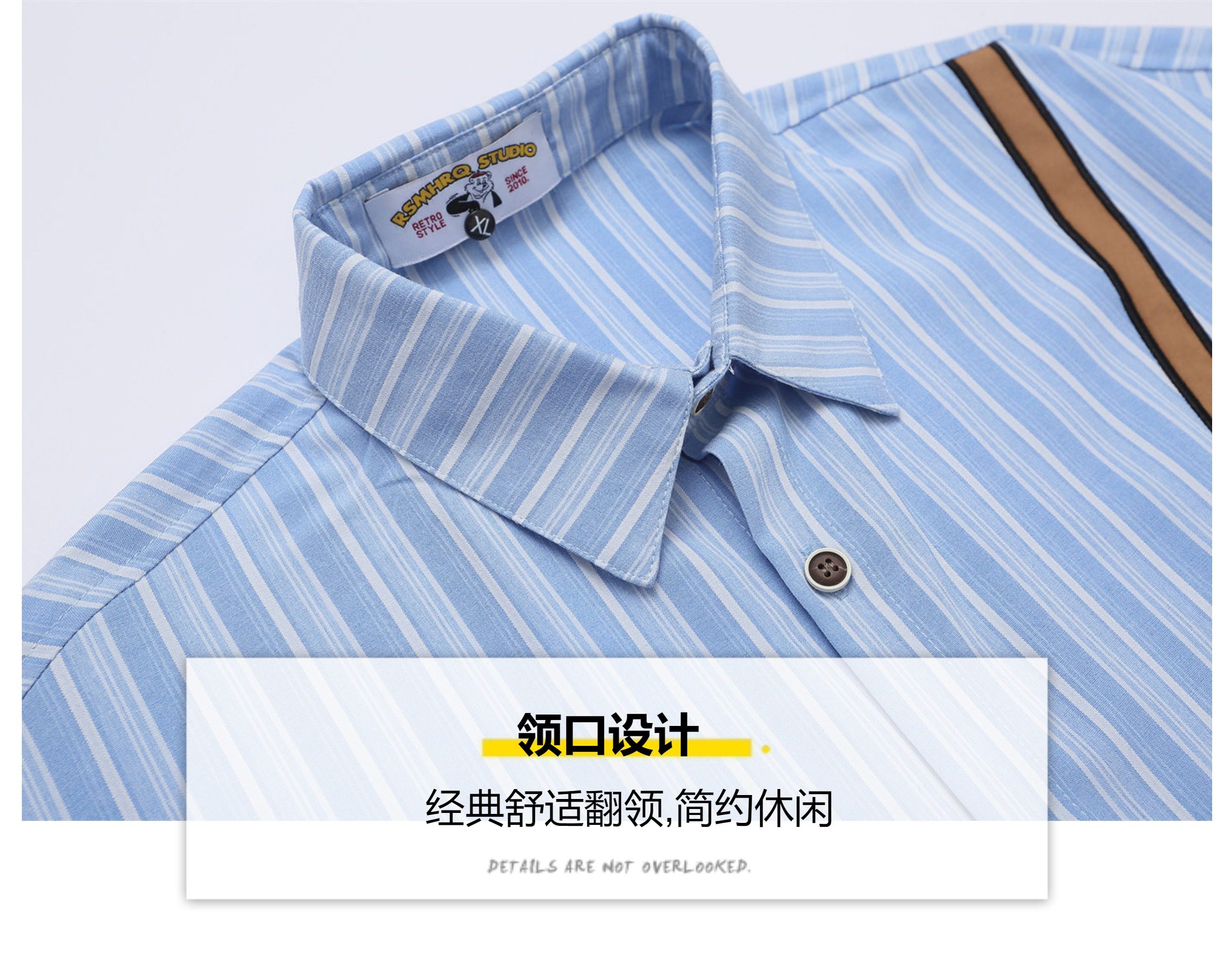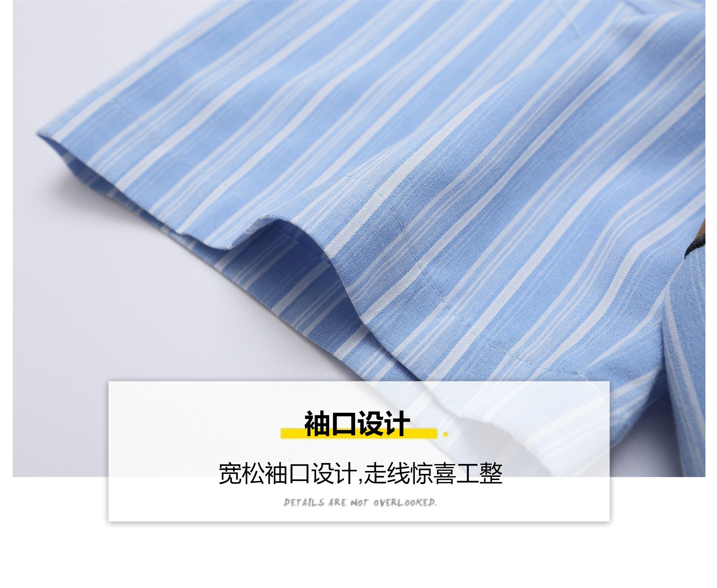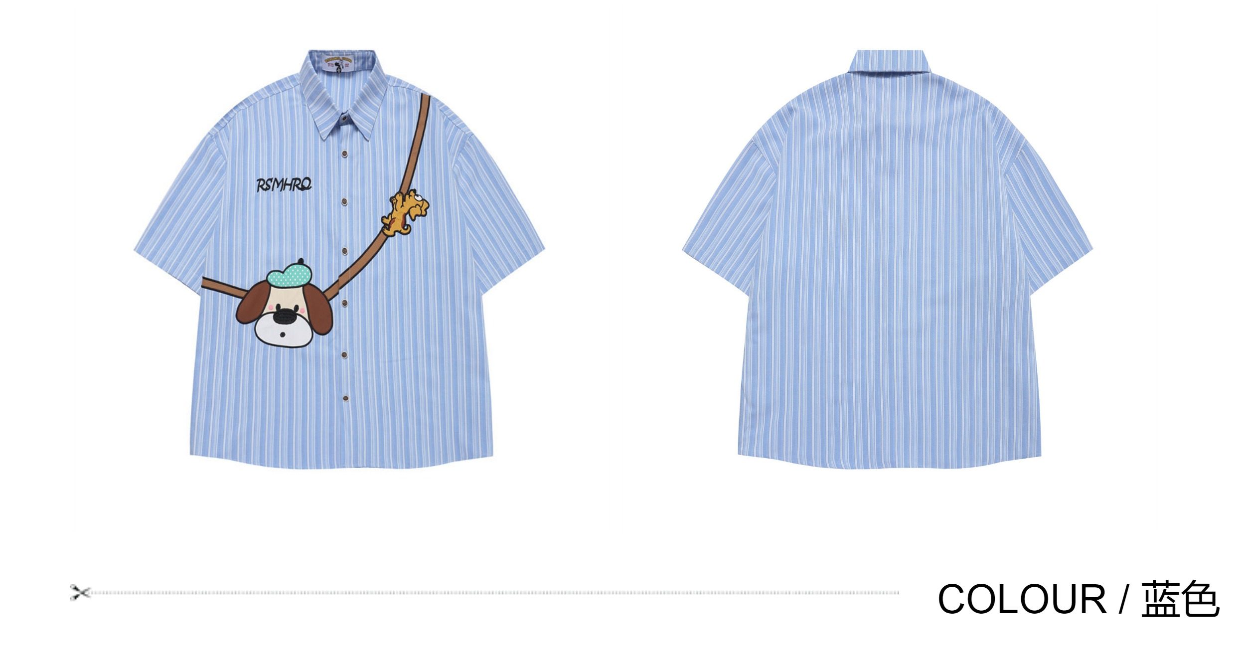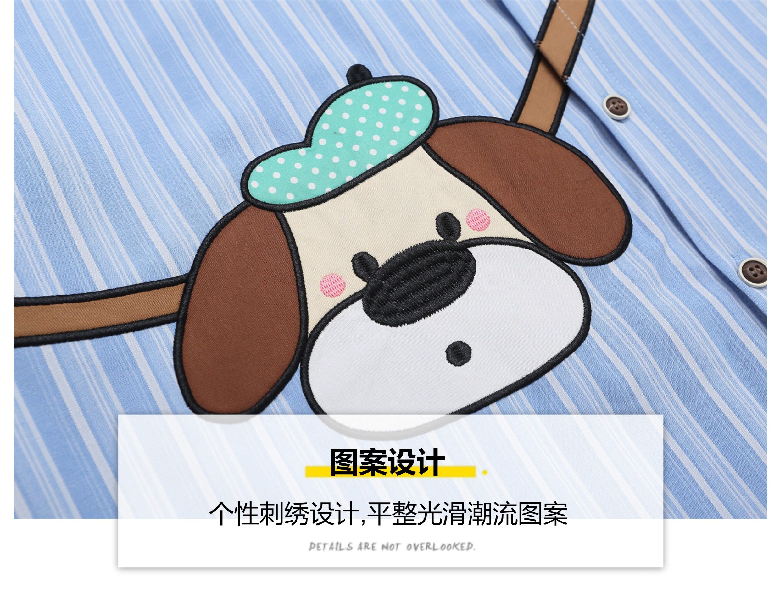 Jueaaron Japanese Trendy Brand Dog Embroidery Vertical Stripe Short-Sleeve Shirt Loose Casual Couple Shirt
