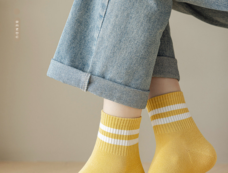 All-Cotton Women's Socks, Pure Cotton, Sweat-Absorbent, Odor-Resistant, Antibacterial, Mid-Calf Length, Spring and Autumn Sports Breathable, Autumn and Winter Short-Calf Length, Seamless