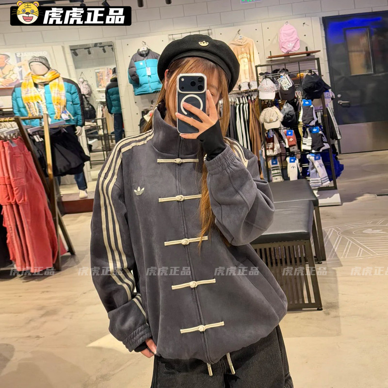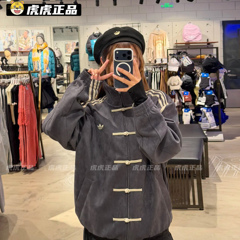 Adidas Trefoil Men's and Women's New Chinese-Style Hanfu Tang Suit Suede Jacket Kr0295/Kr0294/Kt3851
