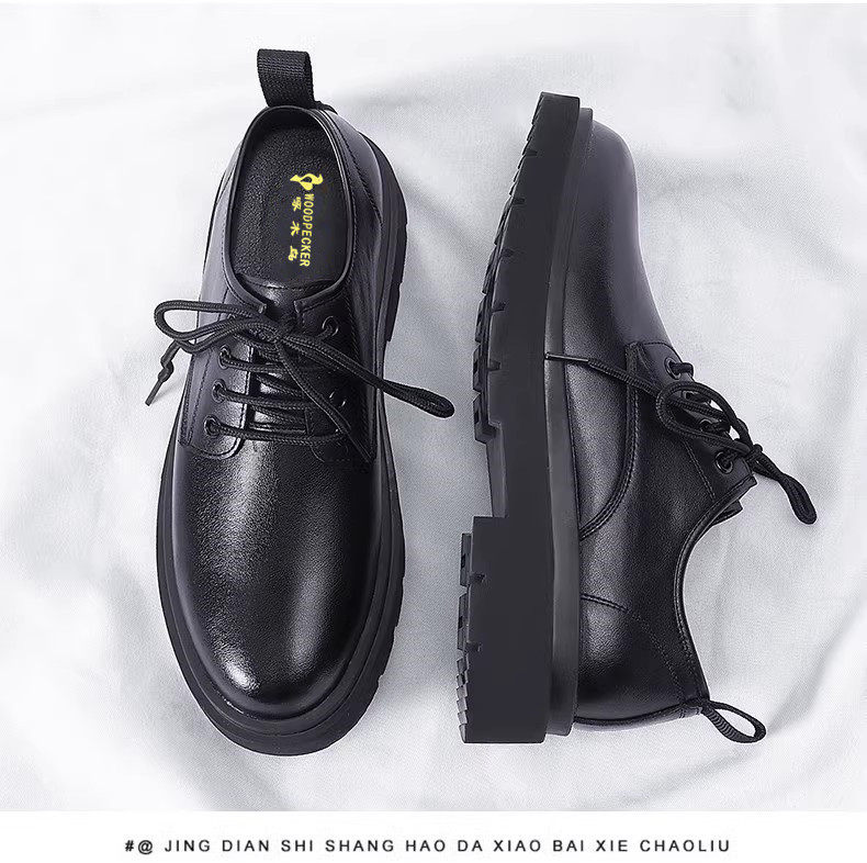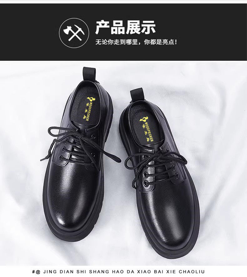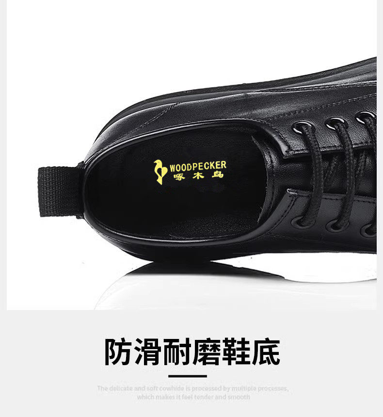 Woodpecker Men's Shoes New Genuine Leather Soft-Soled Large Size Leather Shoes Men's Korean Style British Style Casual Shoes Fleece-Lined Cotton Shoes Men's Trendy