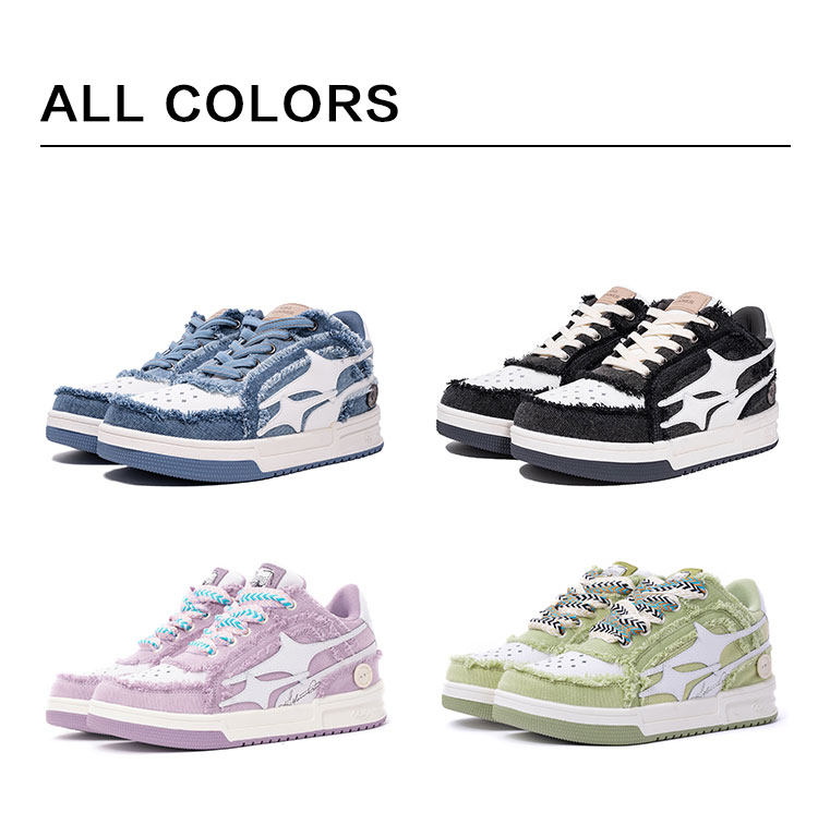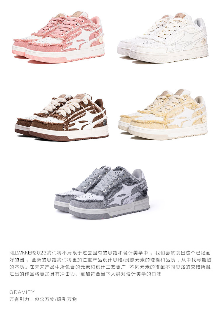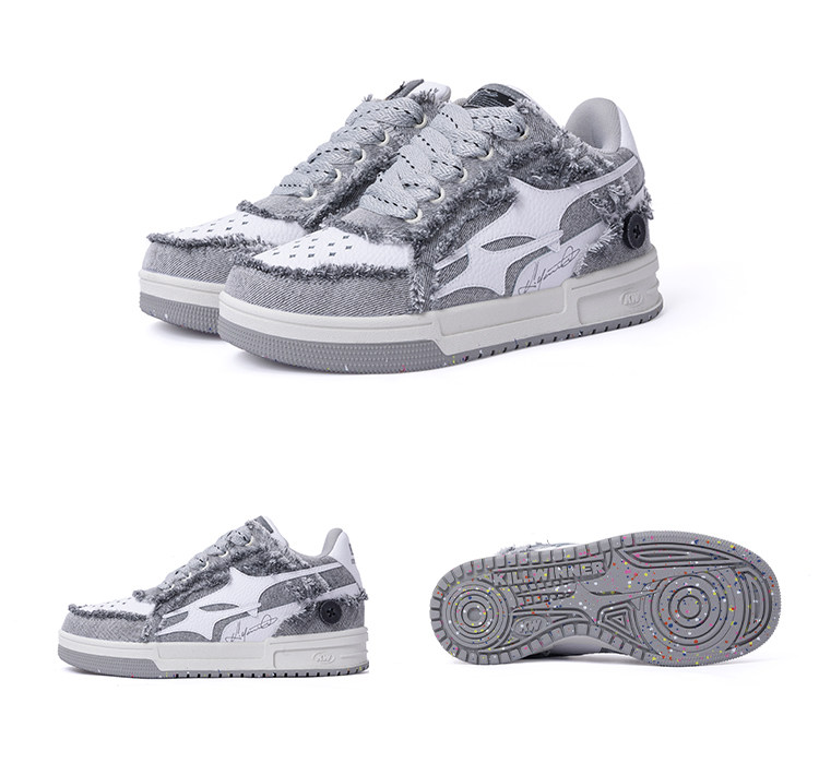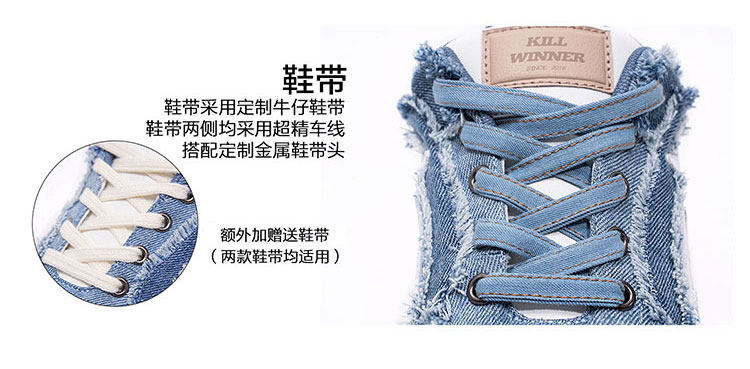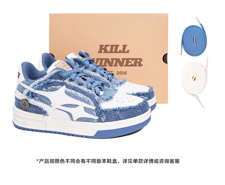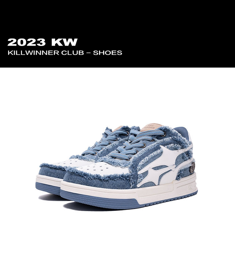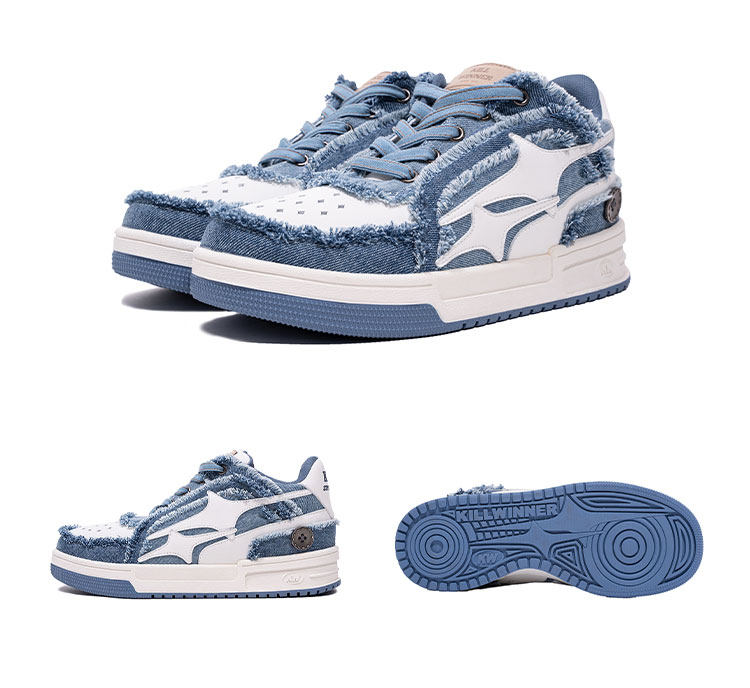 【Wang Hedi's Style】Killwinner Denim Distressed Series Trendy Low-Top Sneakers Couple Style