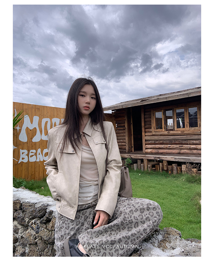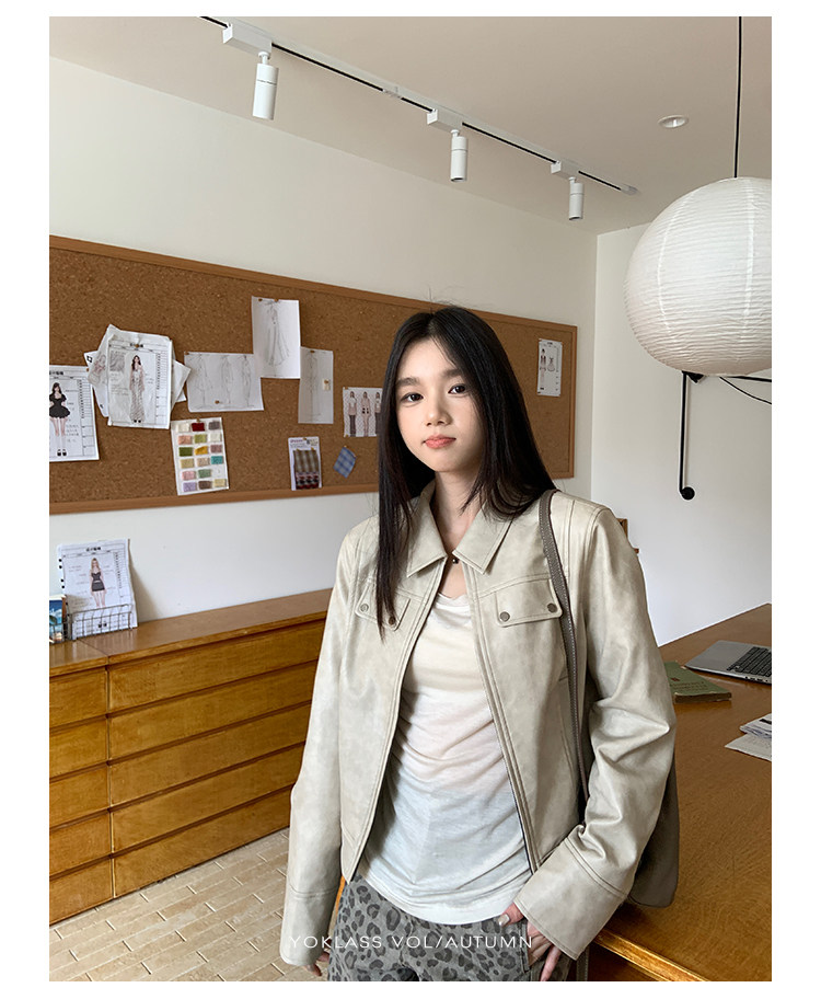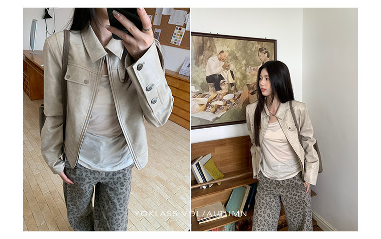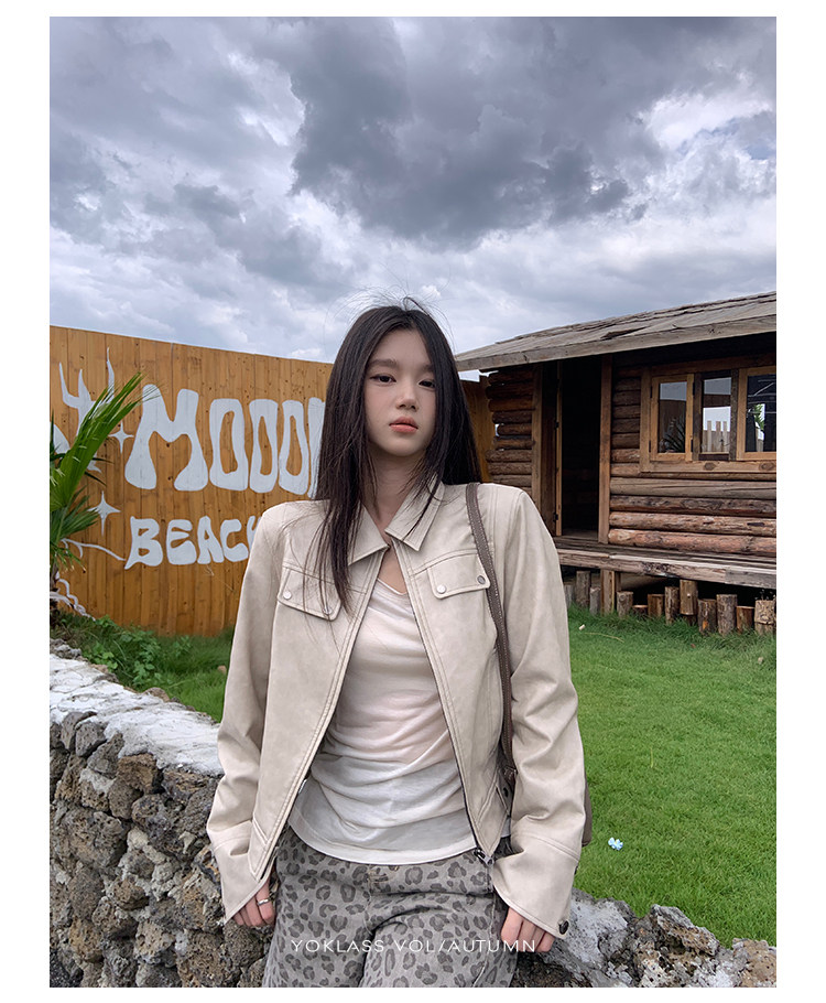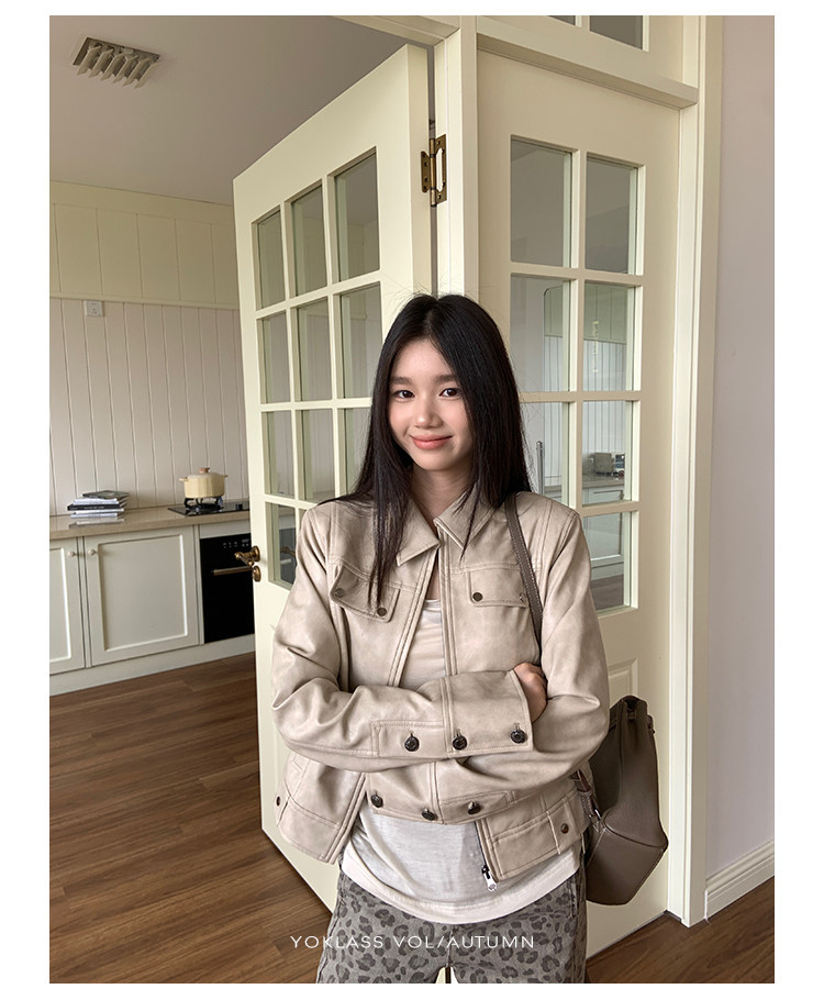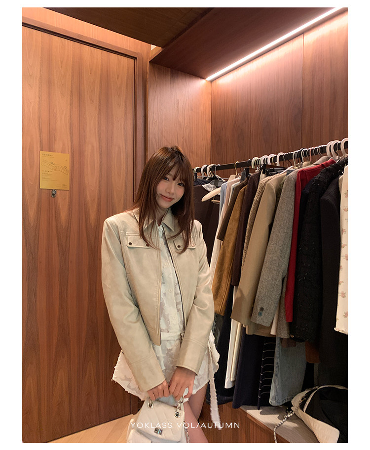 Yoklass Cool and Stylish Leather Jacket for Women, Autumn High-End Short Korean-Style Slim Fit Biker Jacket Trendy Top