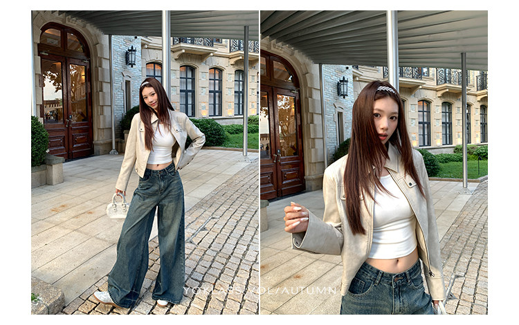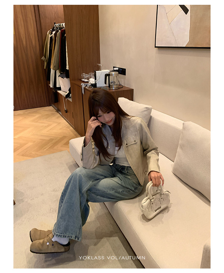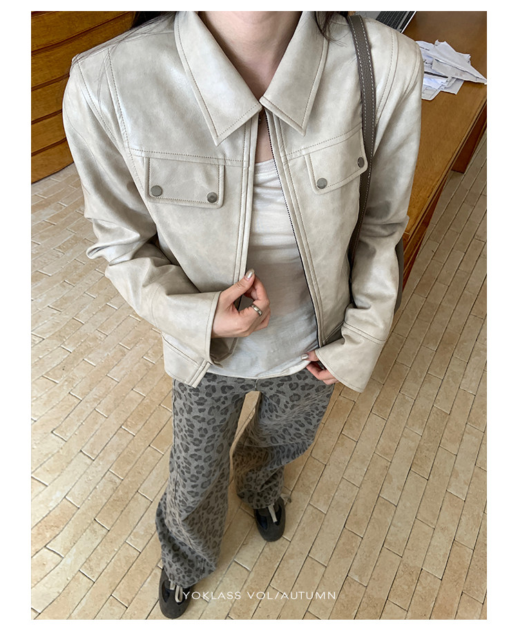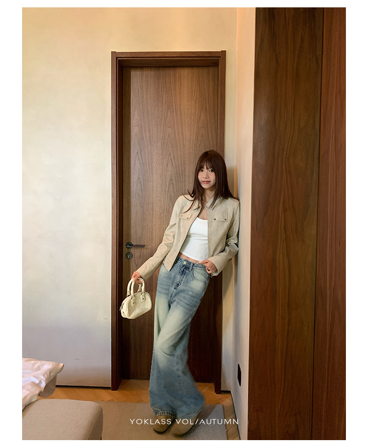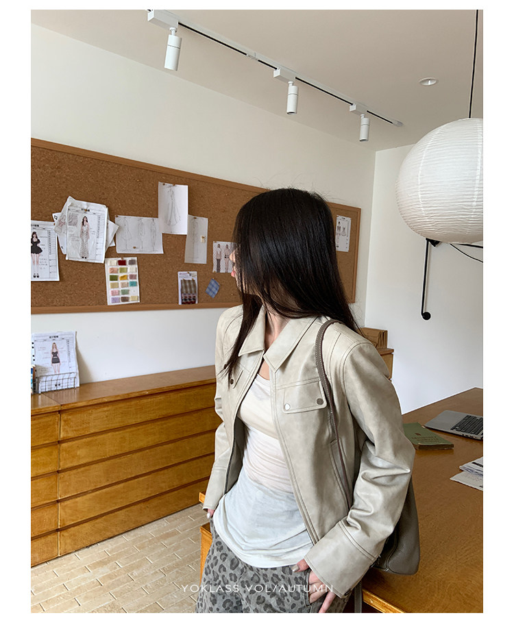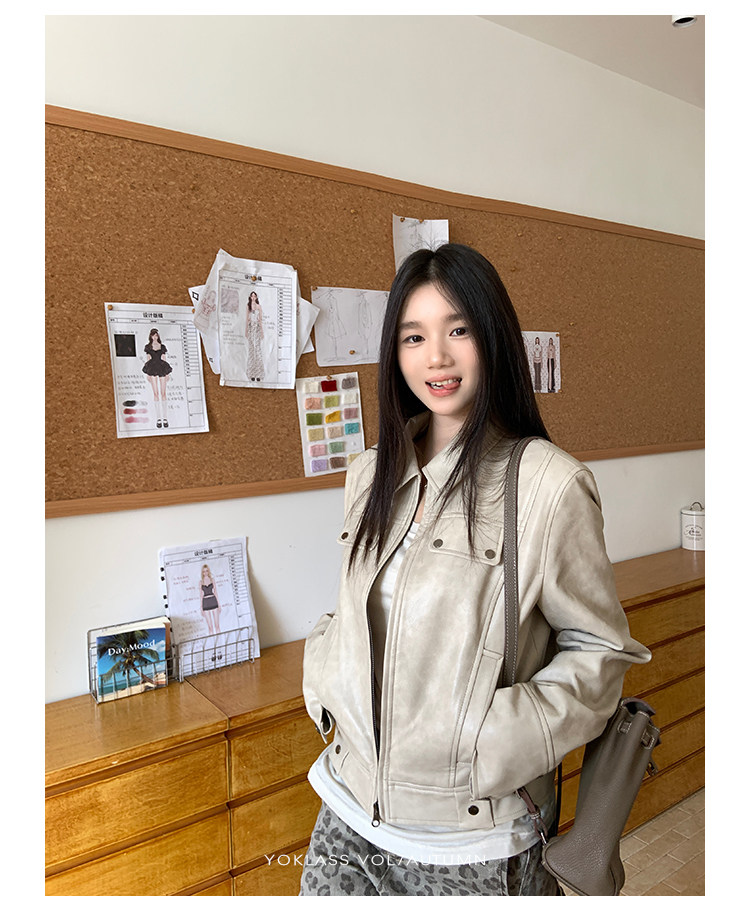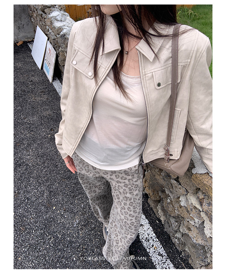Yoklass Cool and Stylish Leather Jacket for Women, Autumn High-End Short Korean-Style Slim Fit Biker Jacket Trendy Top