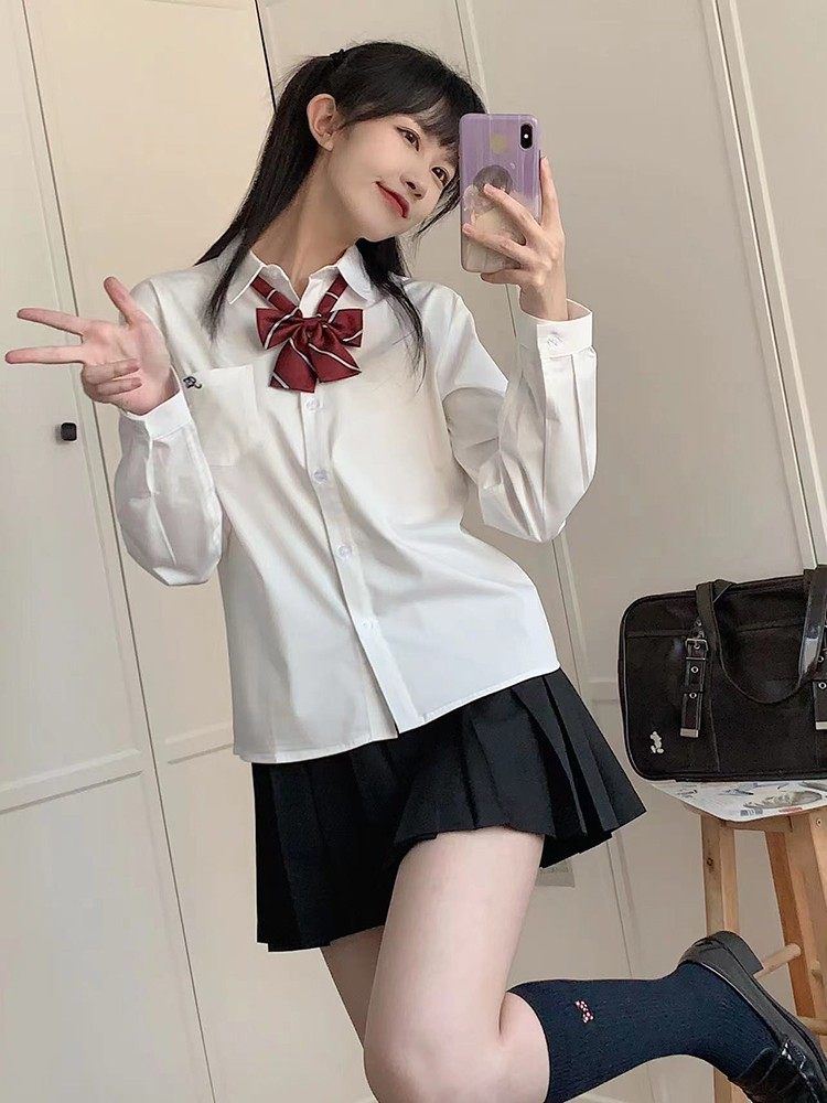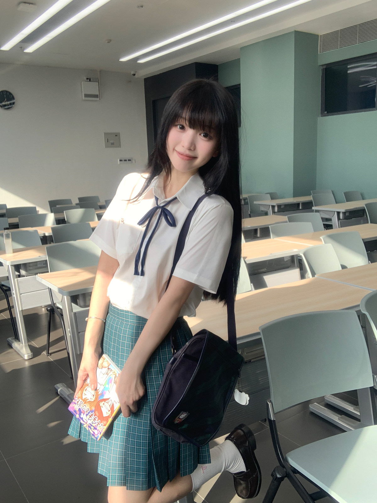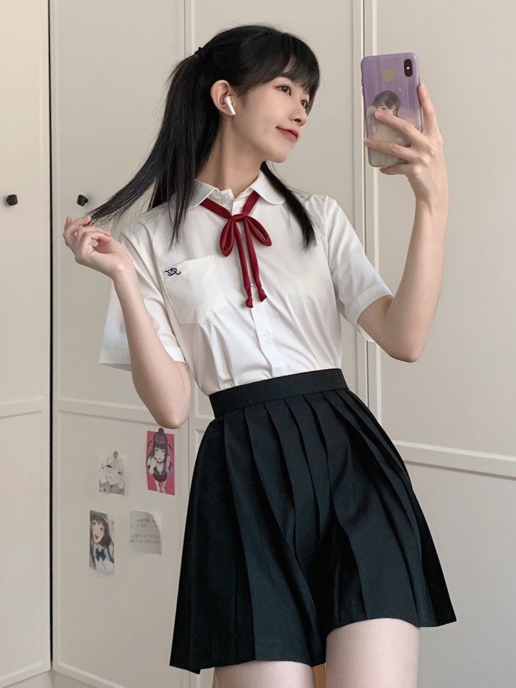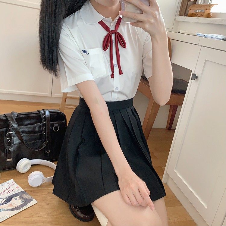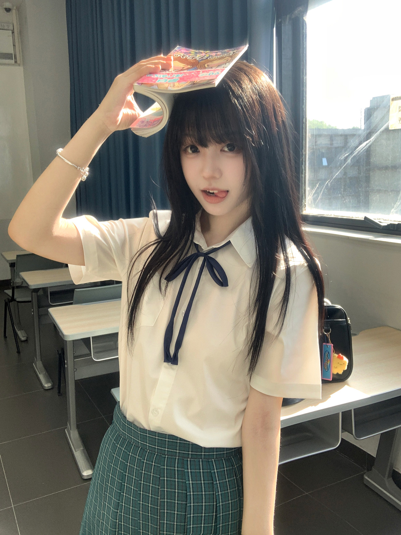 Short-Sleeved Bamboo Fiber Jk Shirt for Women, Autumn Uniform, Japanese Style, School Uniform Feel, Short-Sleeved Collared Shirt for Women, Summer Cool Bamboo Fiber