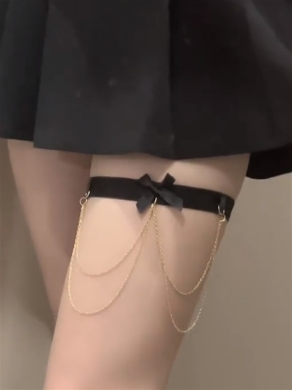 Zoozmomo European and American Anklet Jewelry Sexy Hot Girl Style Bow Elastic Band Lace Leg Ring Body Chain Leg Chain
