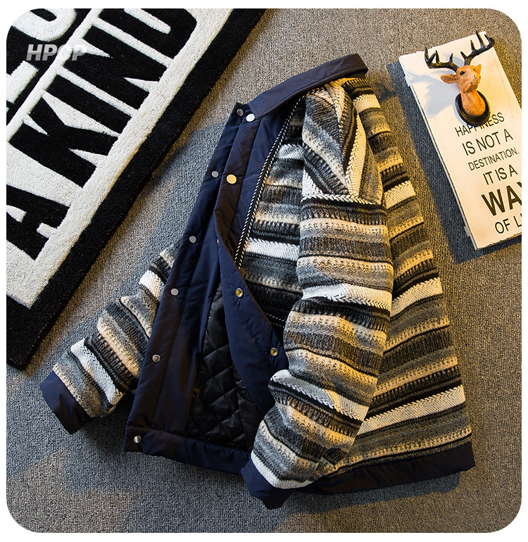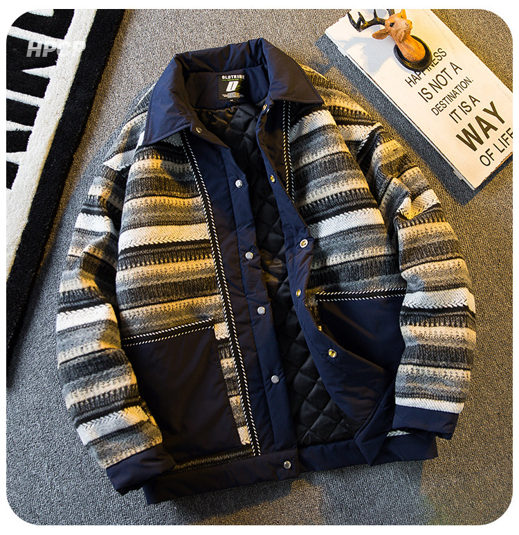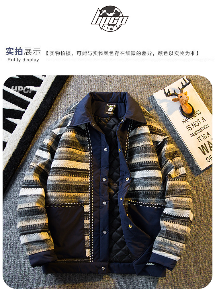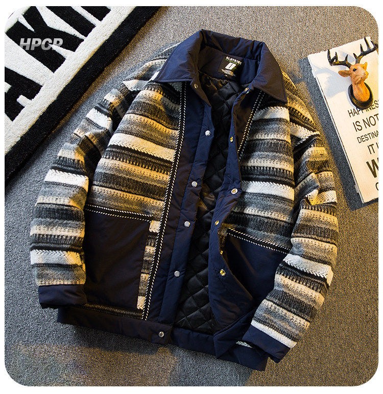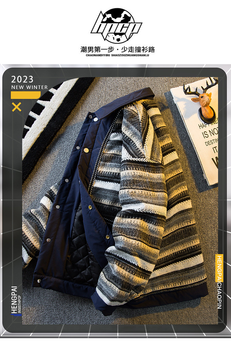 Trendy Retro Tweed Workwear Cotton Coat for Men, Winter Thickened Warm Ethnic Style Jacket Cotton Clothing for Men