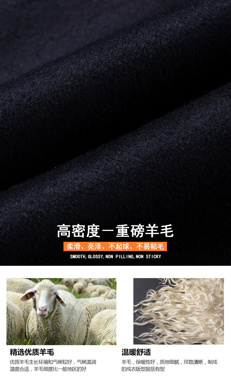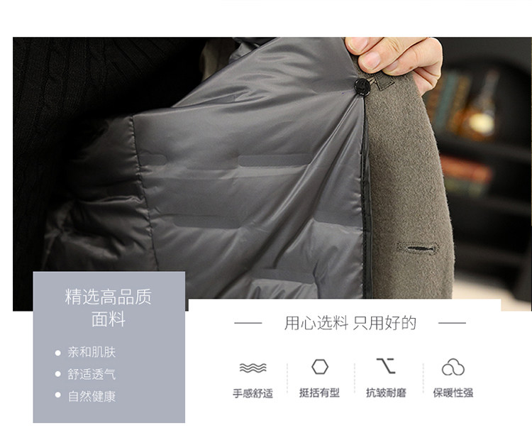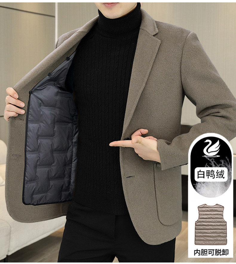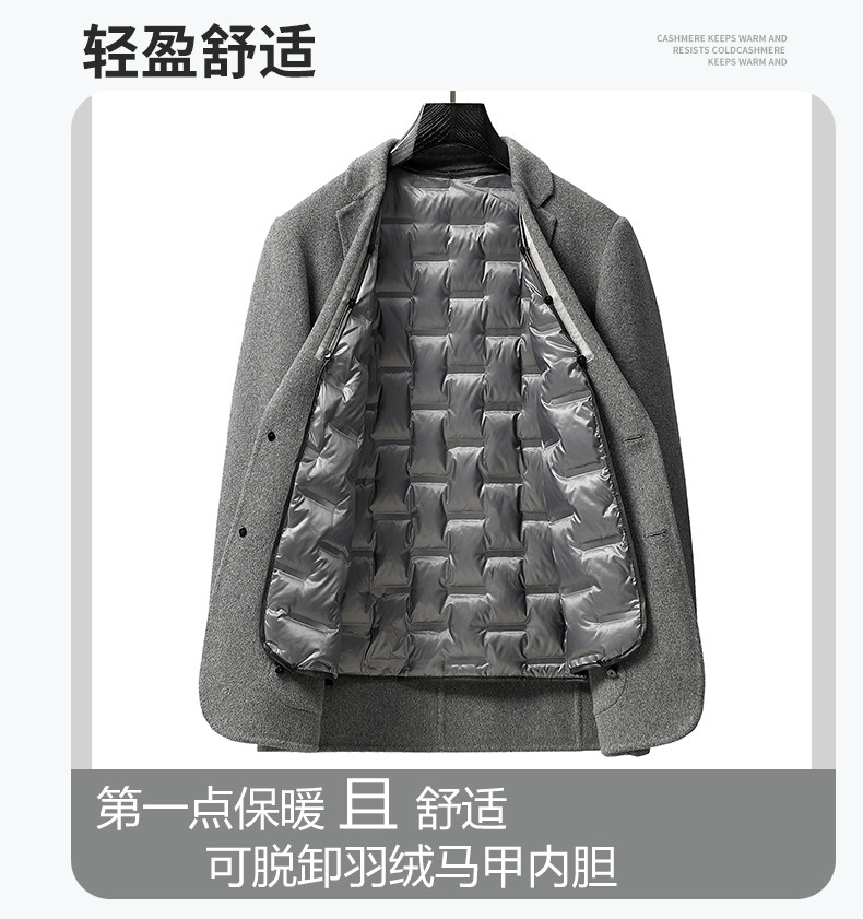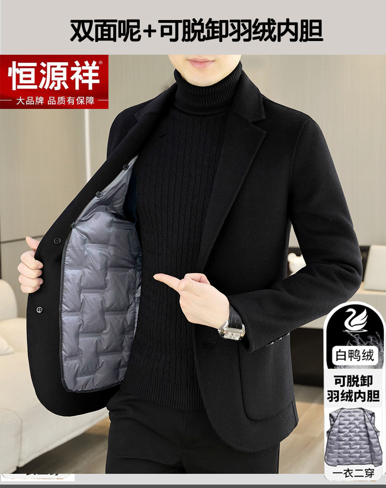 Hengyuanxiang Double-Sided Wool Cashmere Coat for Men, Sheep Wool Suit, Autumn and Winter Detachable down Liner Jacket for Men