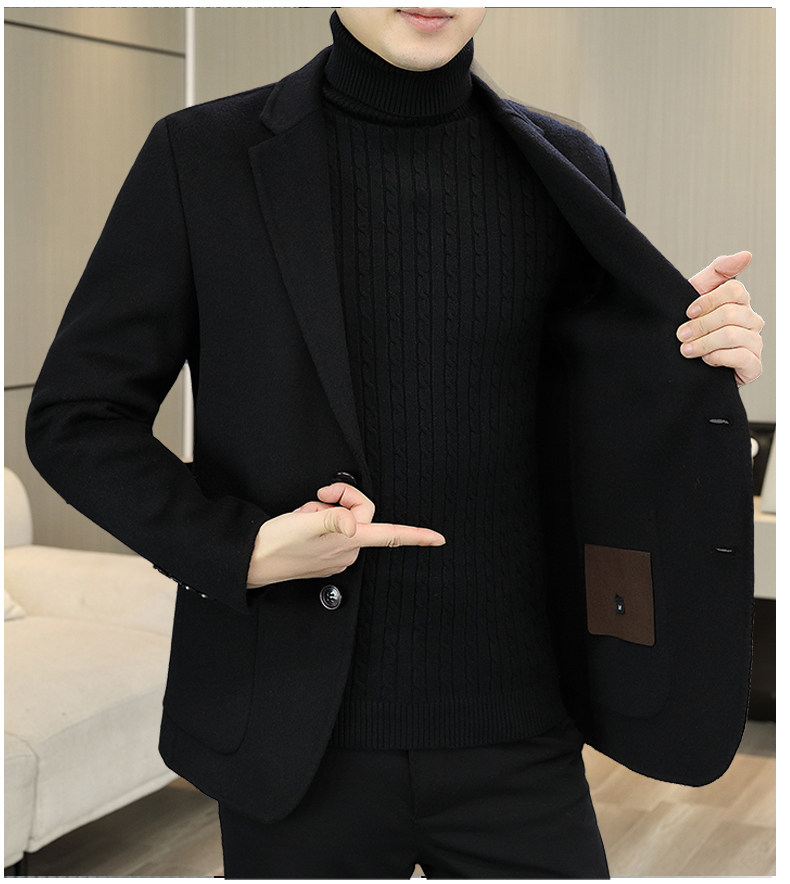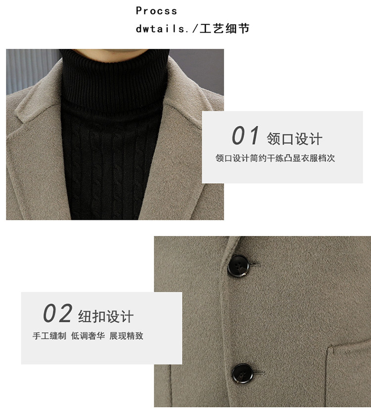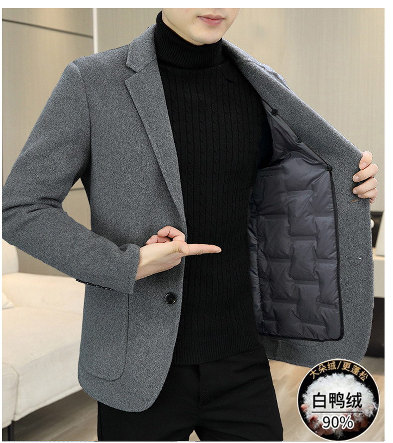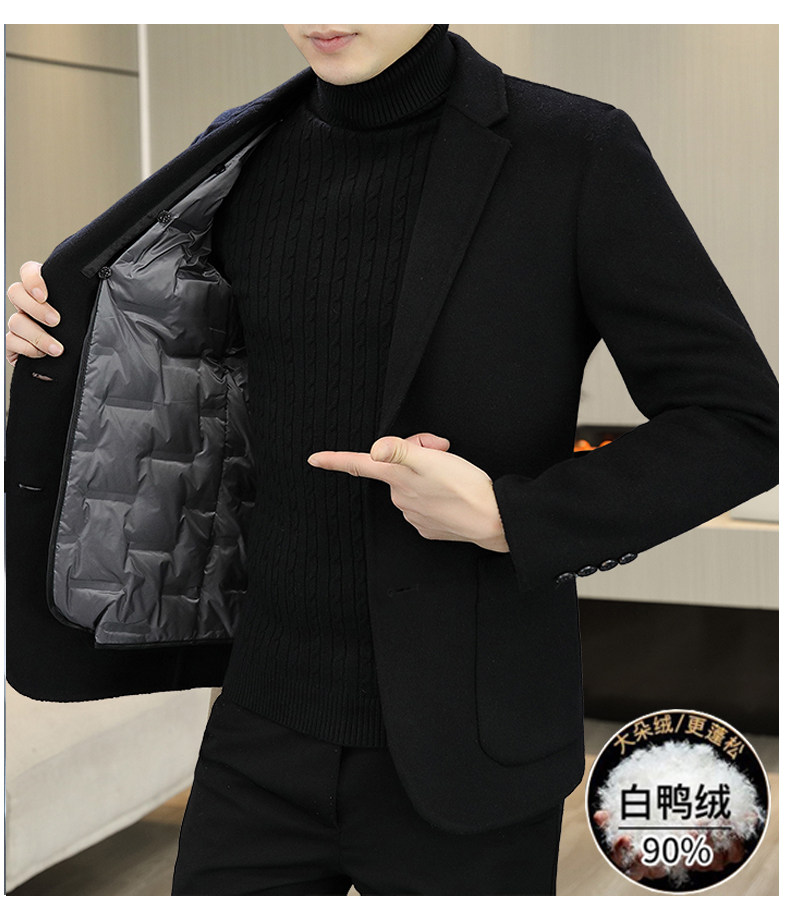 Hengyuanxiang Double-Sided Wool Cashmere Coat for Men, Sheep Wool Suit, Autumn and Winter Detachable down Liner Jacket for Men